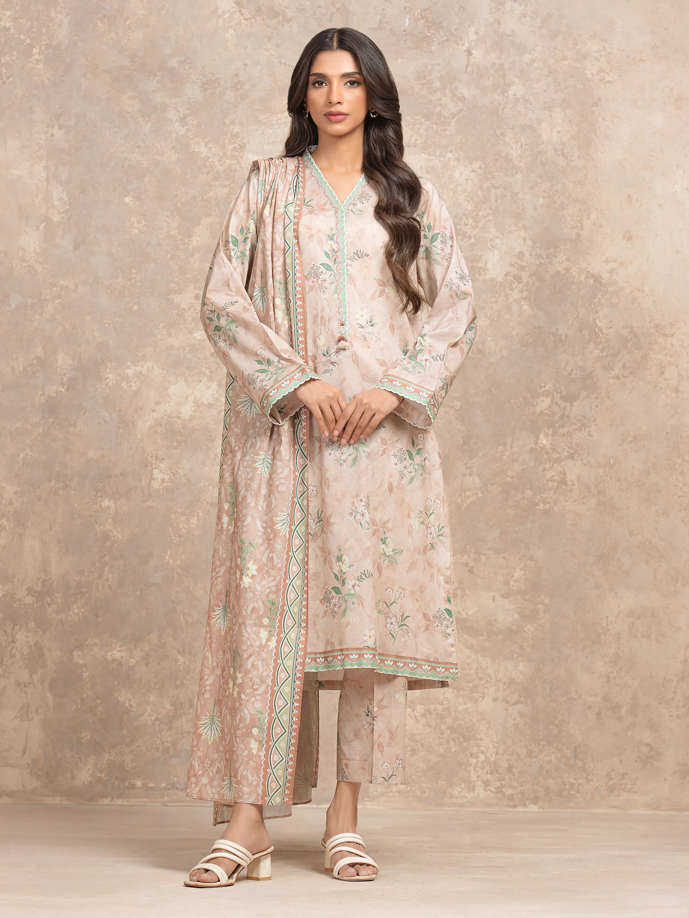 Unstitched Tea Rose Printed Lawn Suit