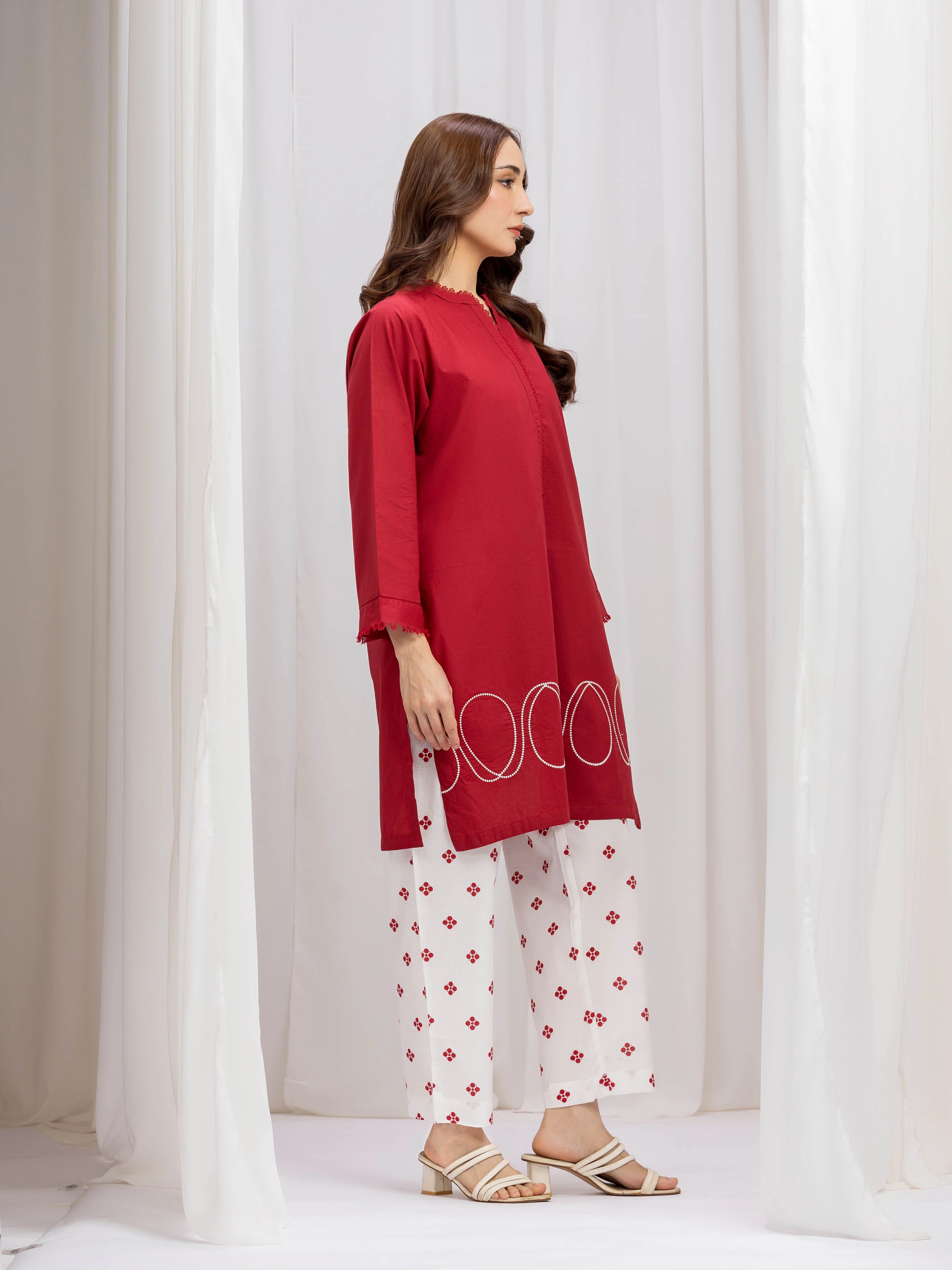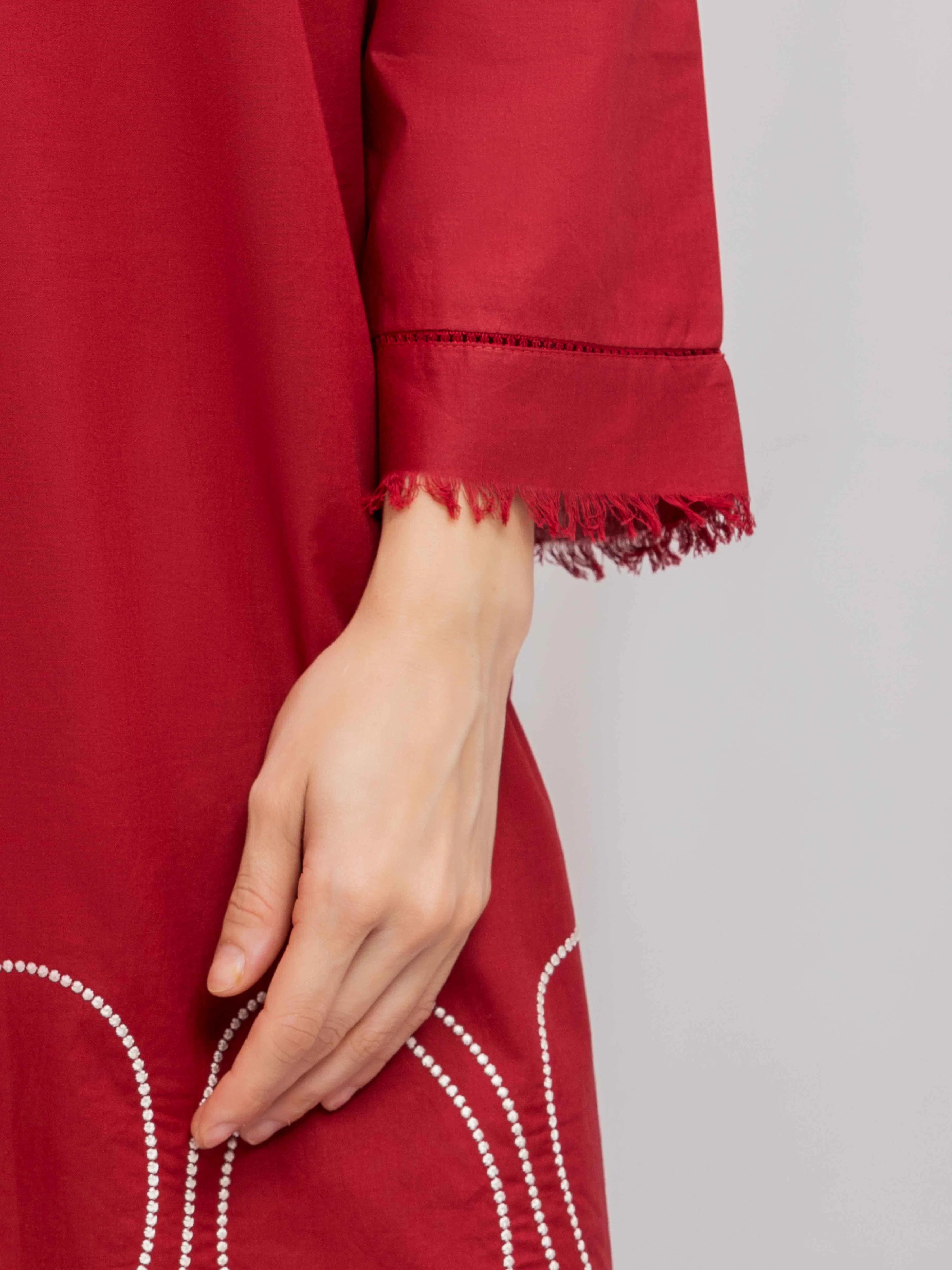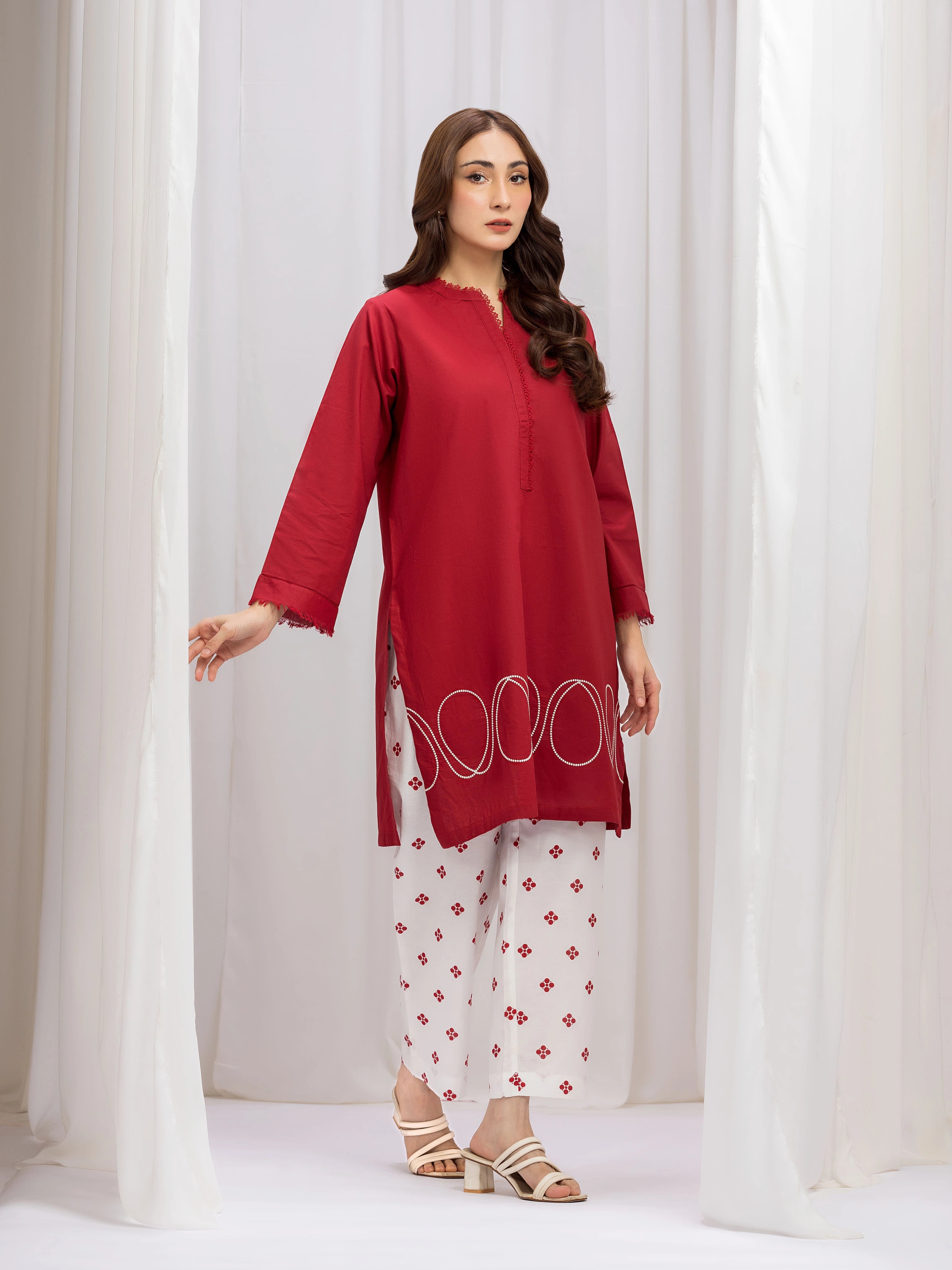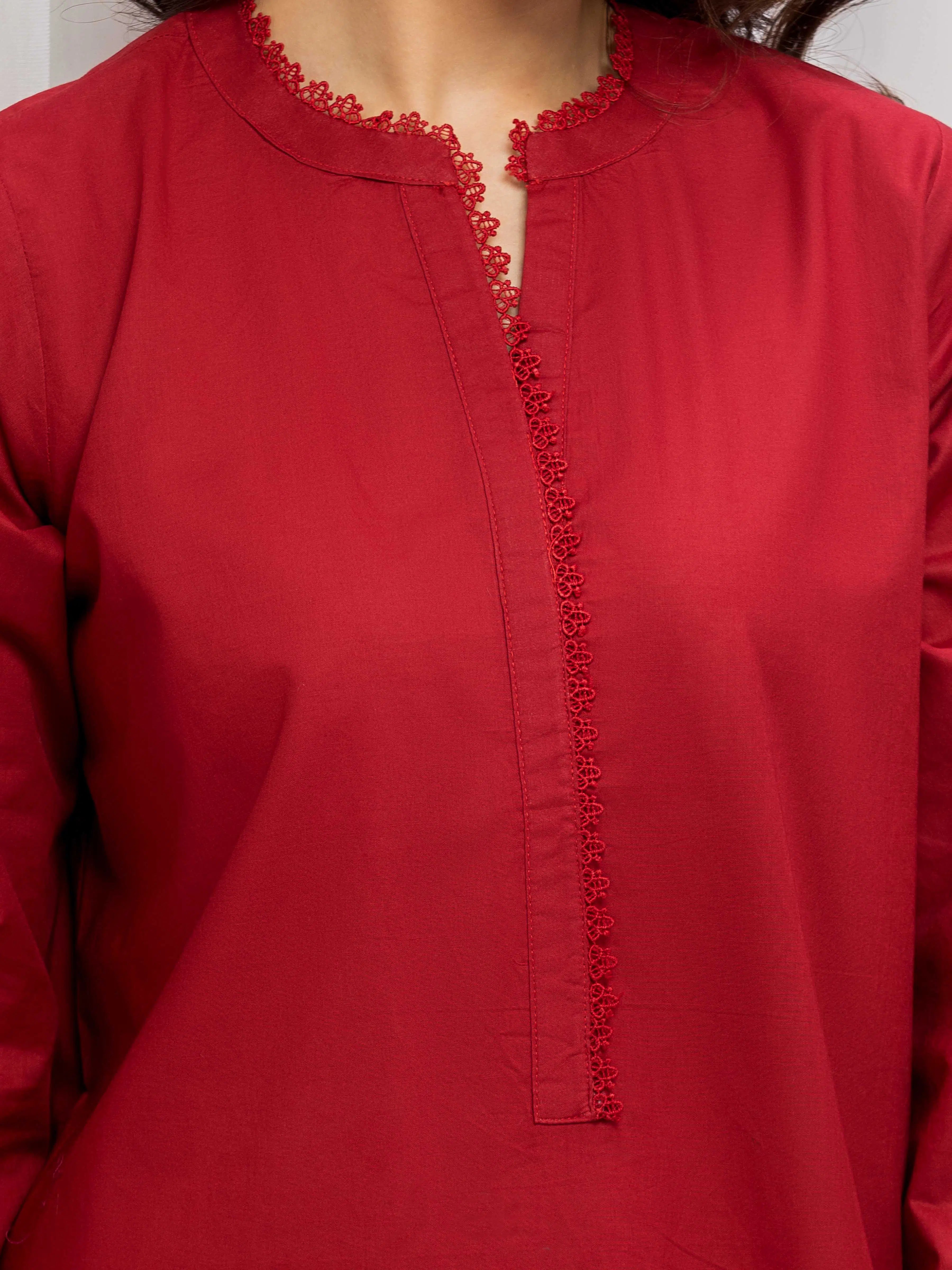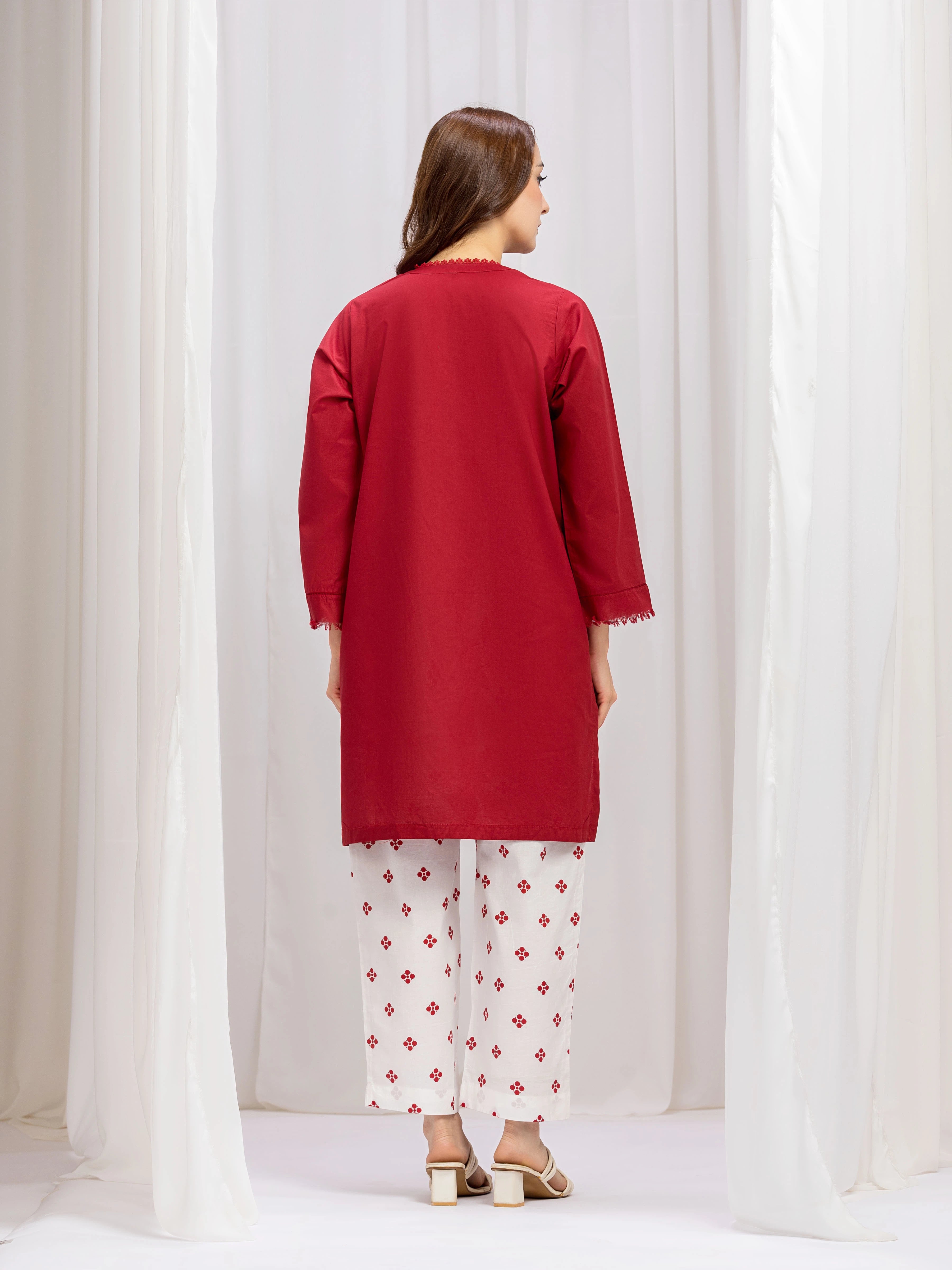 Style: Plain Shirt with Lace from Neck to Placket & Embroidered Daman