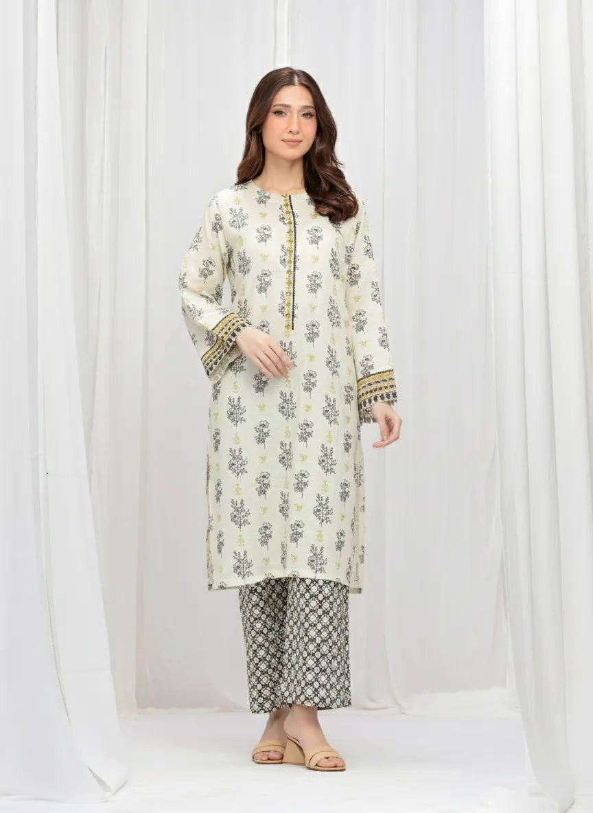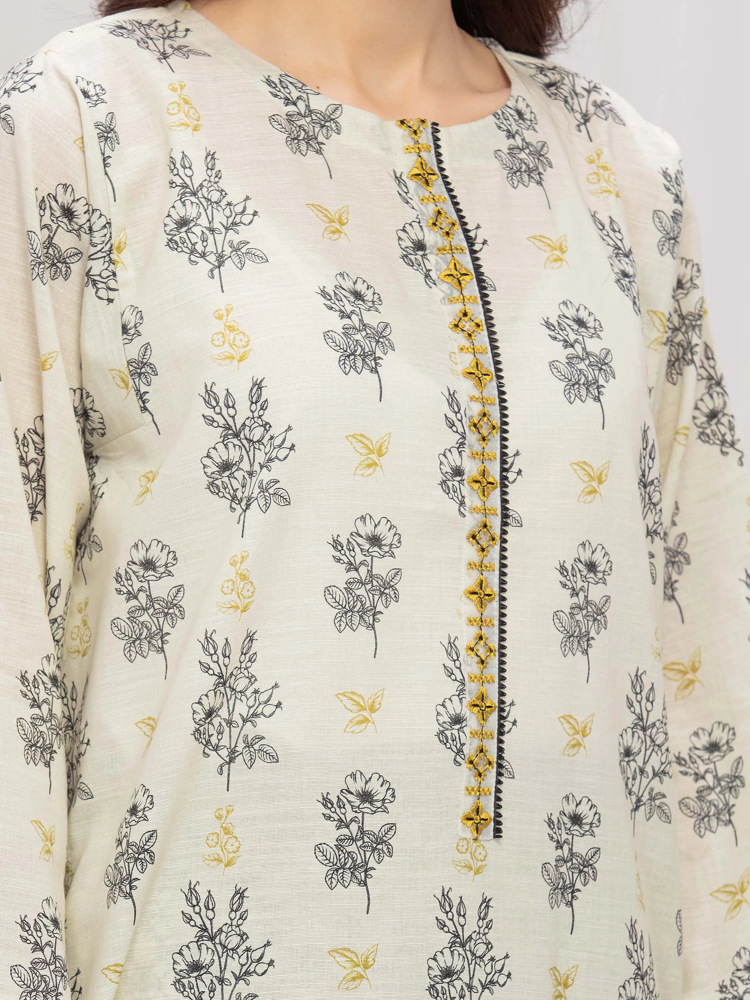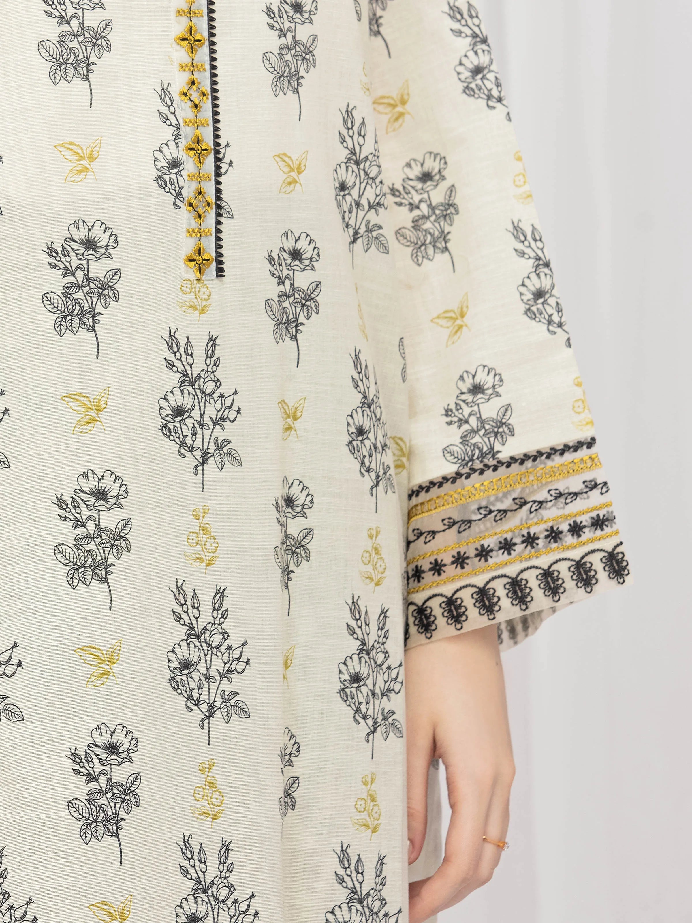 Style: Printed Shirt with Embroidered Placket & Fancy Organza Work on Sleeves