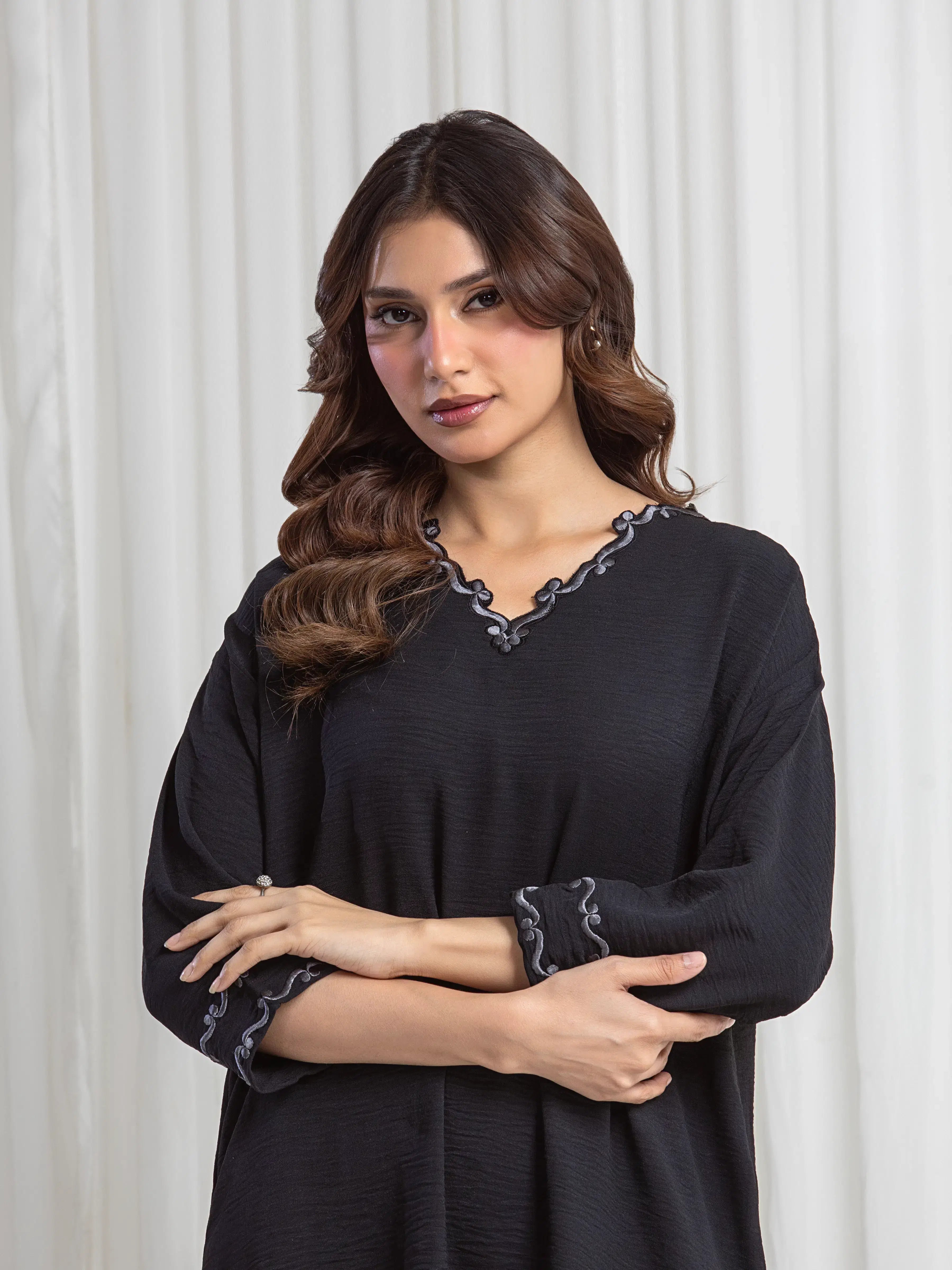 • Style: Plain Trouser with Embroidered Bottom