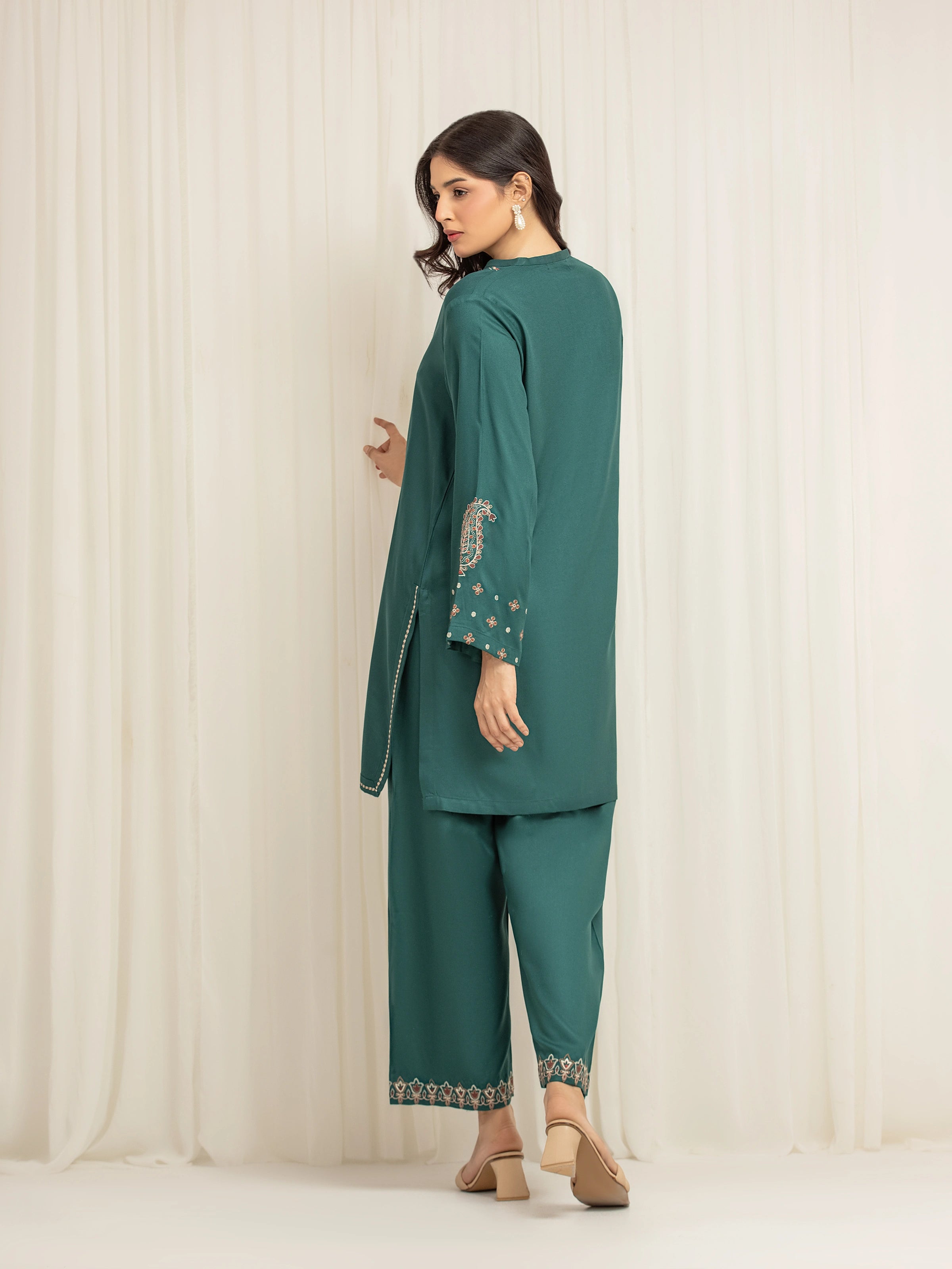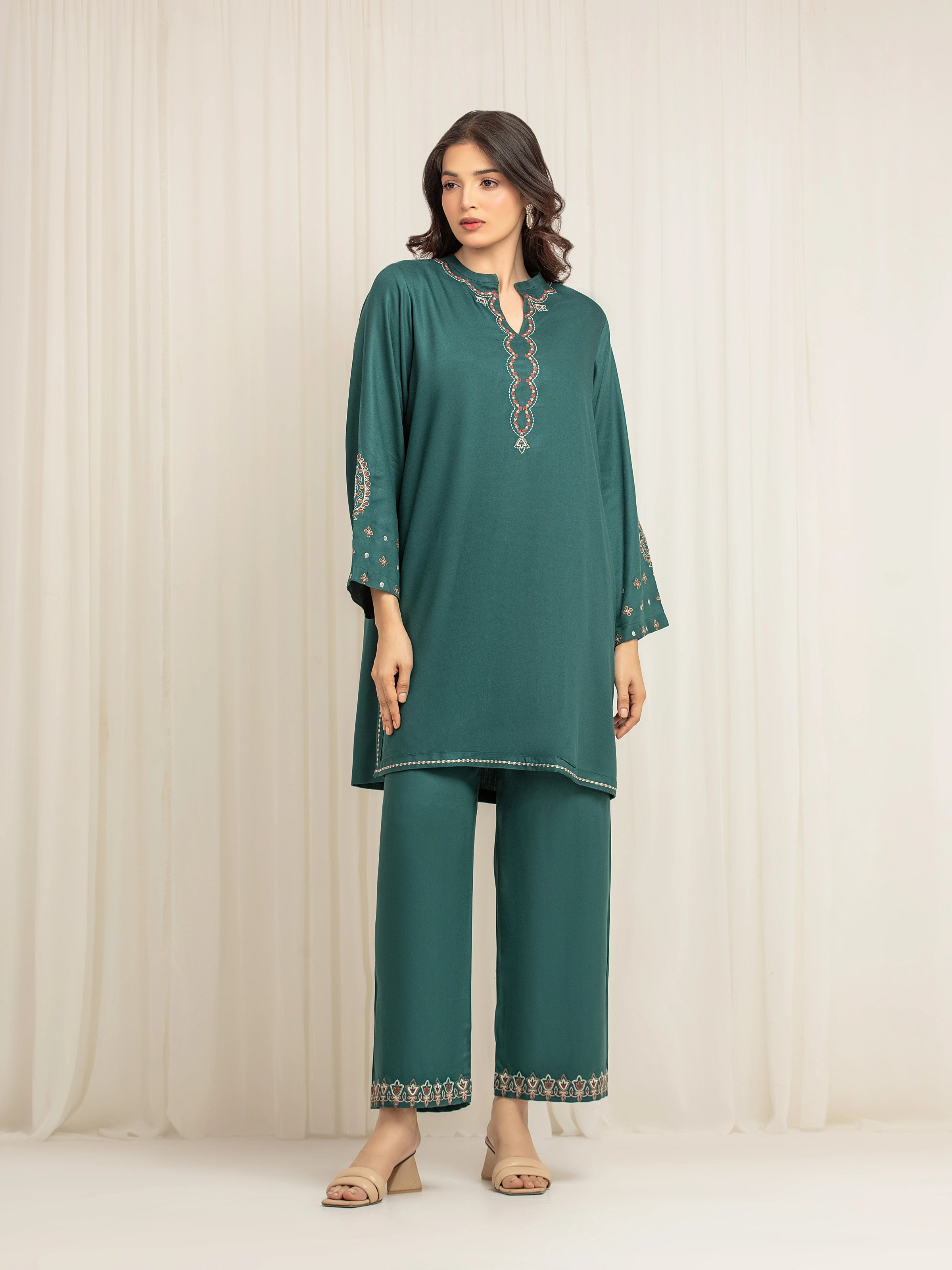 - Style: Plain Trouser with Embroidered Bottom