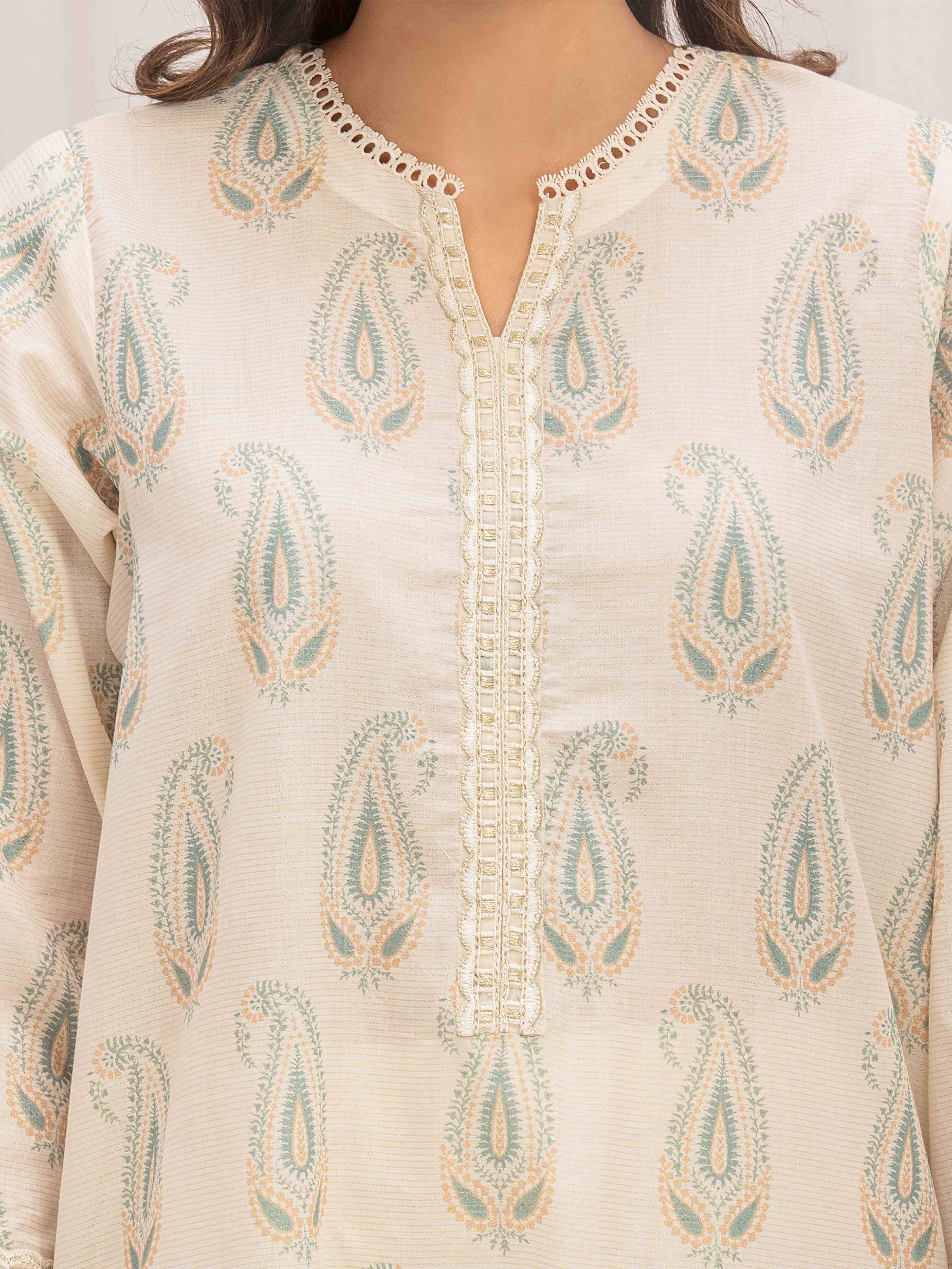Style: Printed Shirt with Embroidered Placket, Sleeves, & Daman