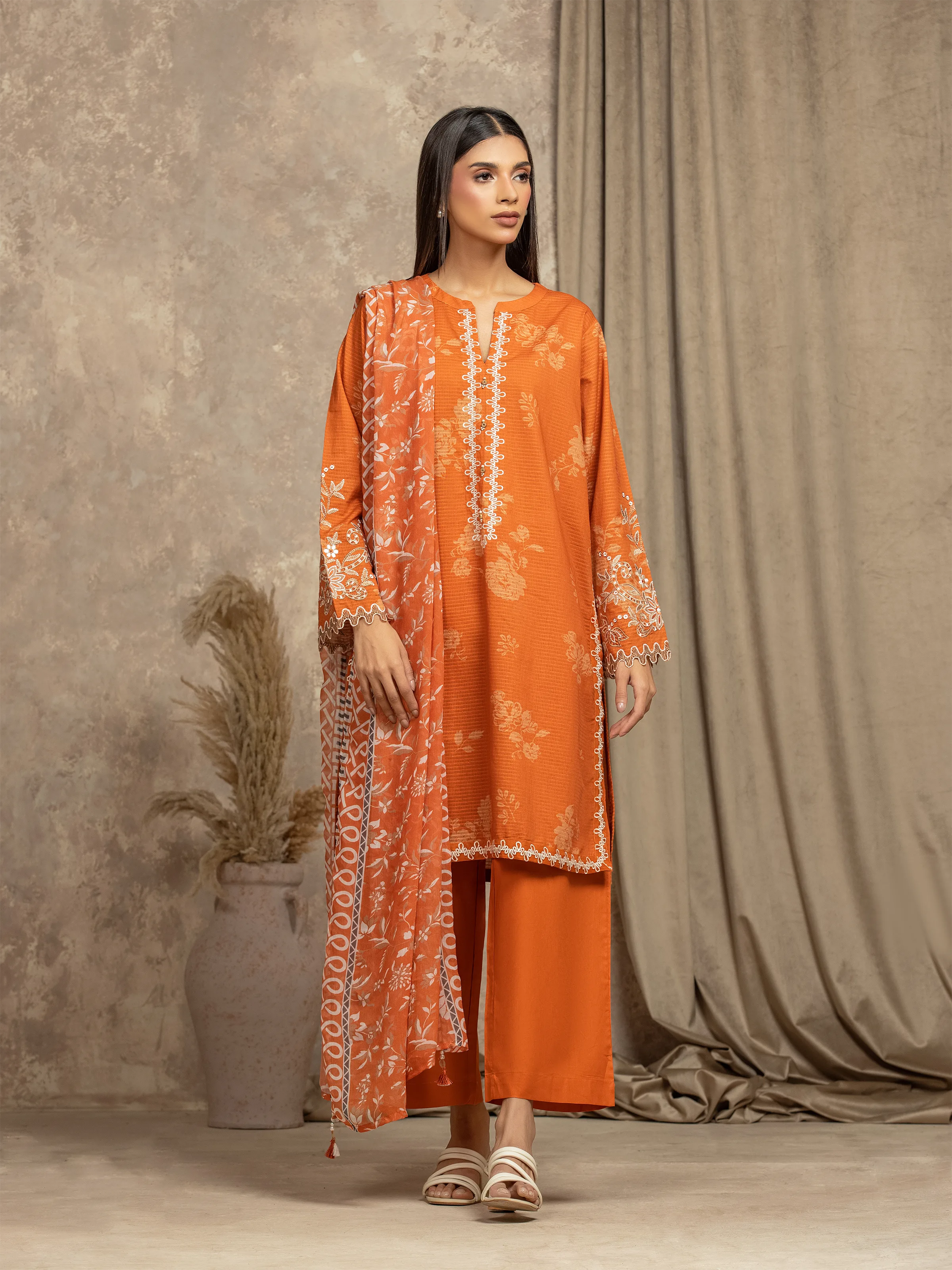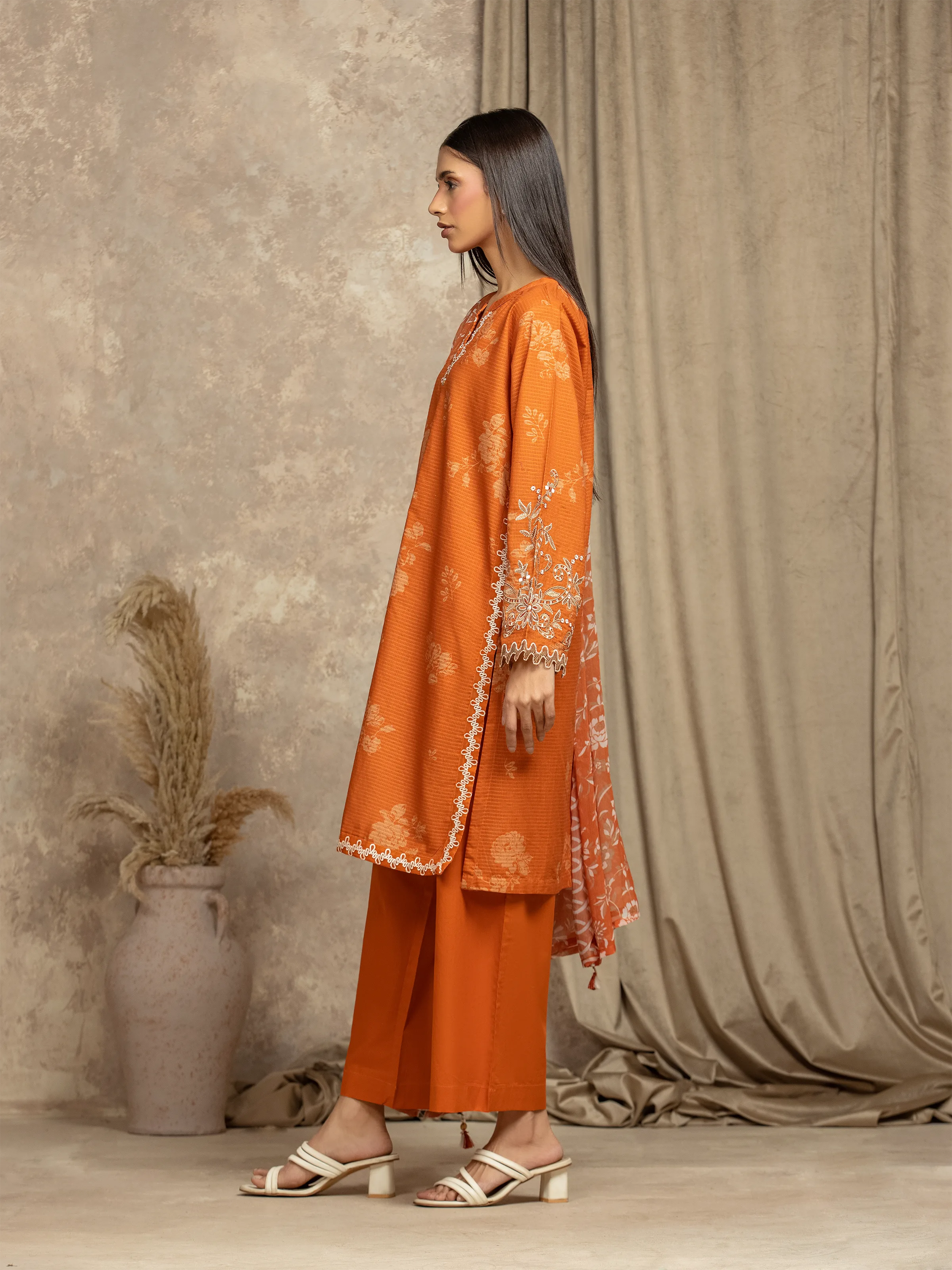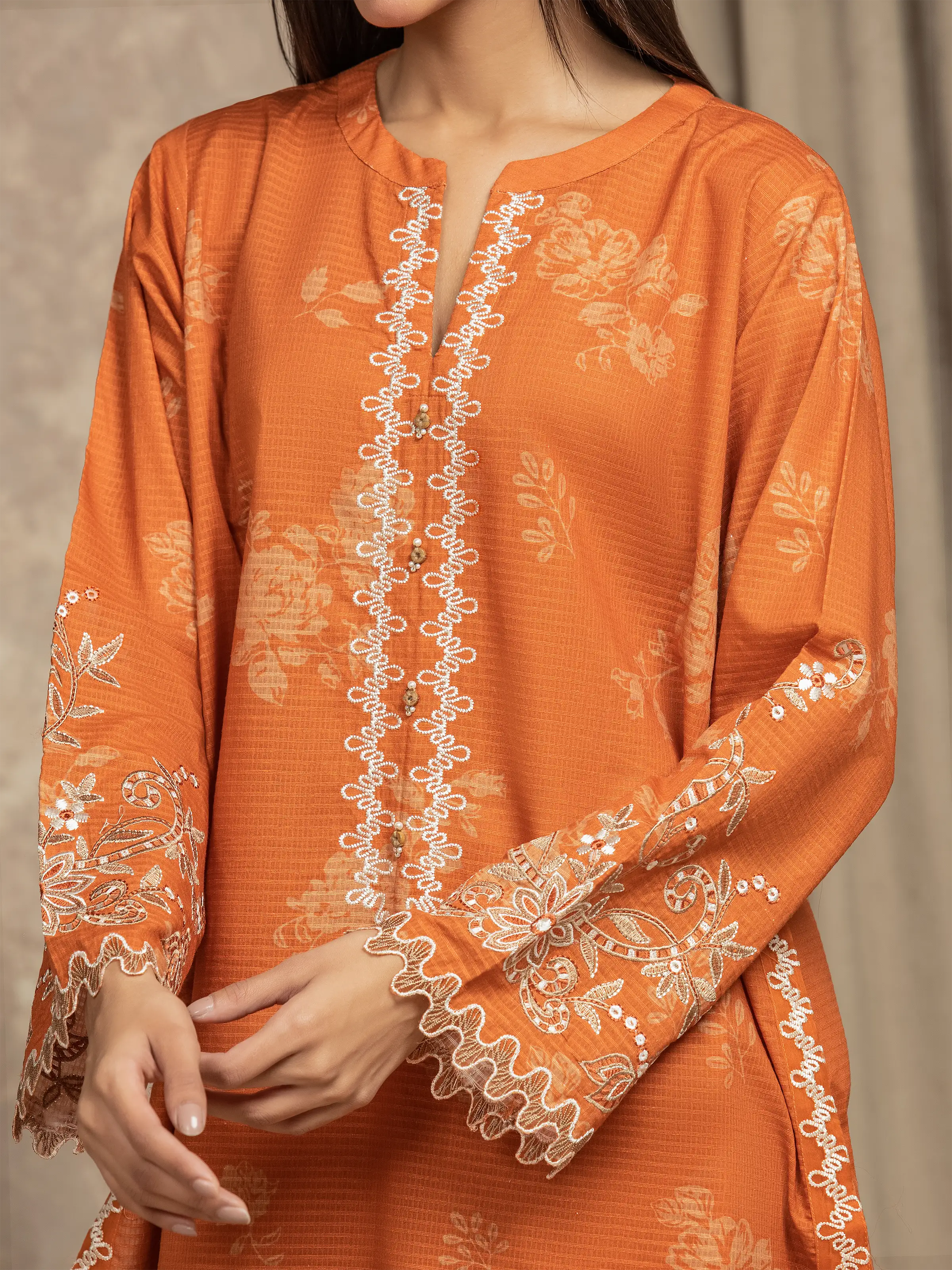 Style: Floral Printed Shirt with Embellished Placket and Embroidered Sleeves, Daman, & Chalk