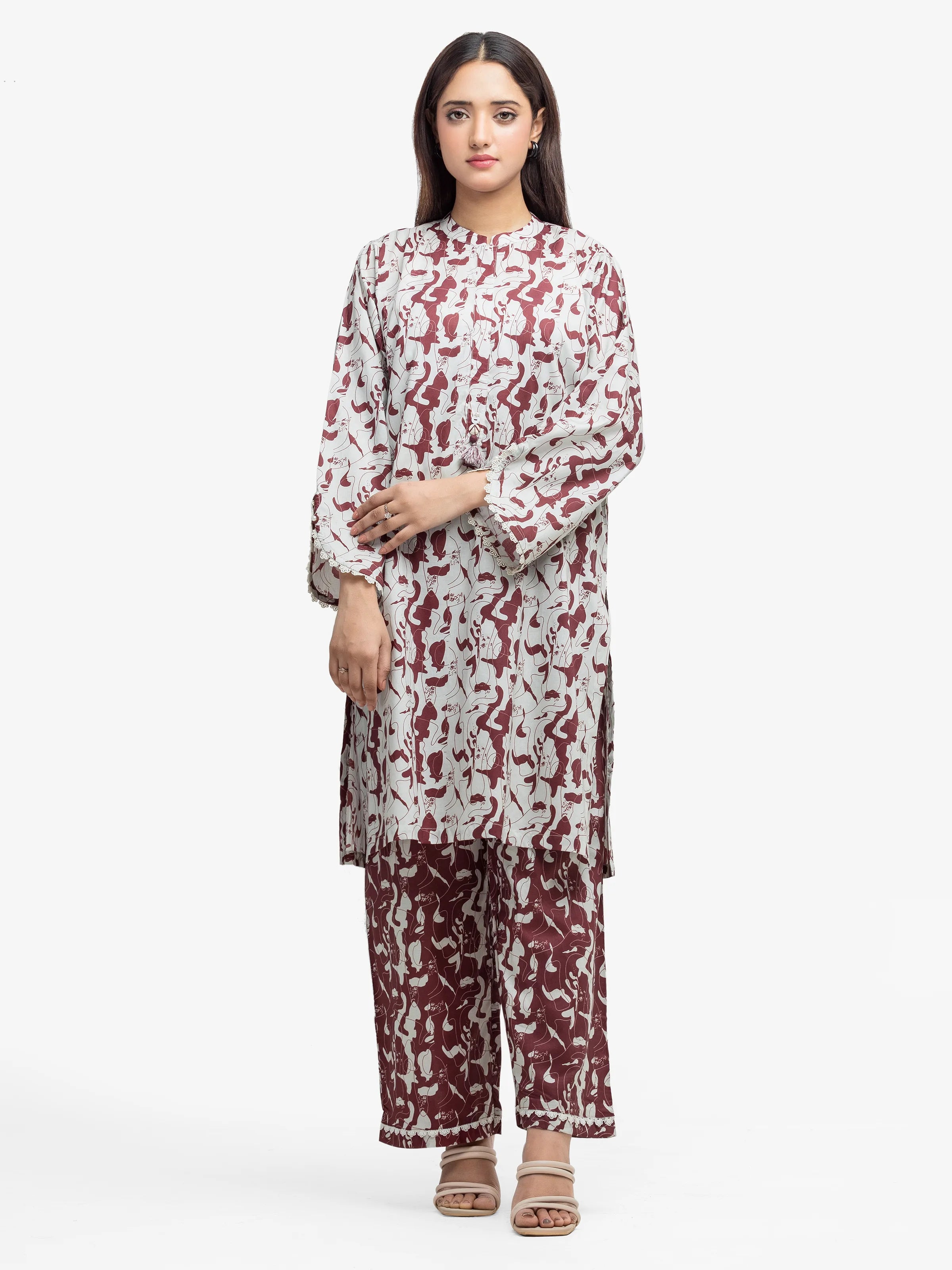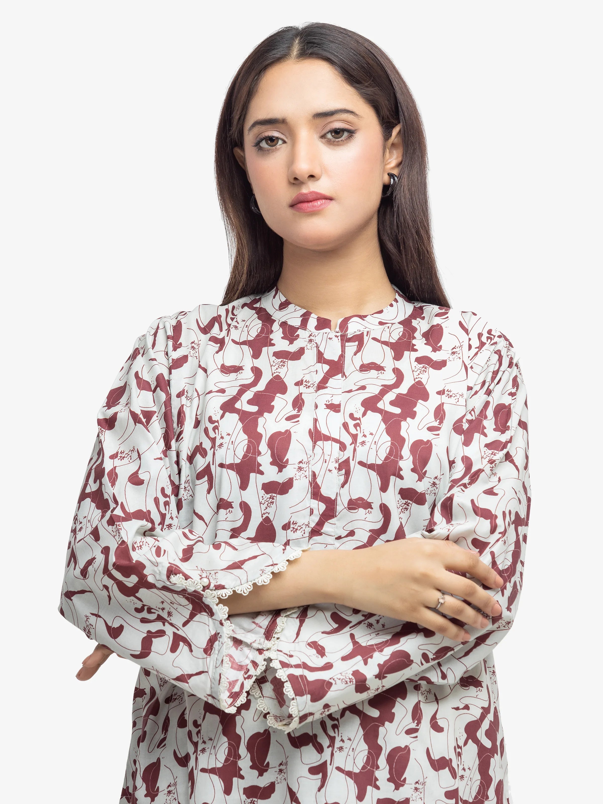 - Style: Printed Shirt with Embellished Placket & Lace on Sleeves