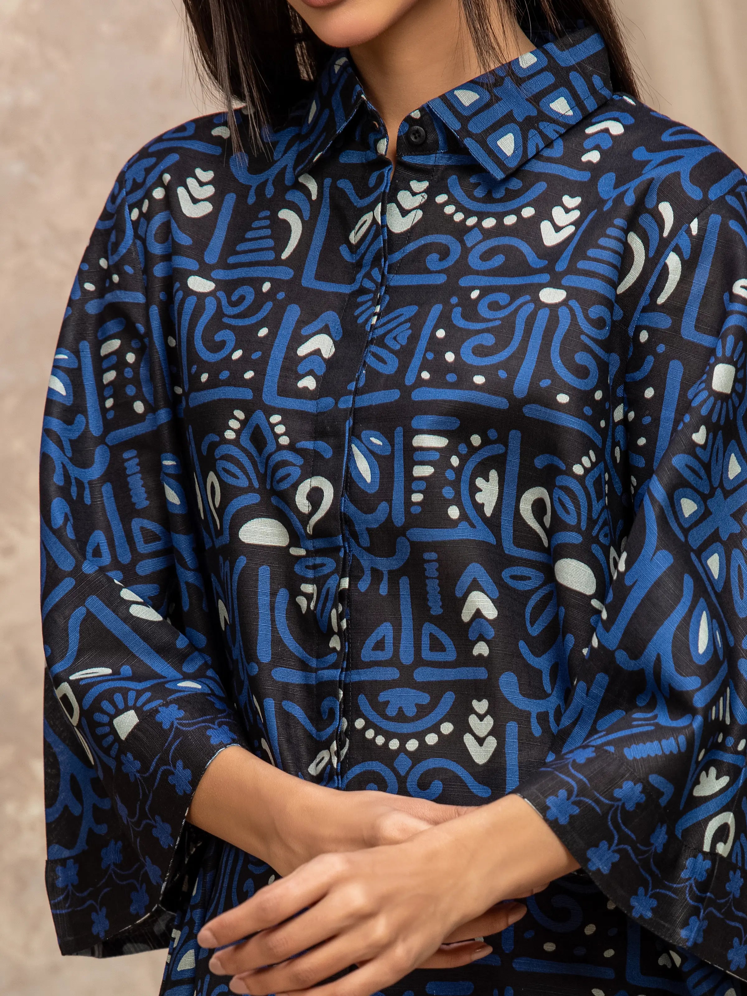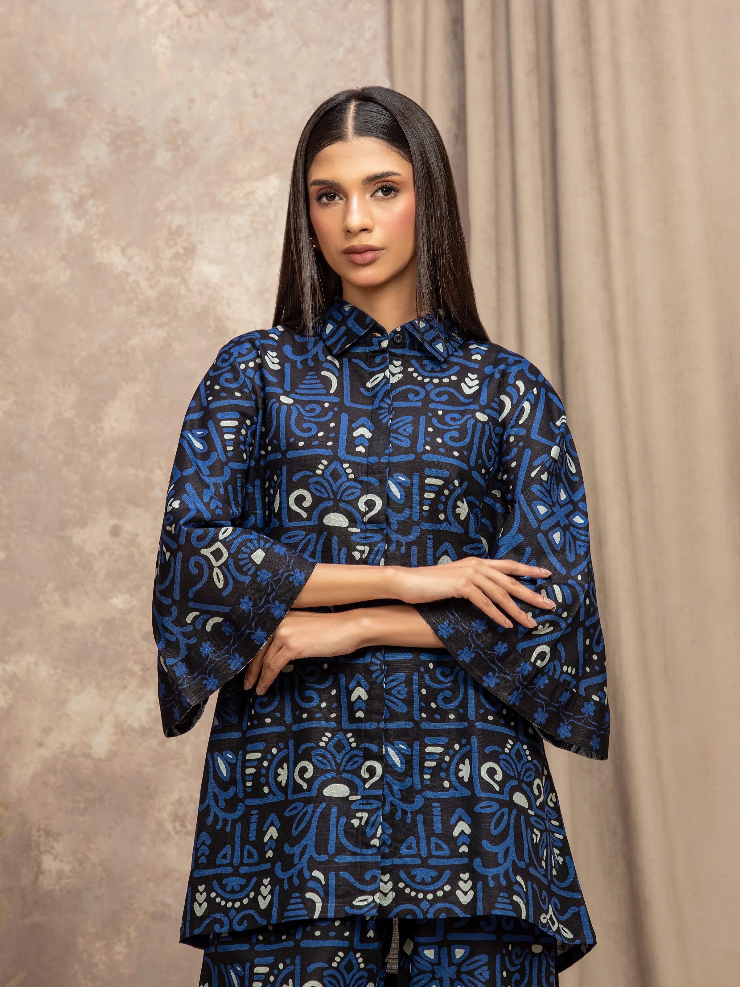 • Style: Printed Short Length Shirt with Formal Collar