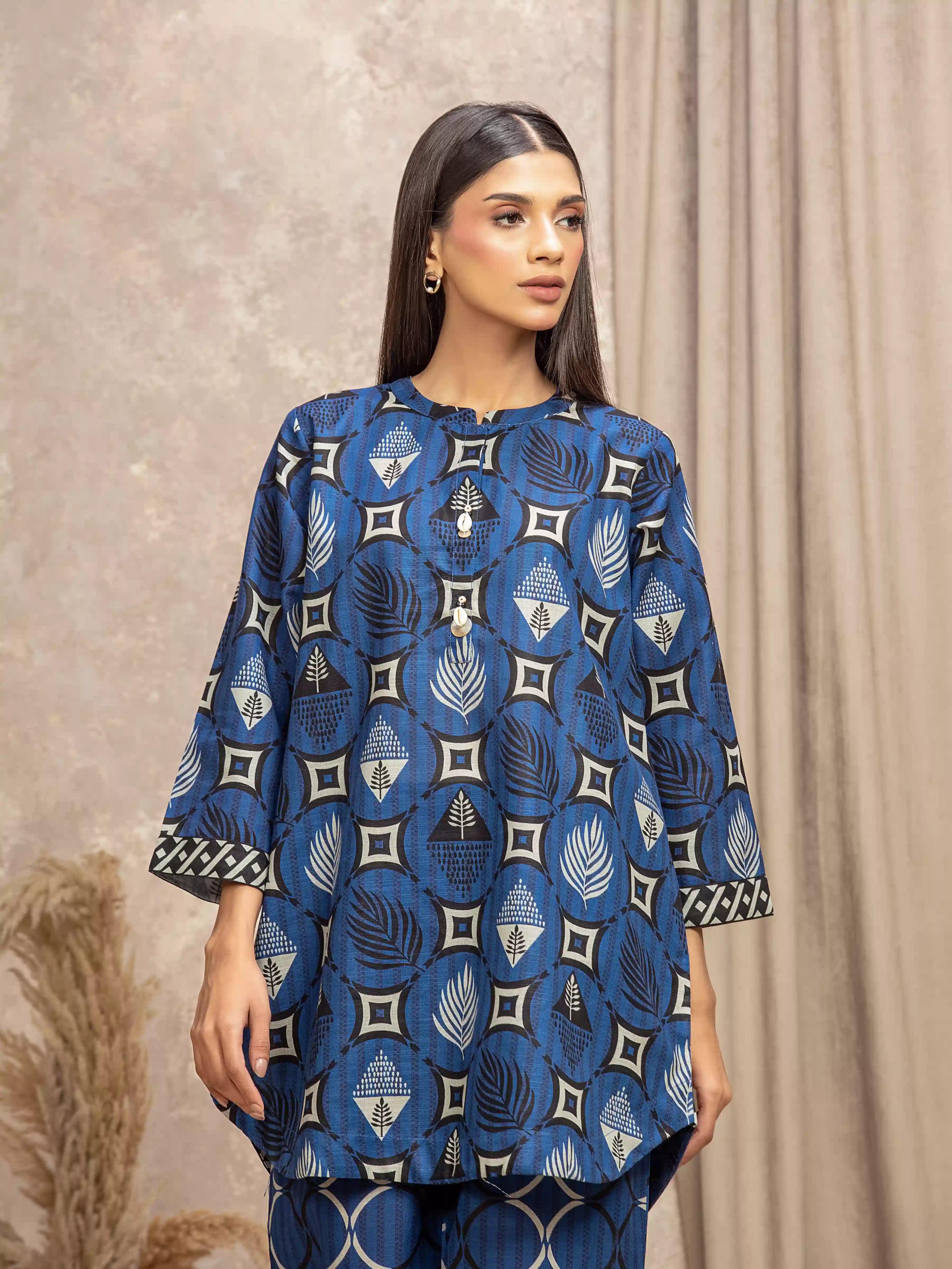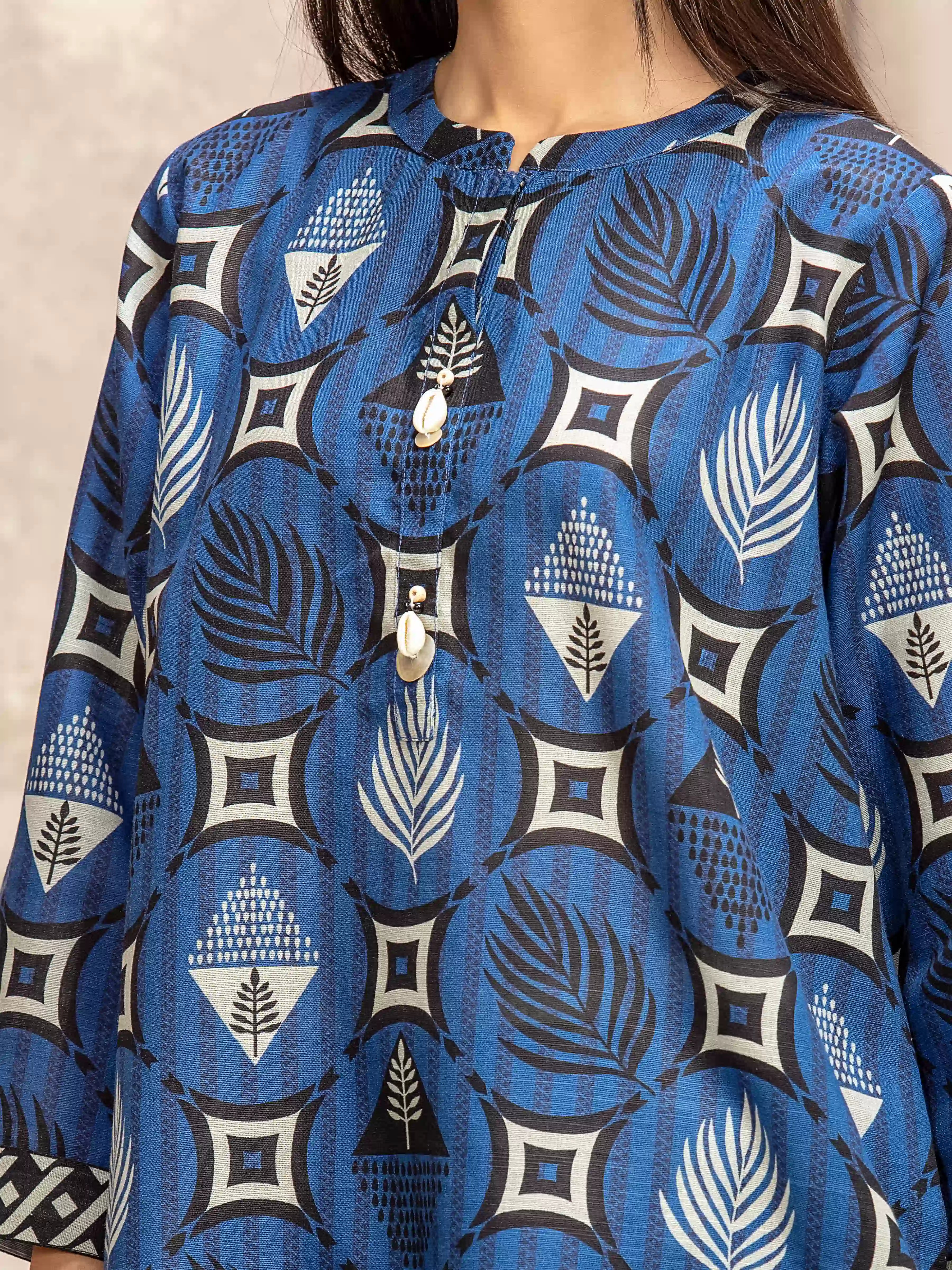Style: Printed Short Length Shirt with Embellished Placket
