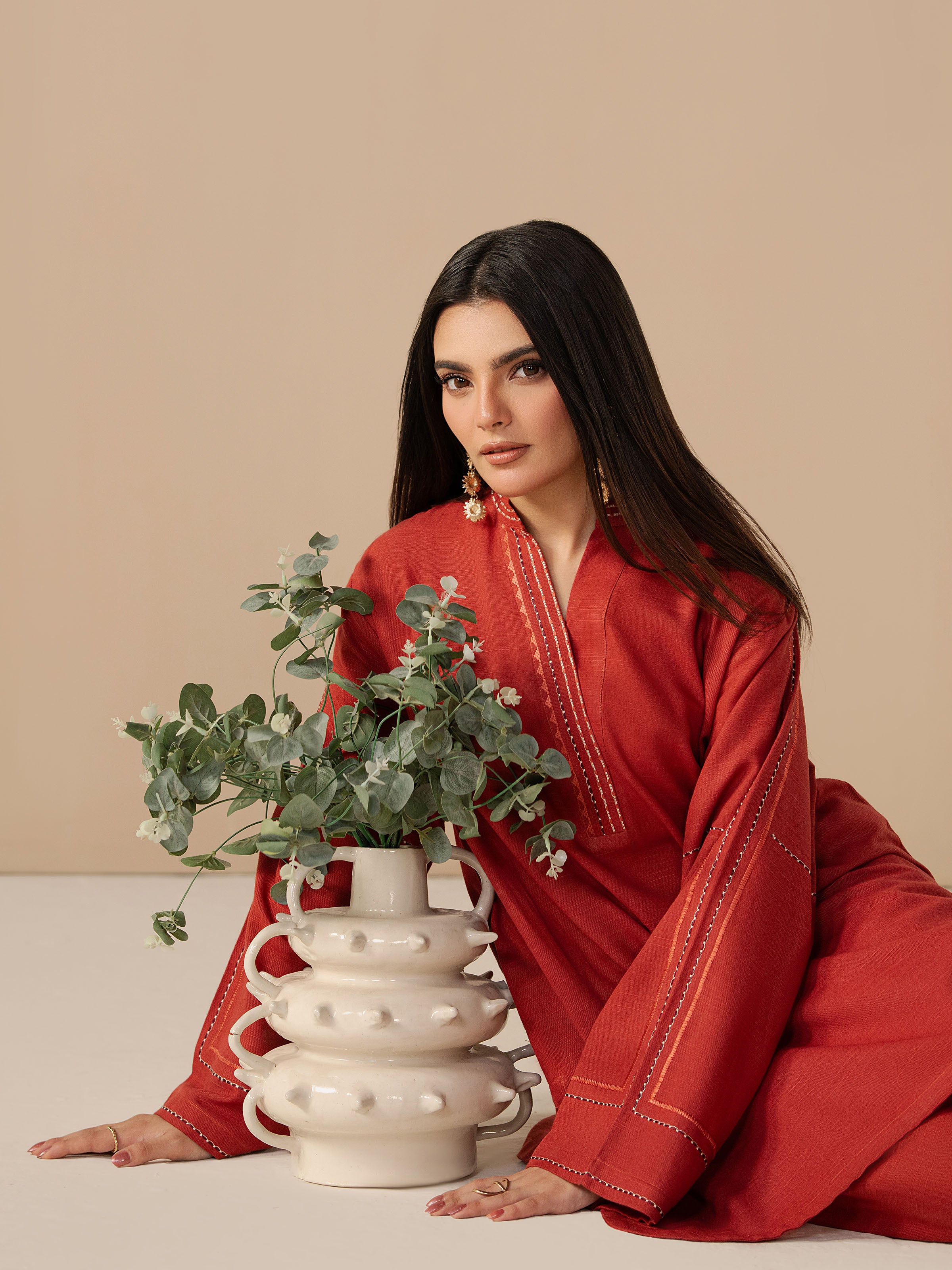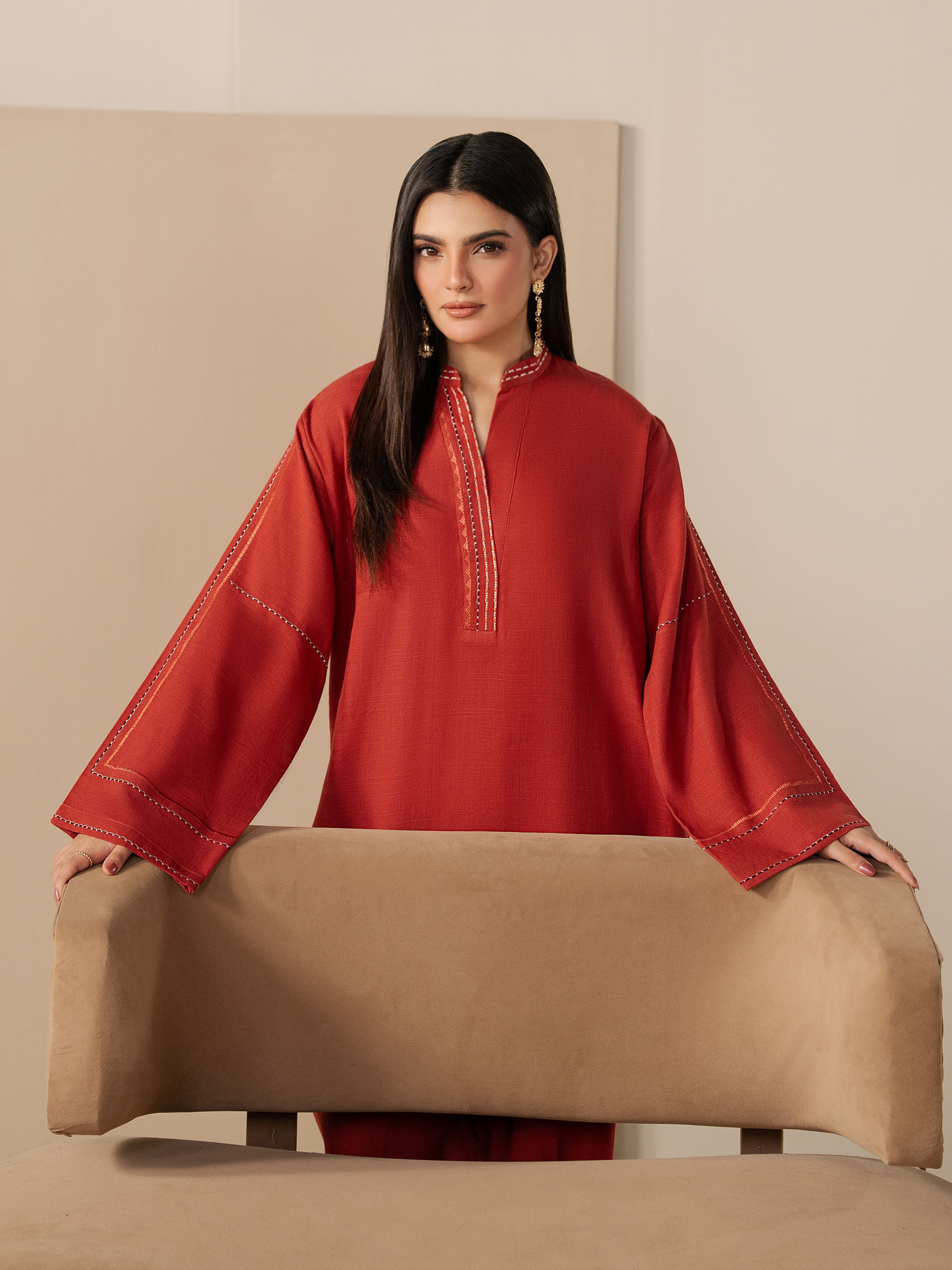 - Style: Plain Shirt with Thread Work Embroidery on Neck, Placket, & Sleeves
