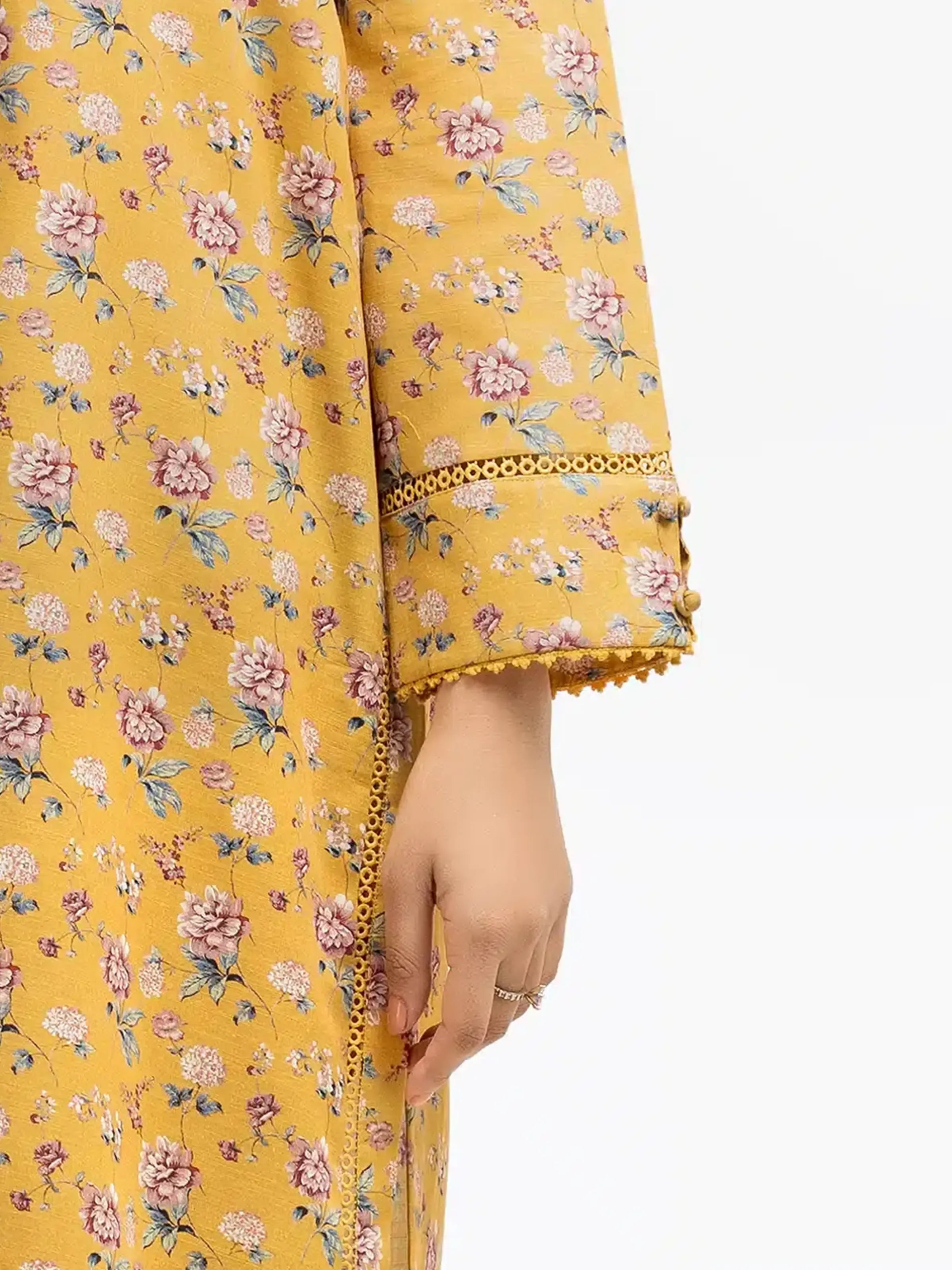 - Style: Floral Printed Shirt with Lace on Detailing & Loop Buttons on Sleeves