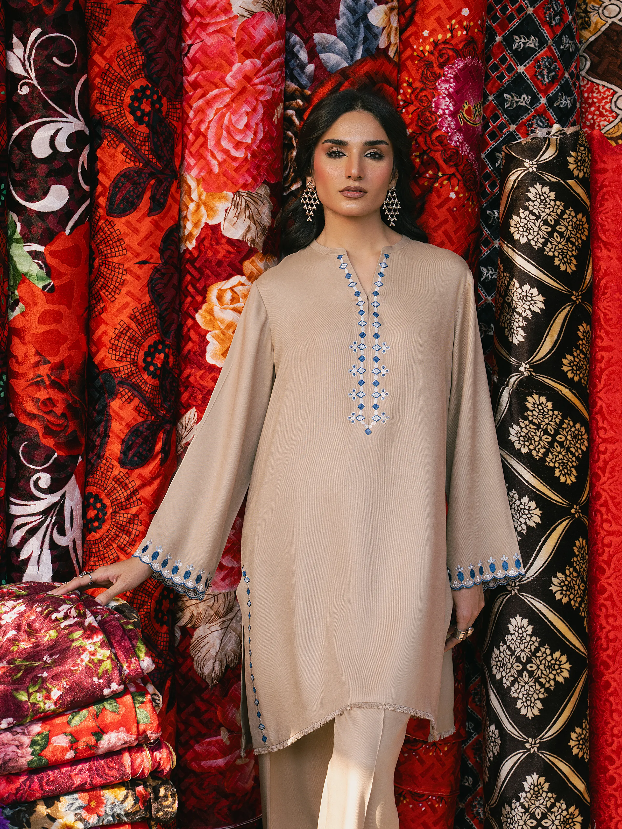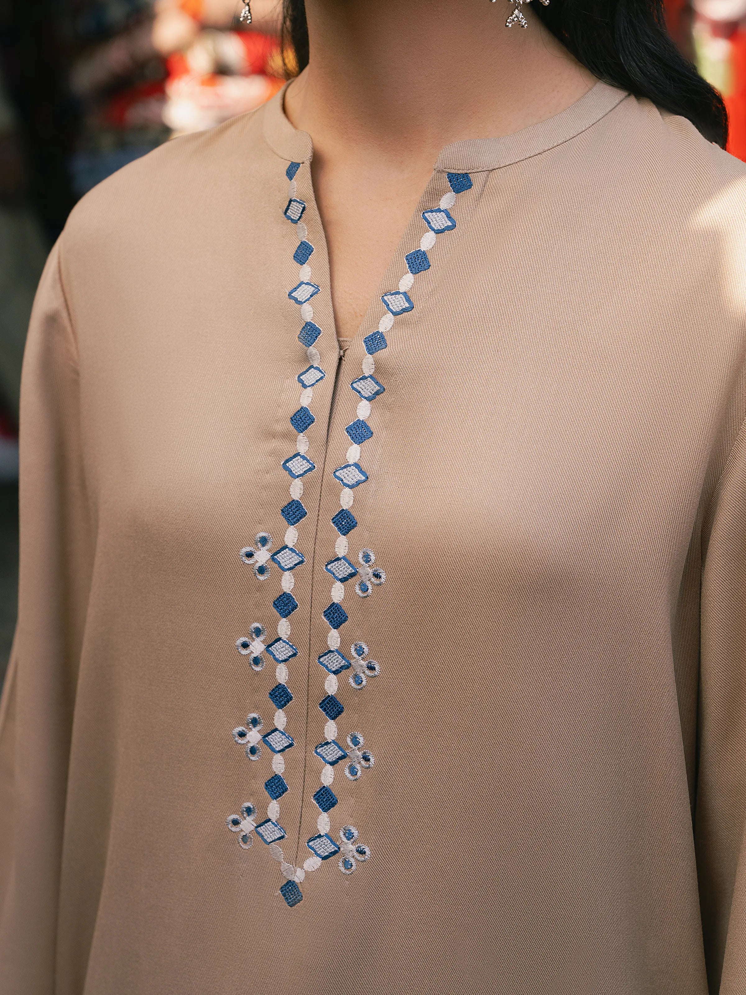 • Style: Plain Trouser with Embroidered Bottom