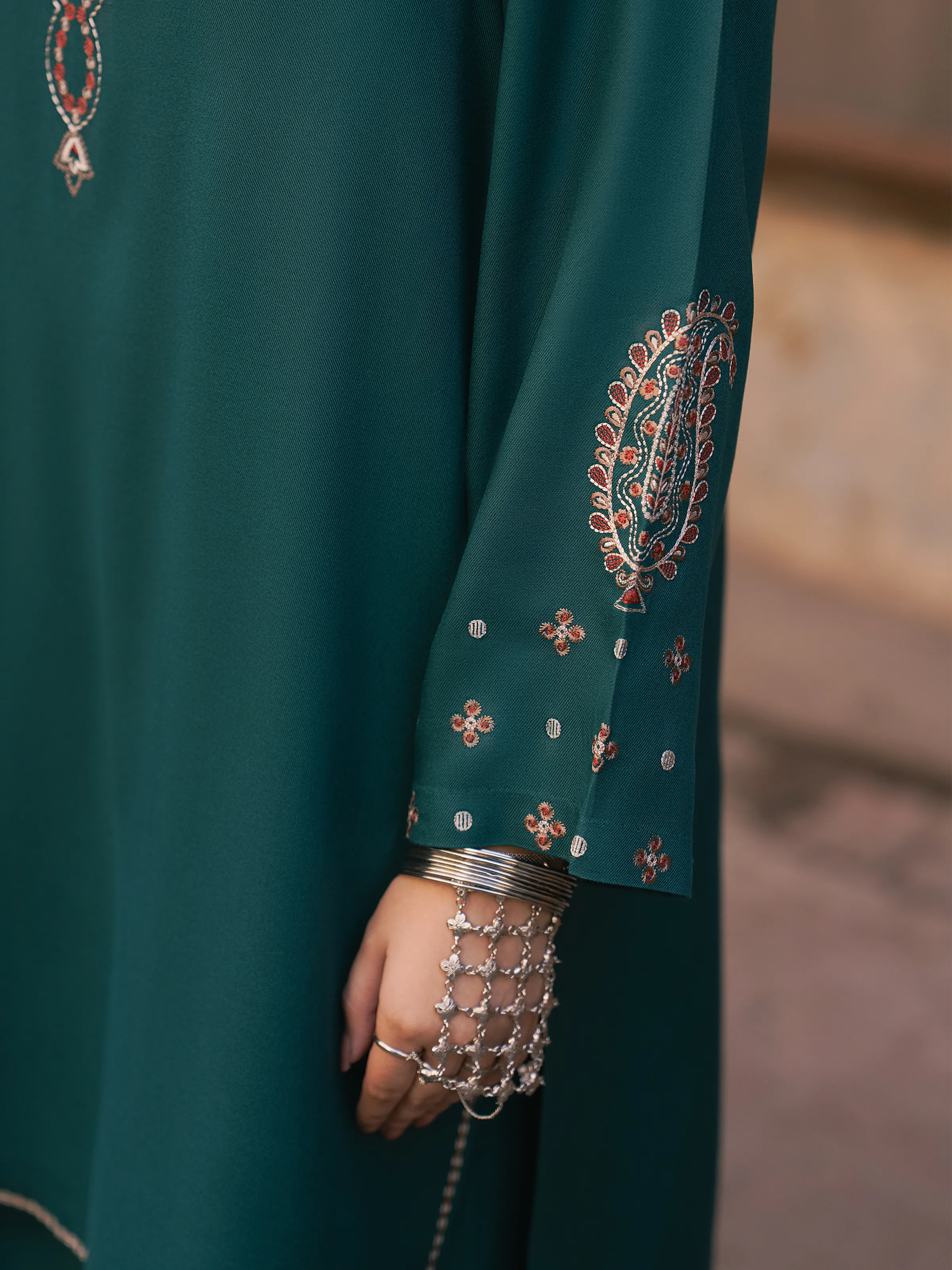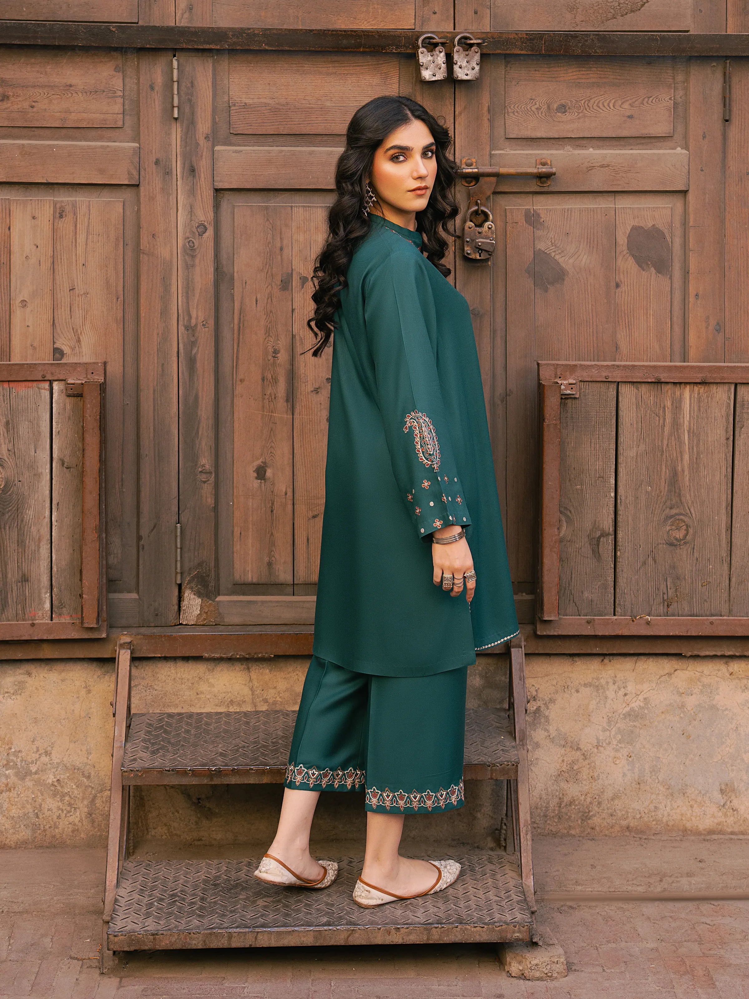 • Style: Plain Trouser with Embroidered Bottom