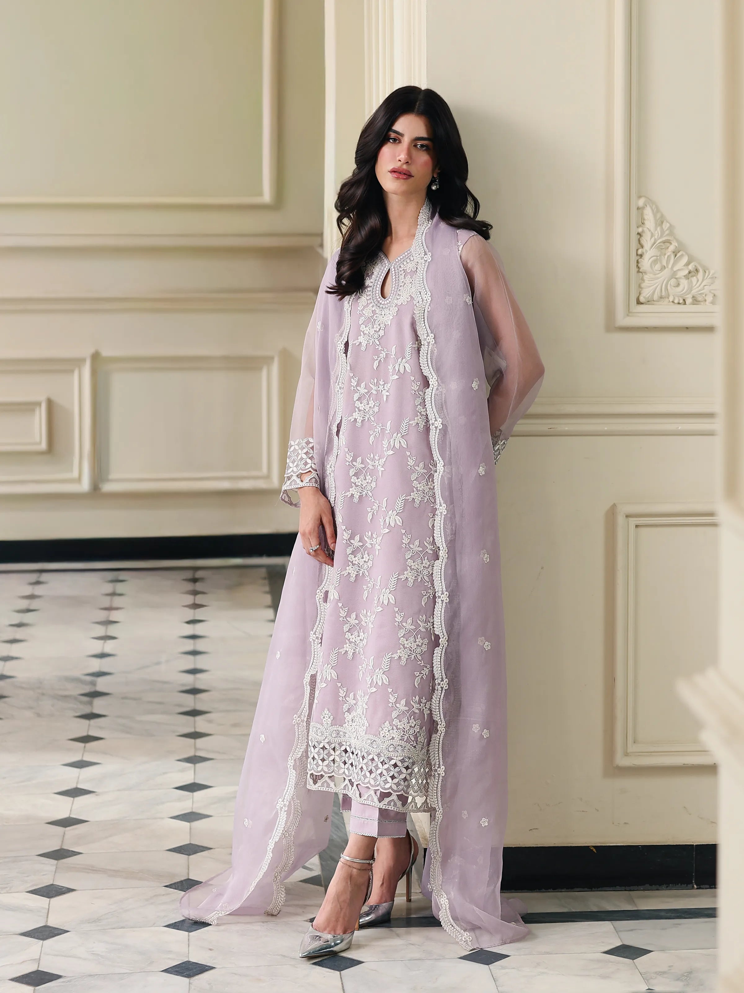 Unstitched Lilac Embroidered Organza 3 Piece