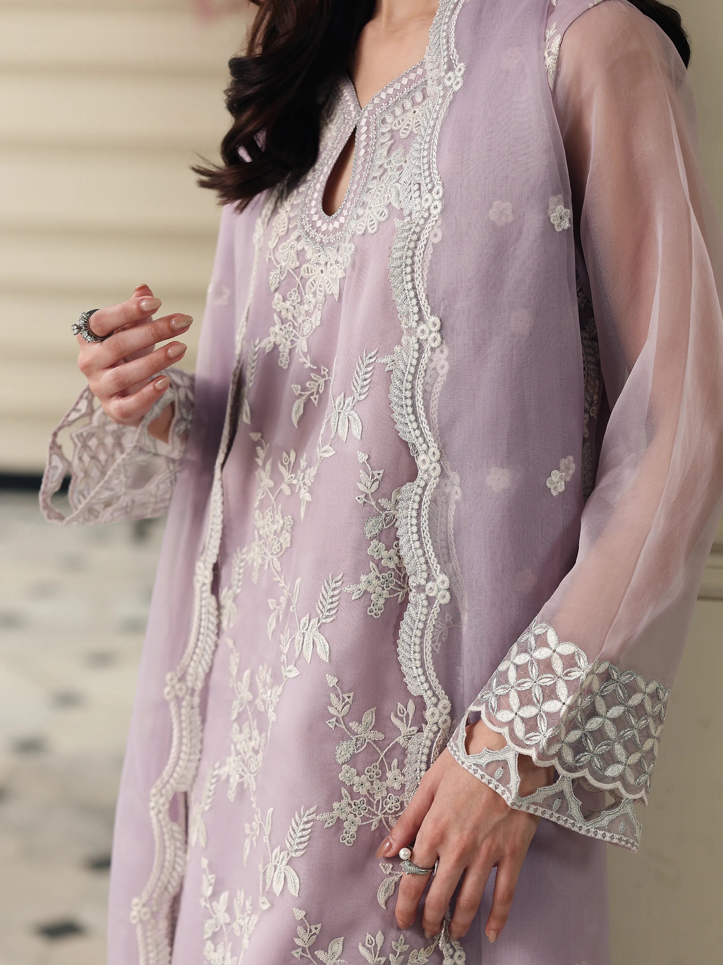 - Embroidered Neckline on Organza