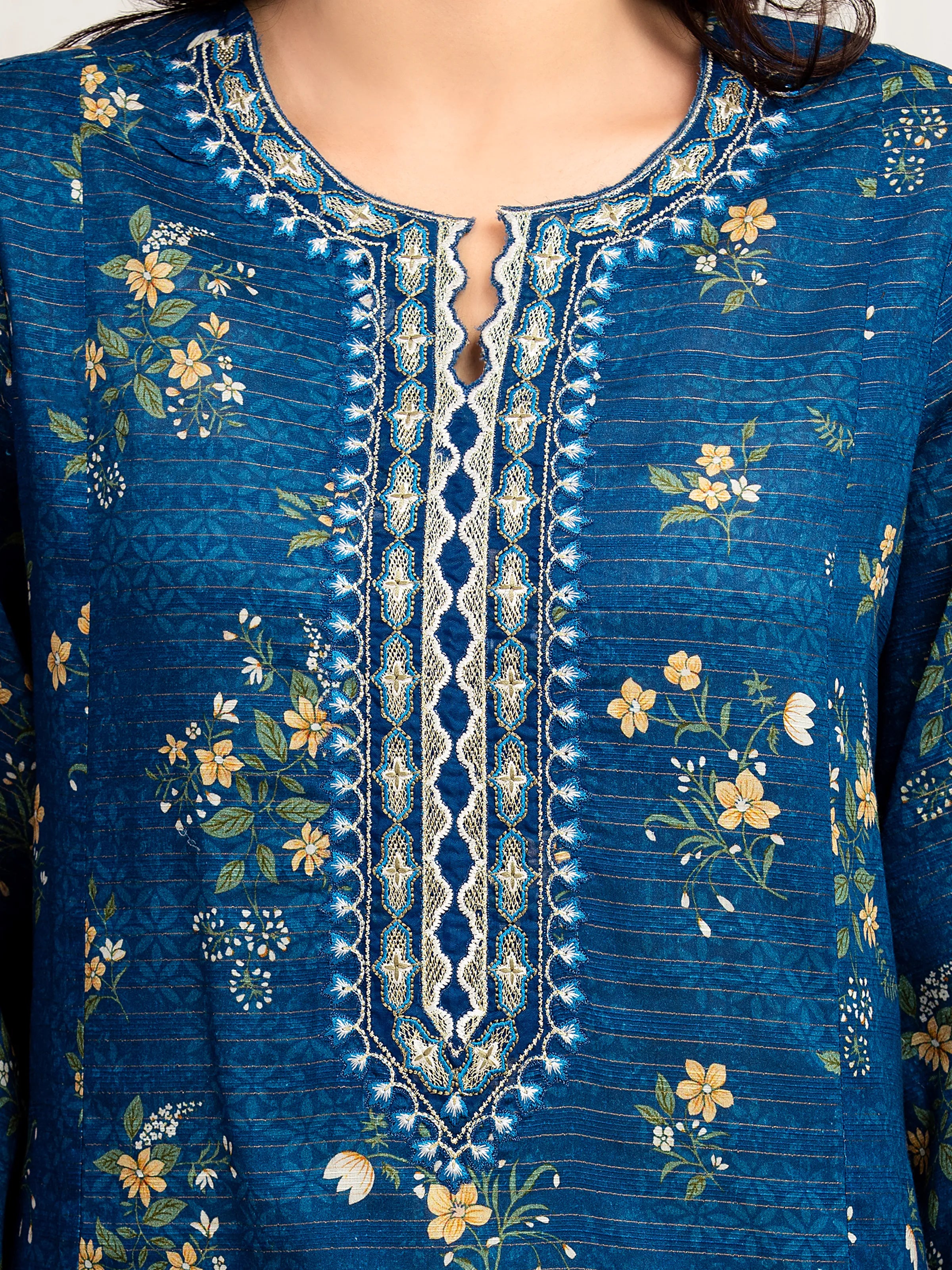 - Embroidered Neckline on Organza