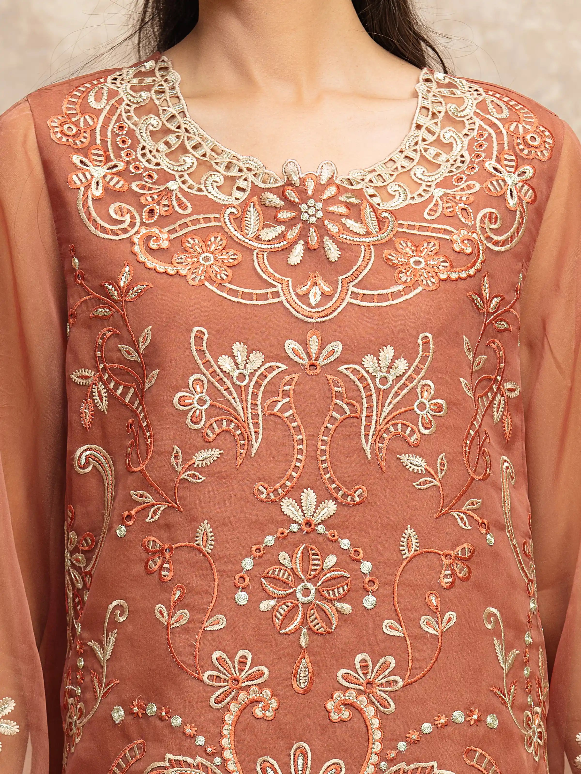 • Embroidered Neckline on Organza