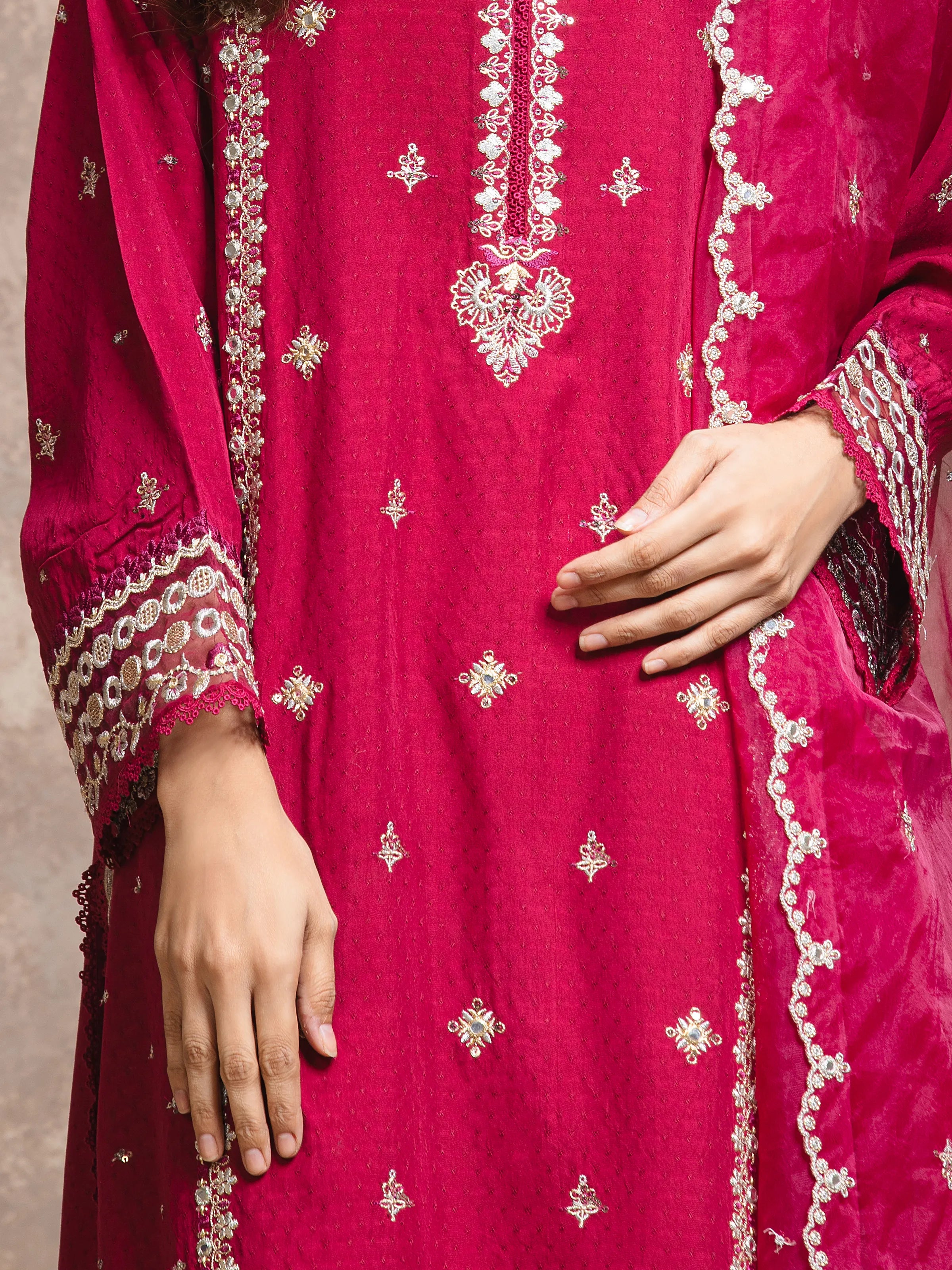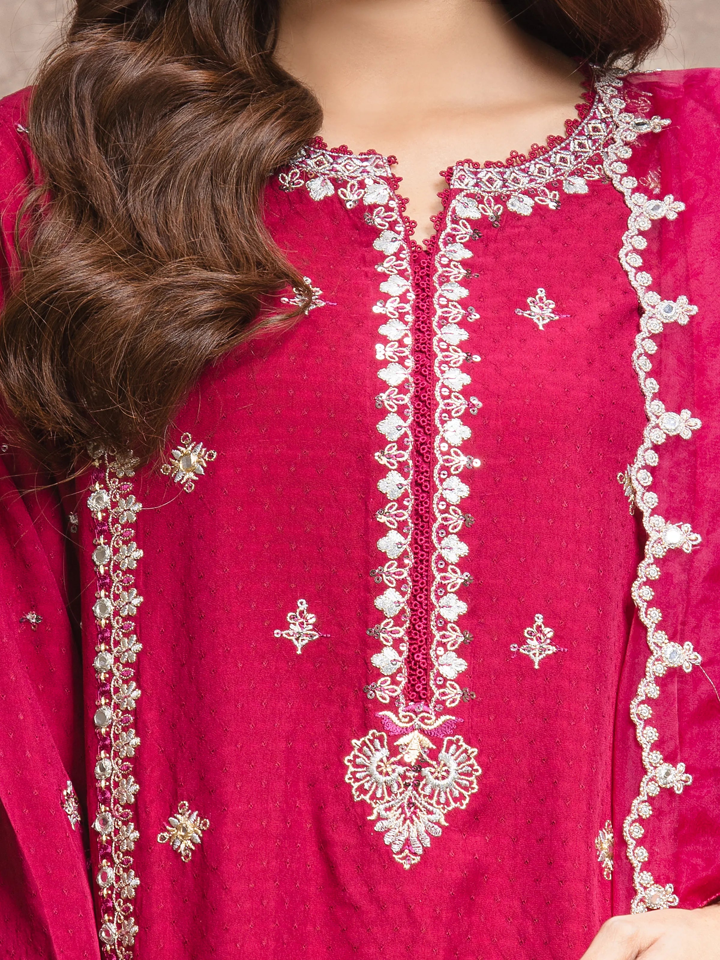 Unstitched Magenta Embroidered Dobby Viscose Filament Suit