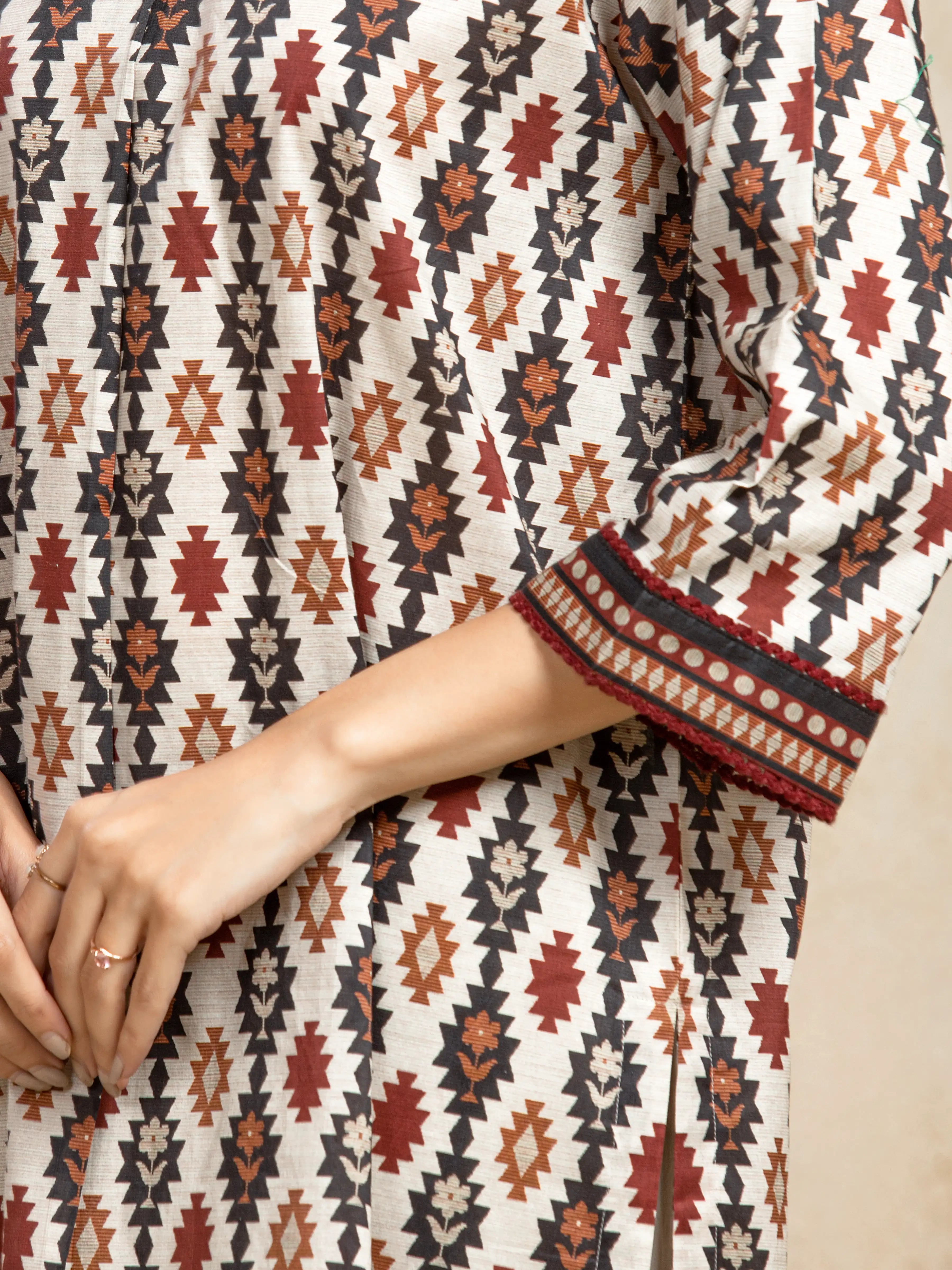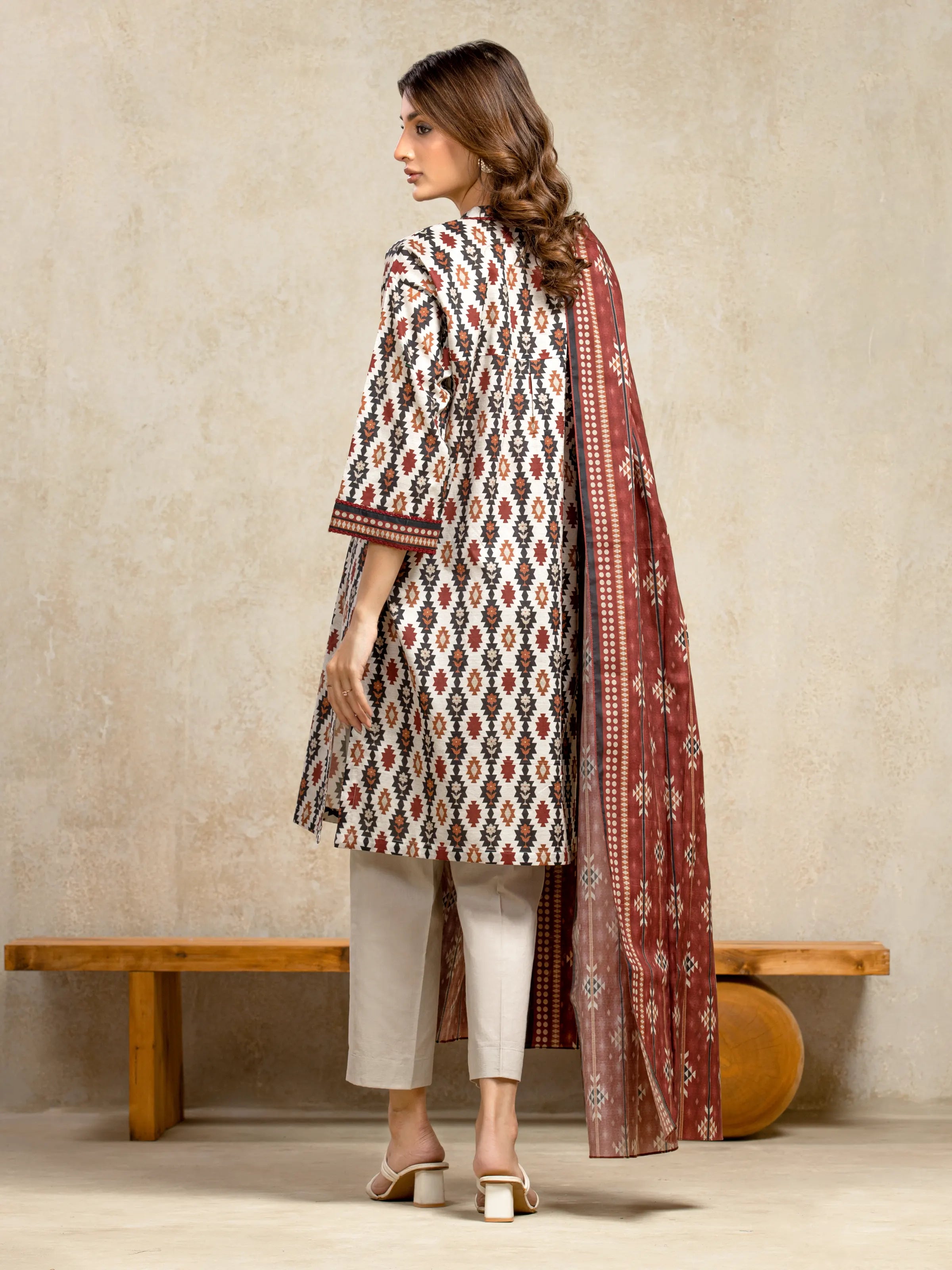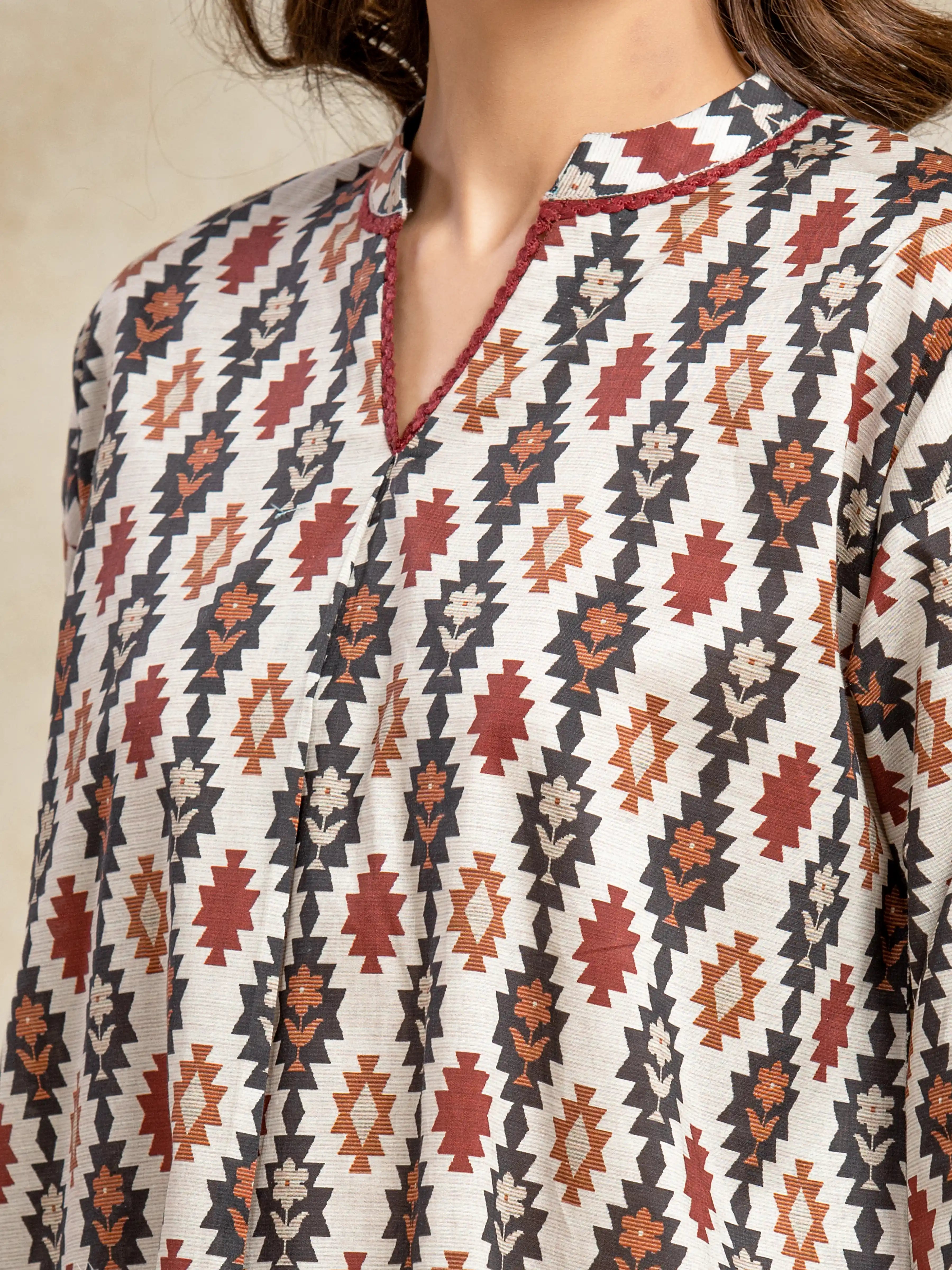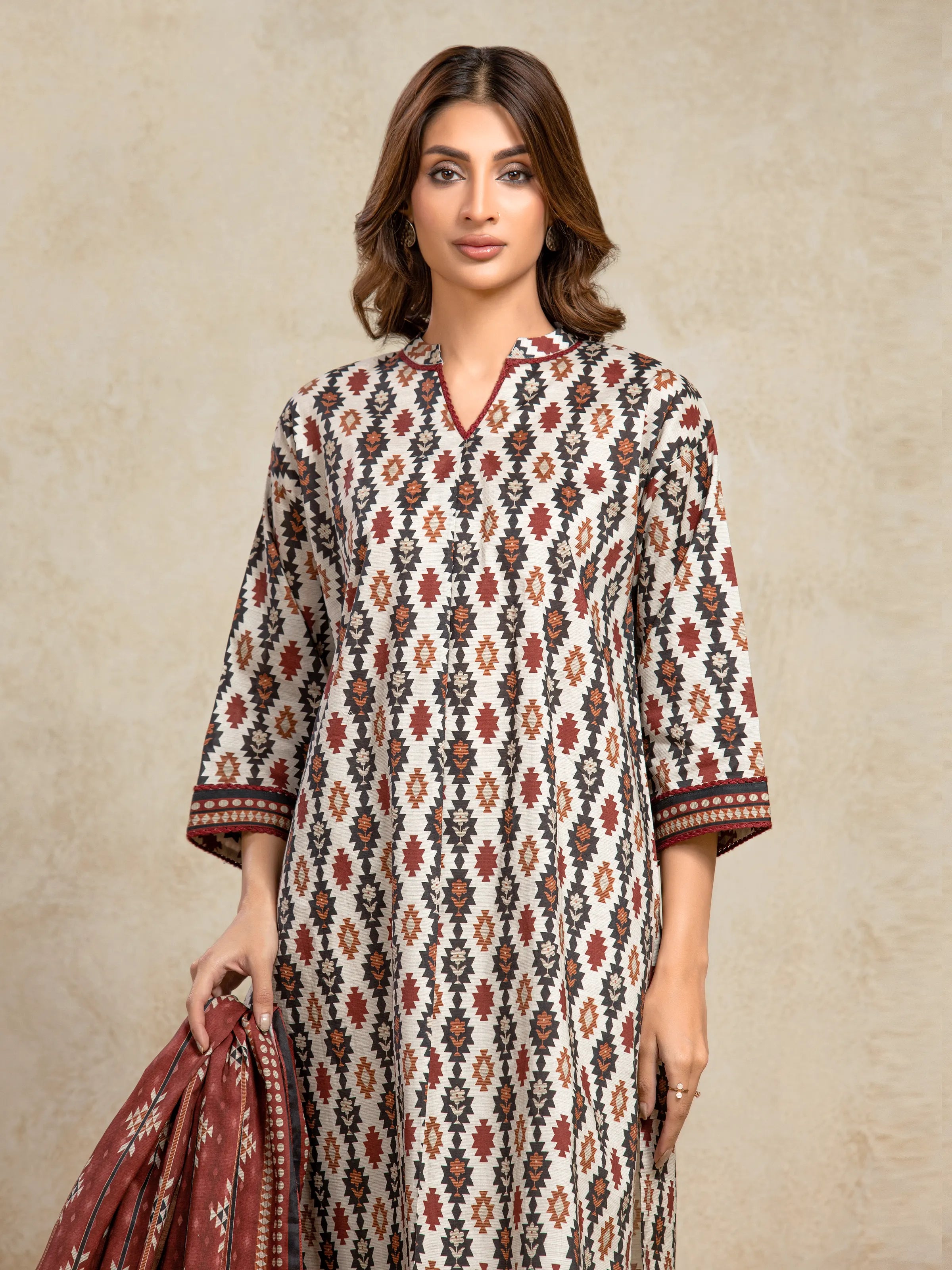 Unstitched Ash Grey Printed Khaddar 3 Piece