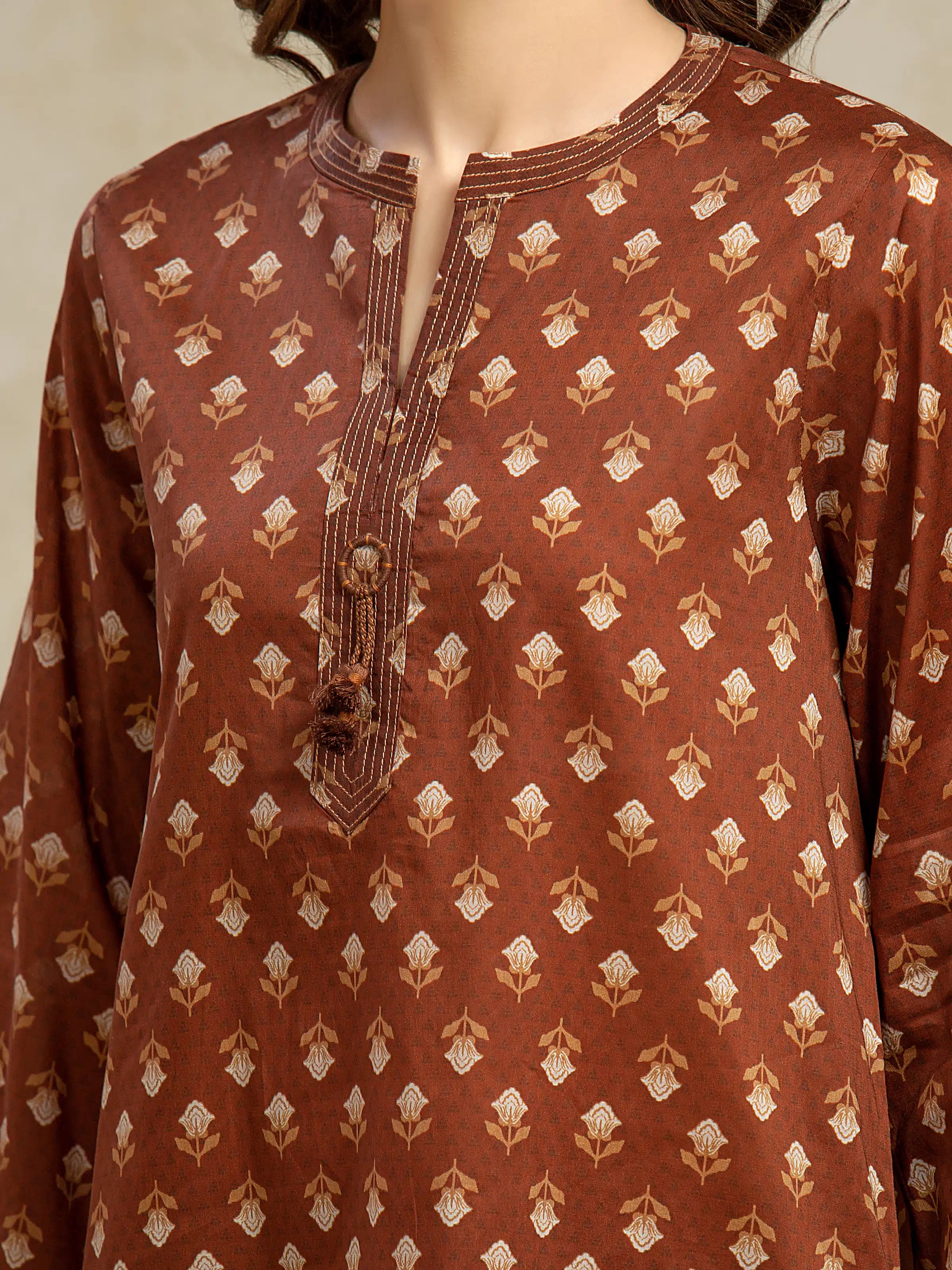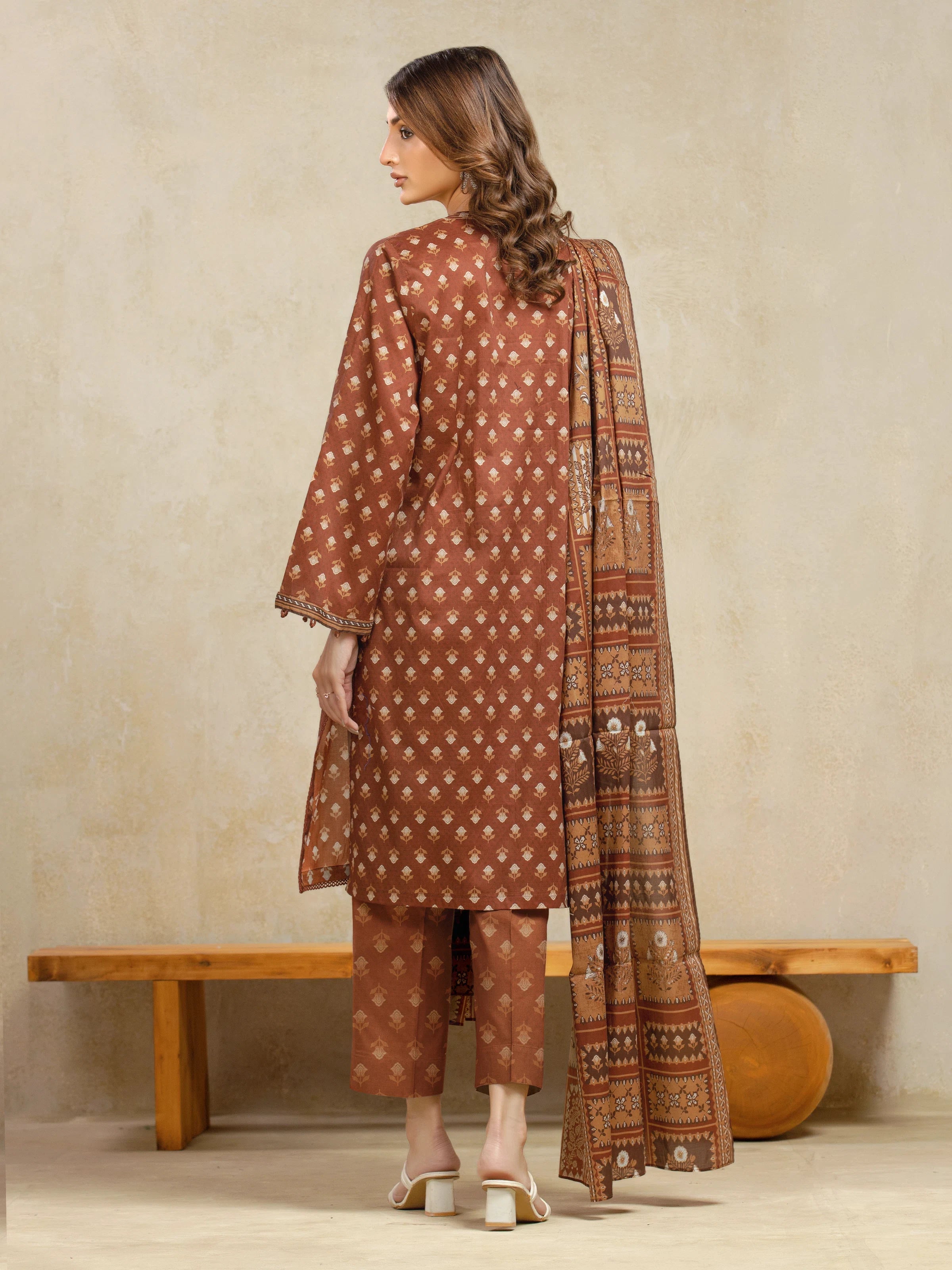 Unstitched Brown Printed Khaddar 3 Piece
