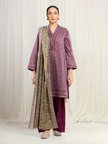 Unstitched Dark Magenta Printed Khaddar 3 Piece