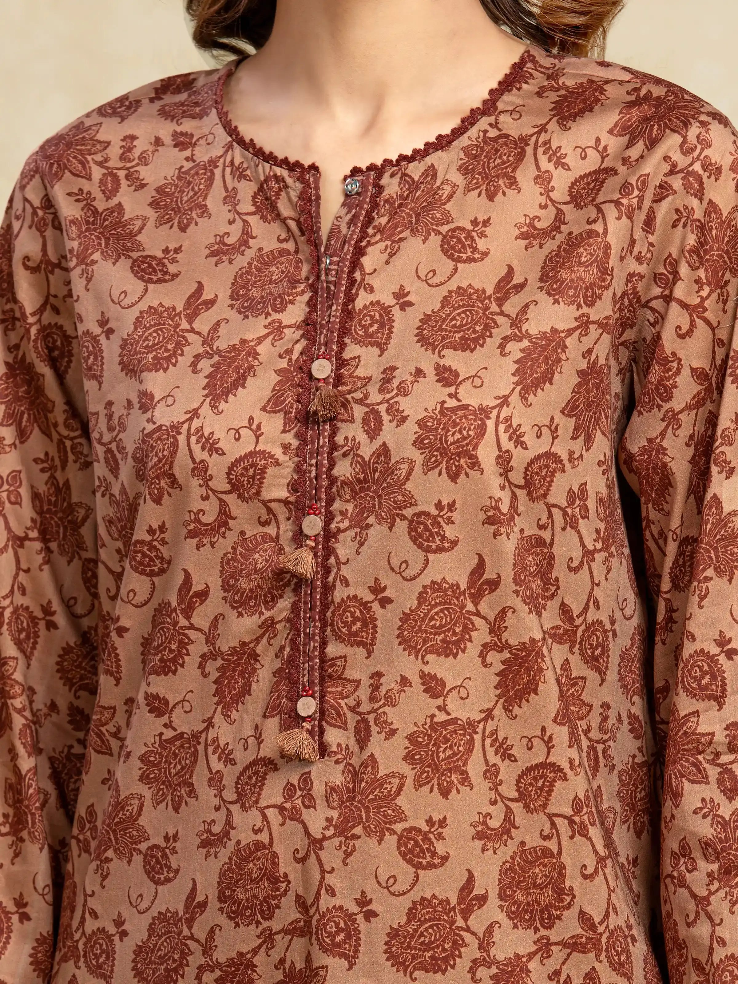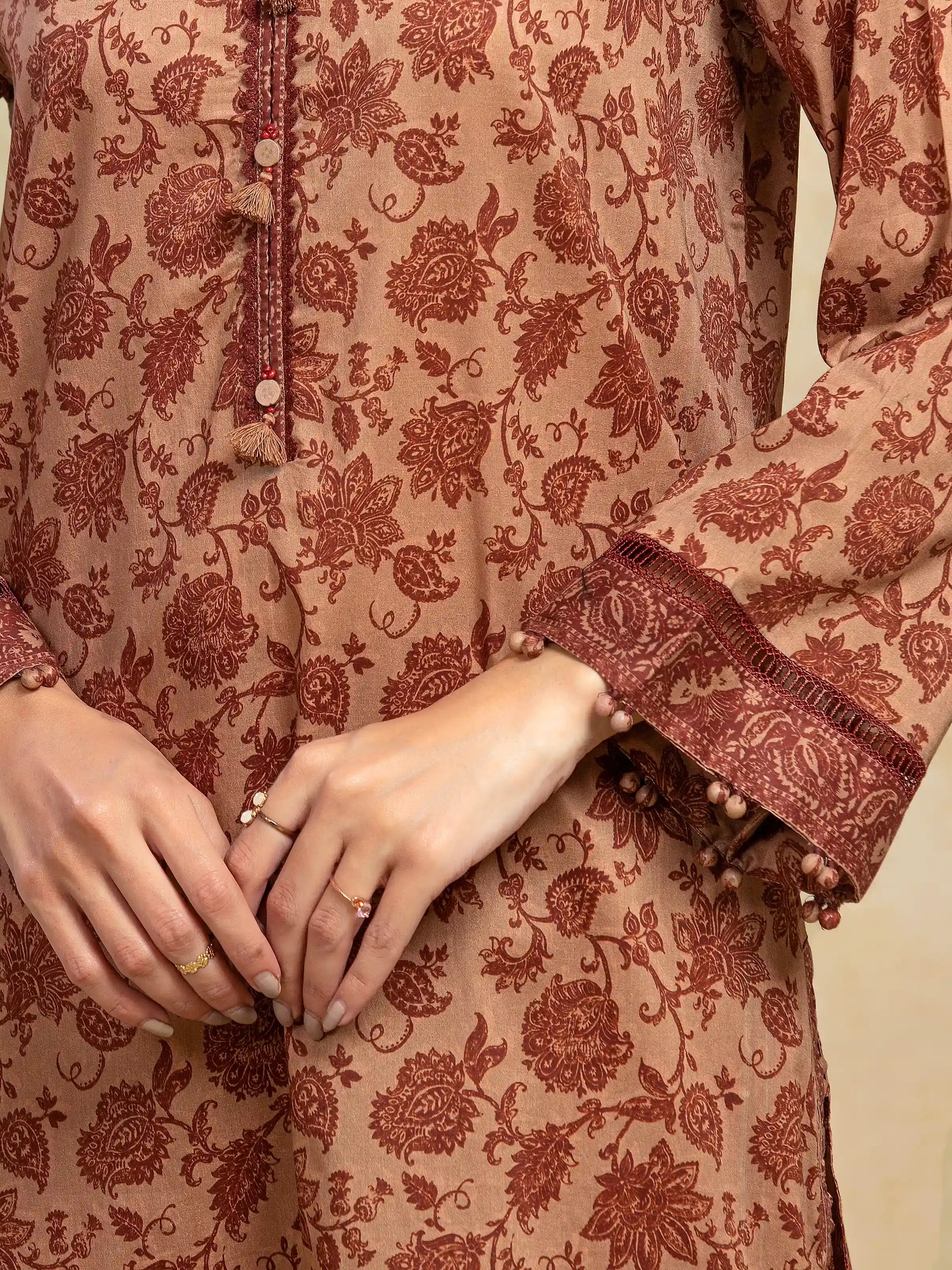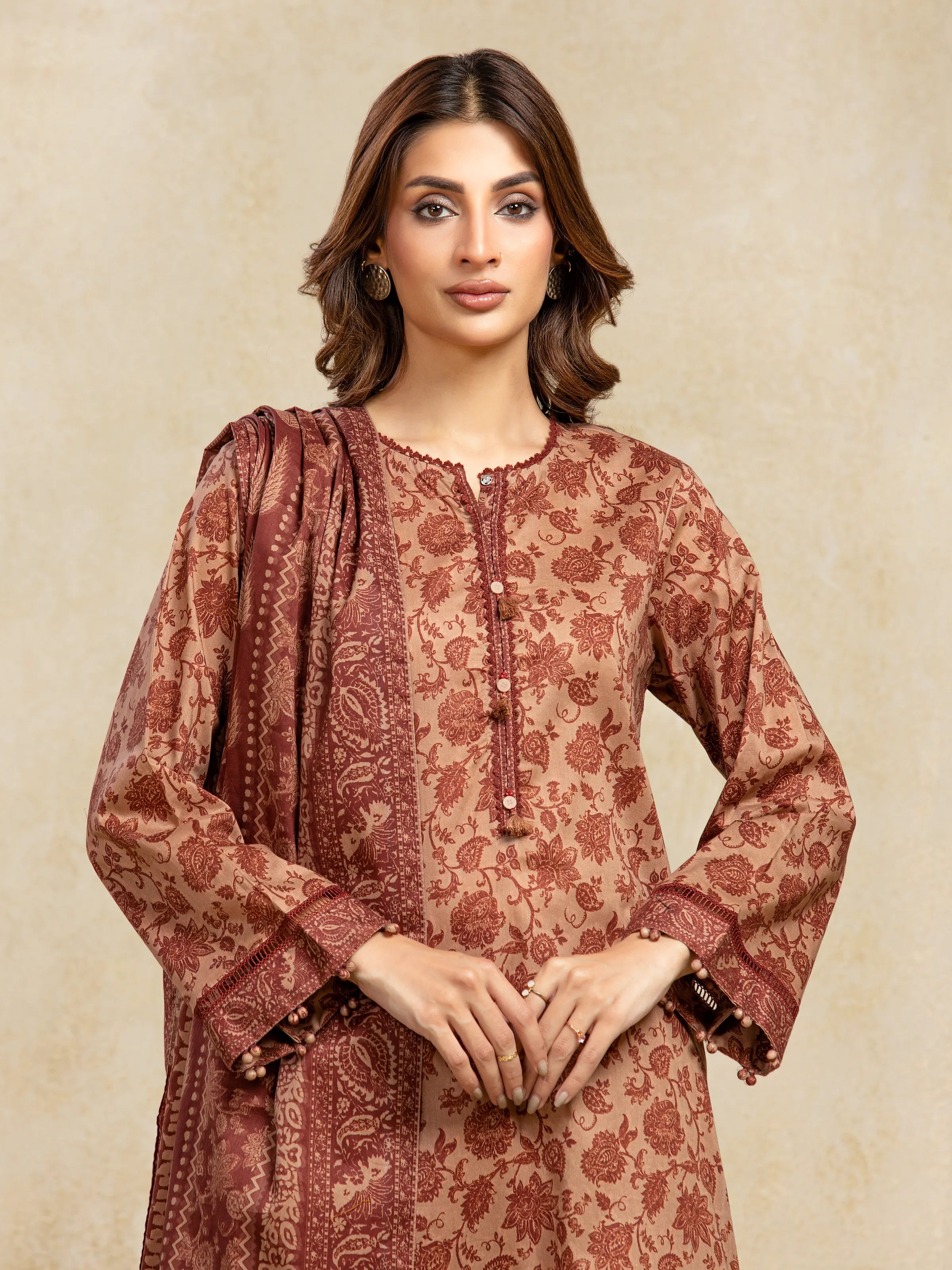 Unstitched Light Brown Printed Khaddar 3 Piece