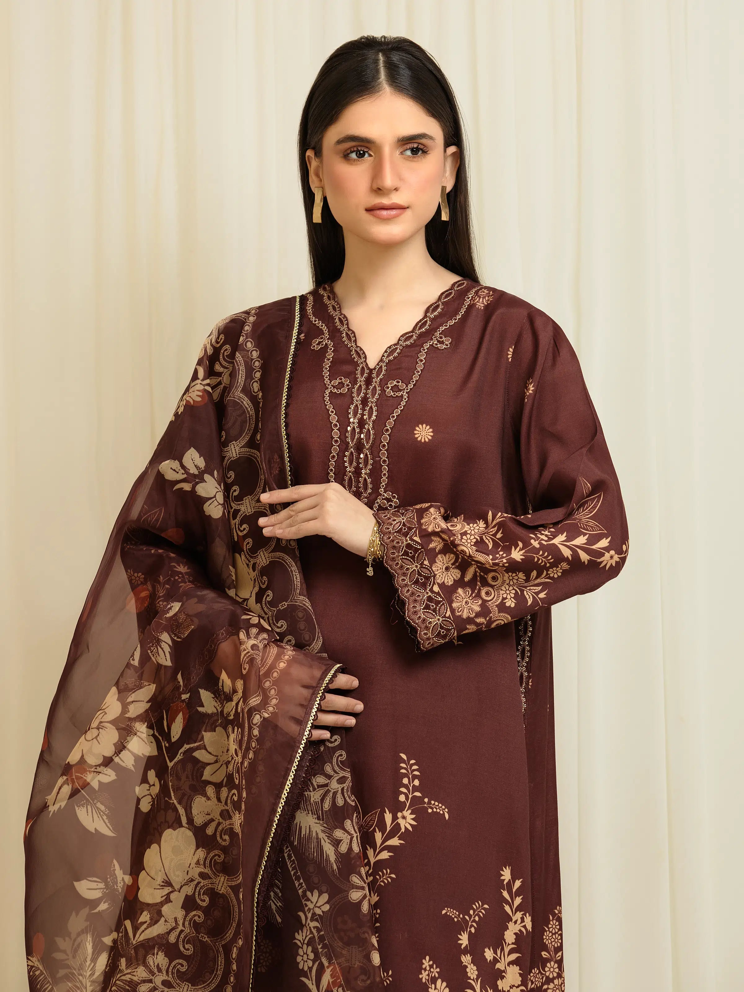 • Embroidered Neckline on Organza