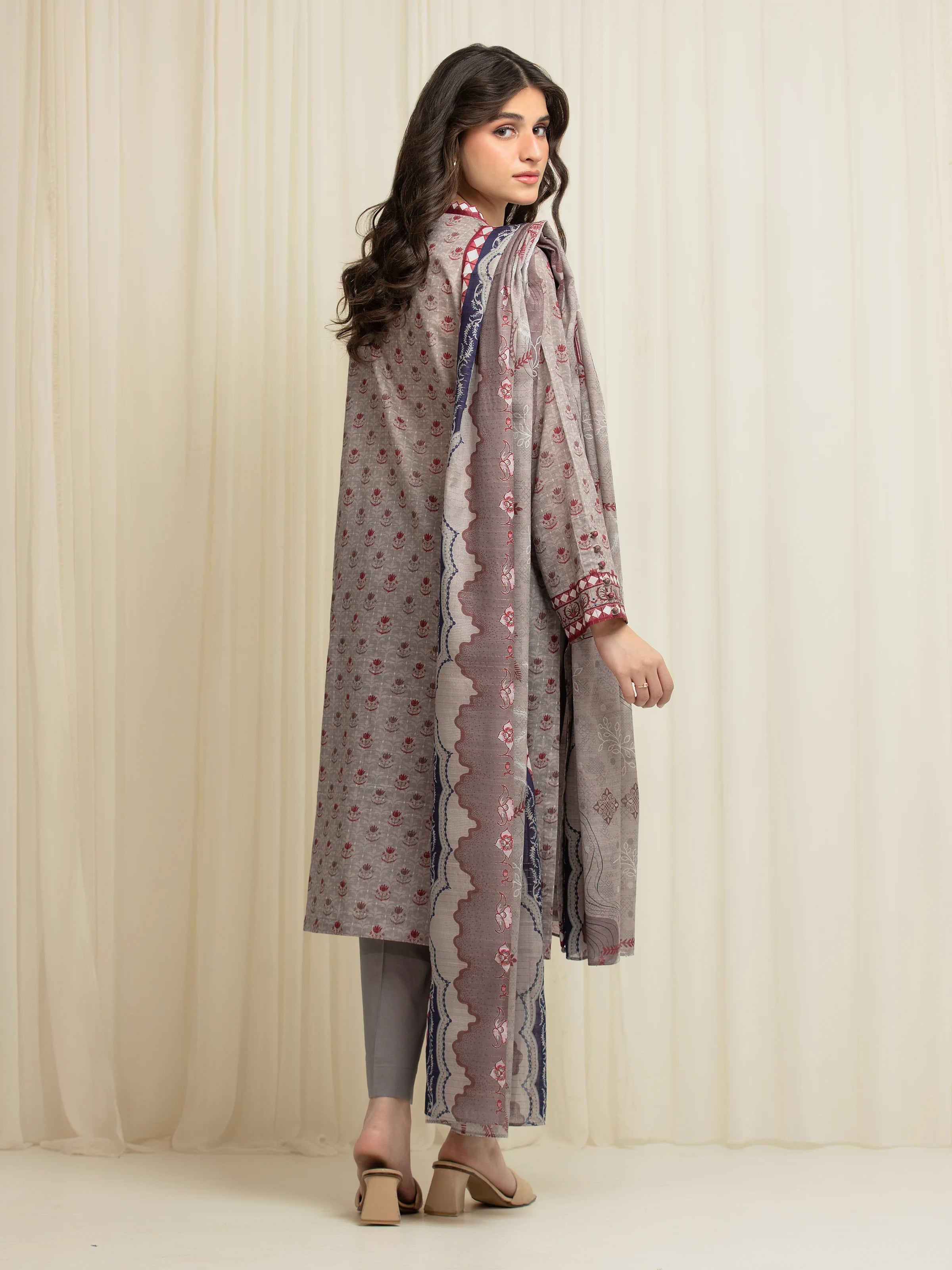 Unstitched Printed Zari Lawn Suit