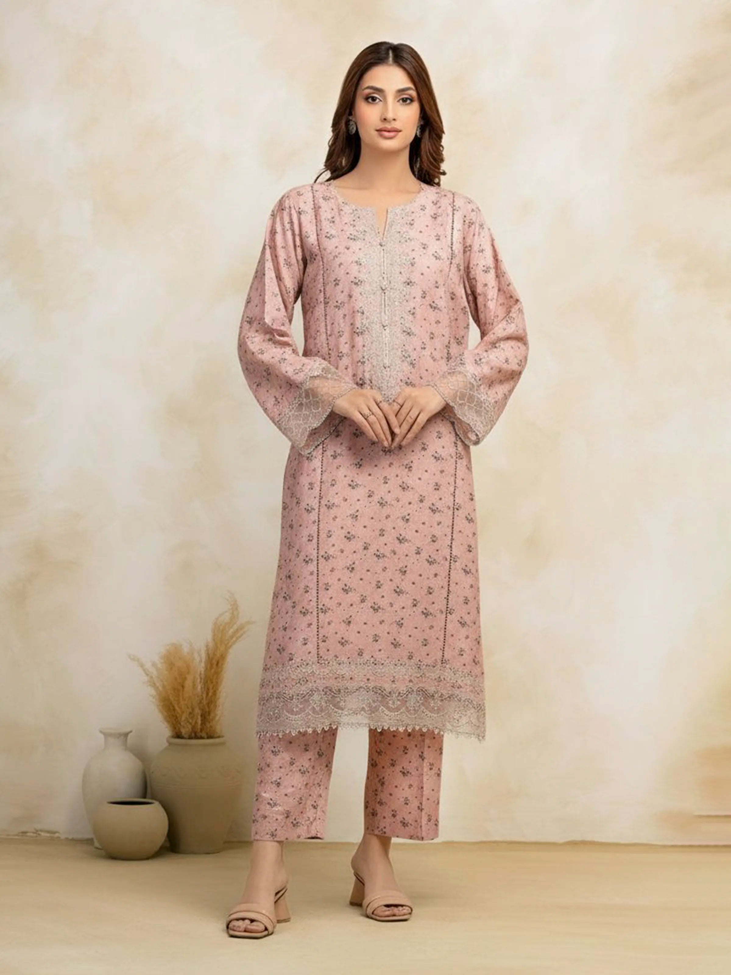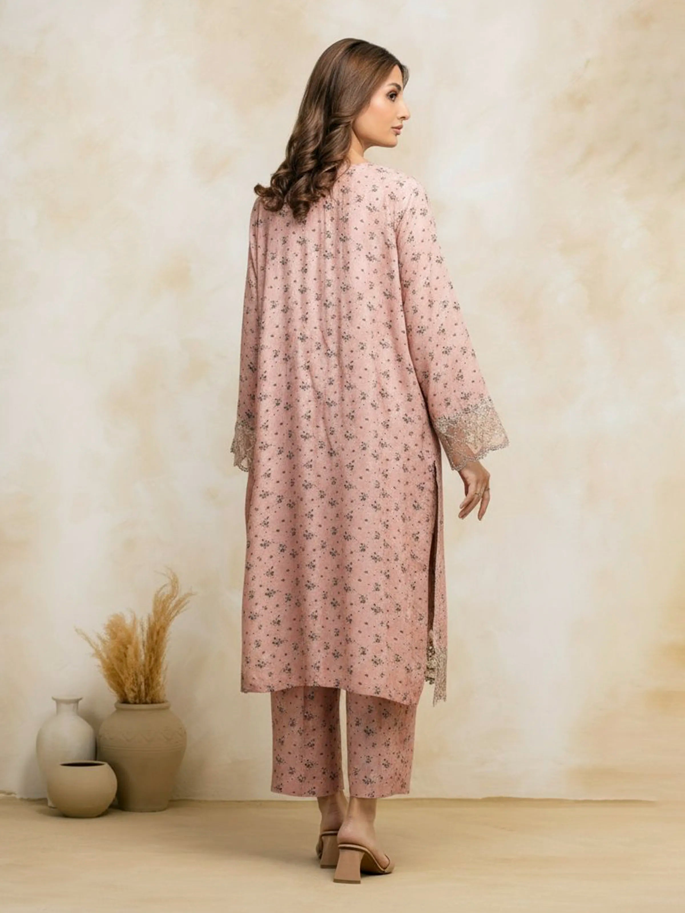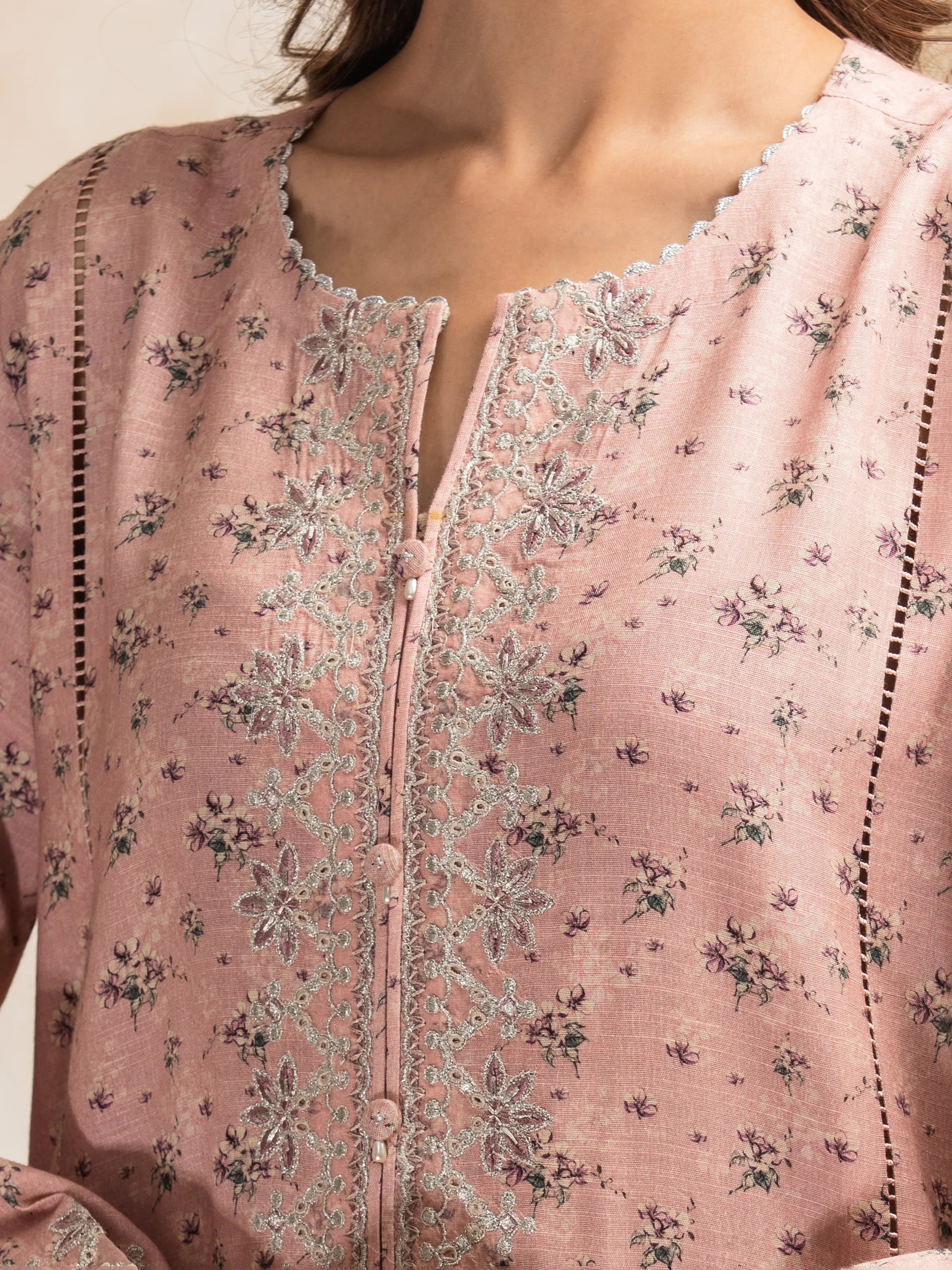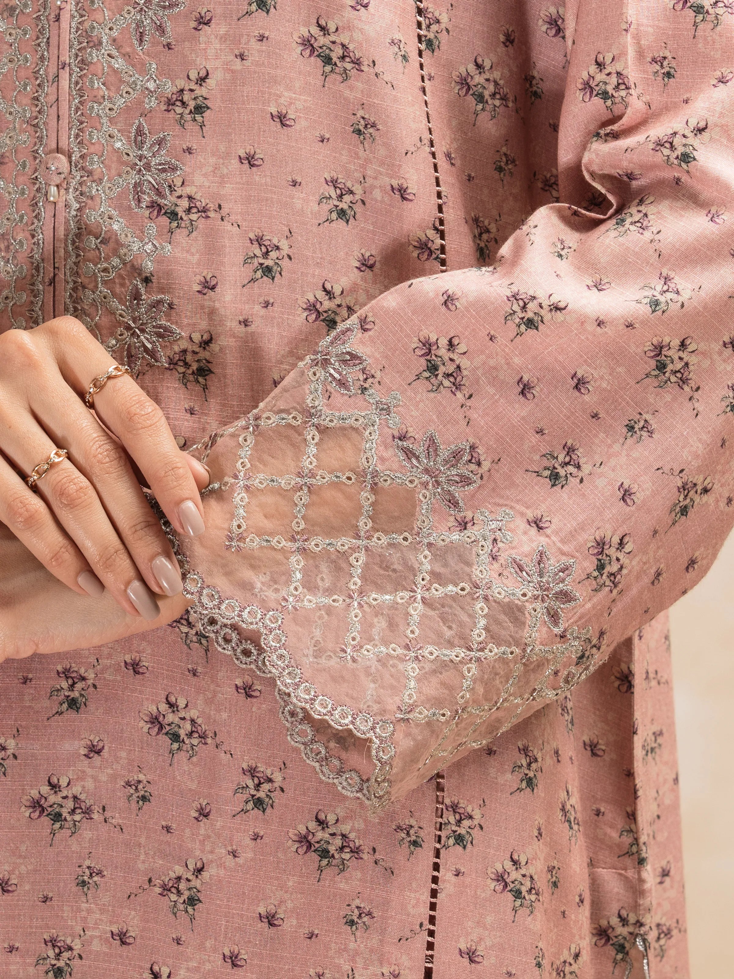 Unstitched Tea Pink Printed Raw Silk 3 Piece