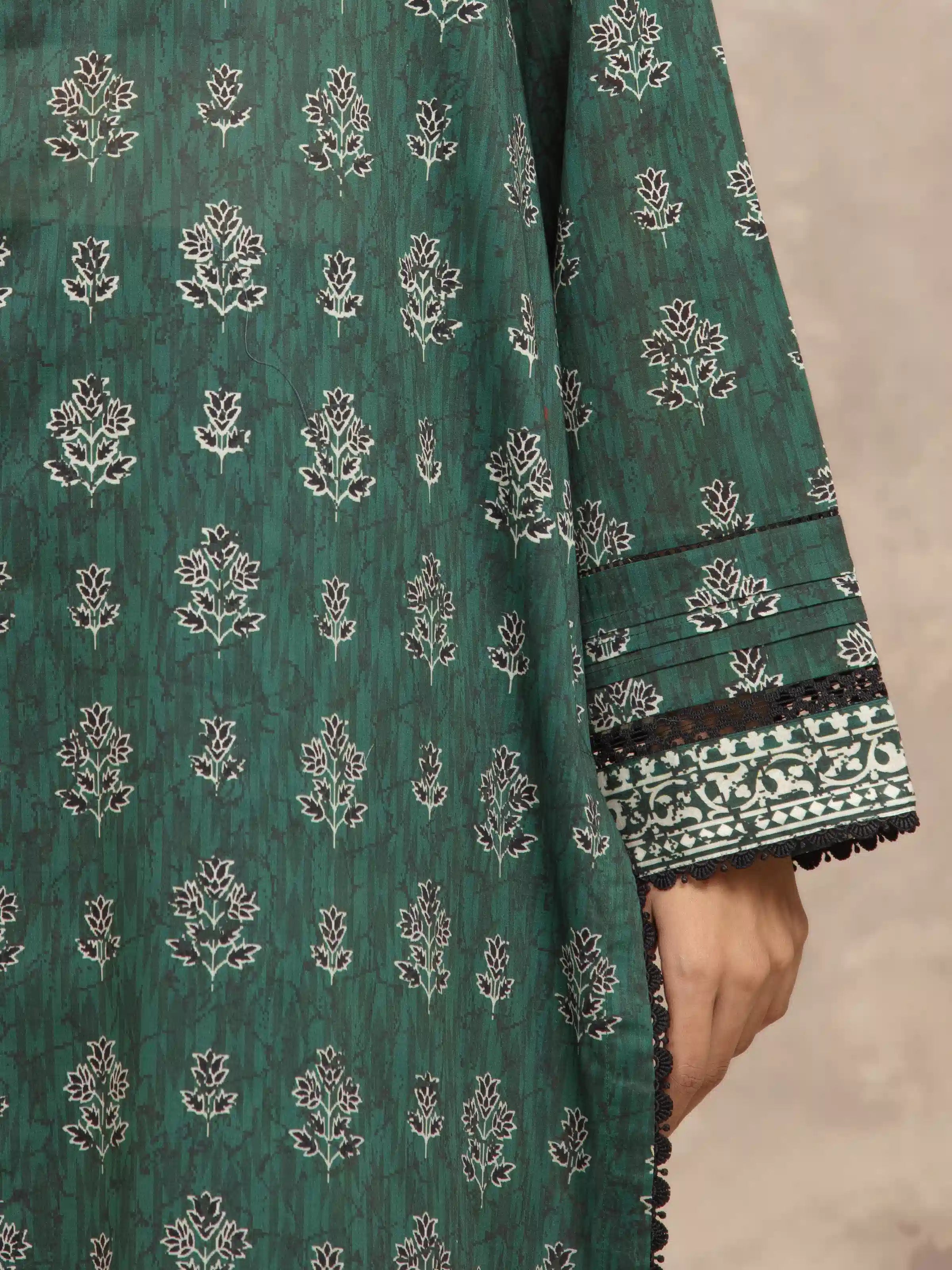 Unstitched Dark Green Printed Khaddar 3 Piece