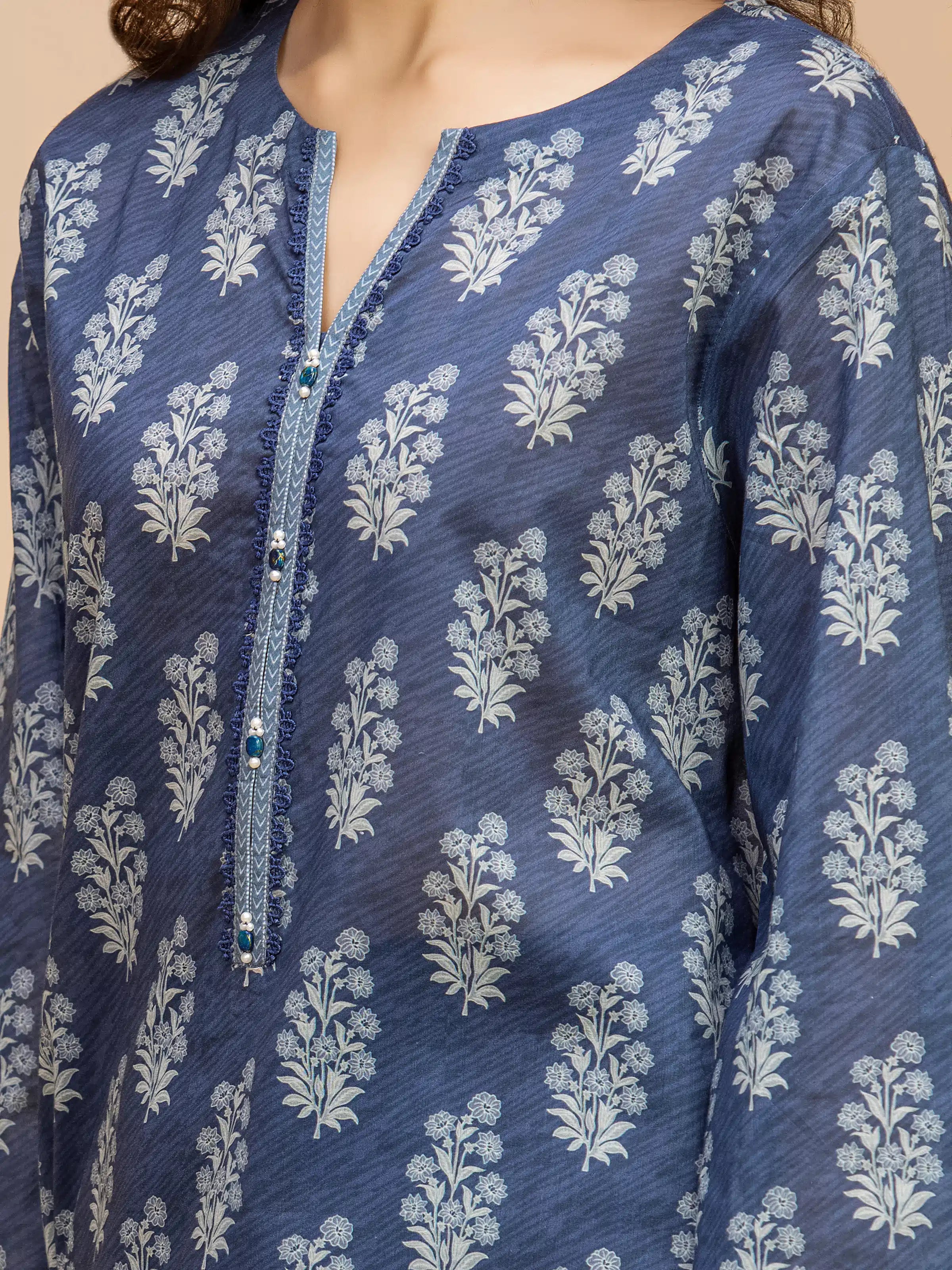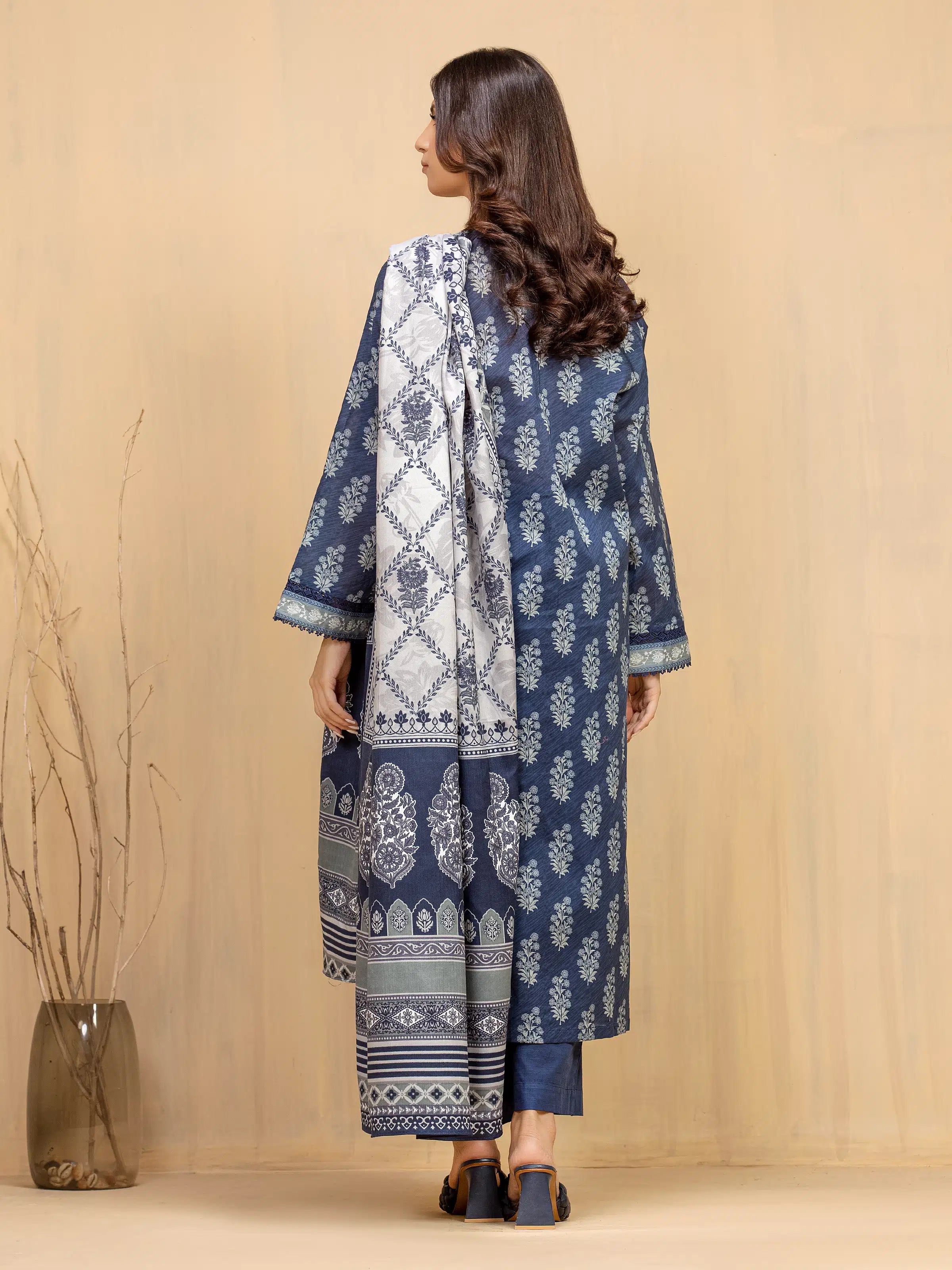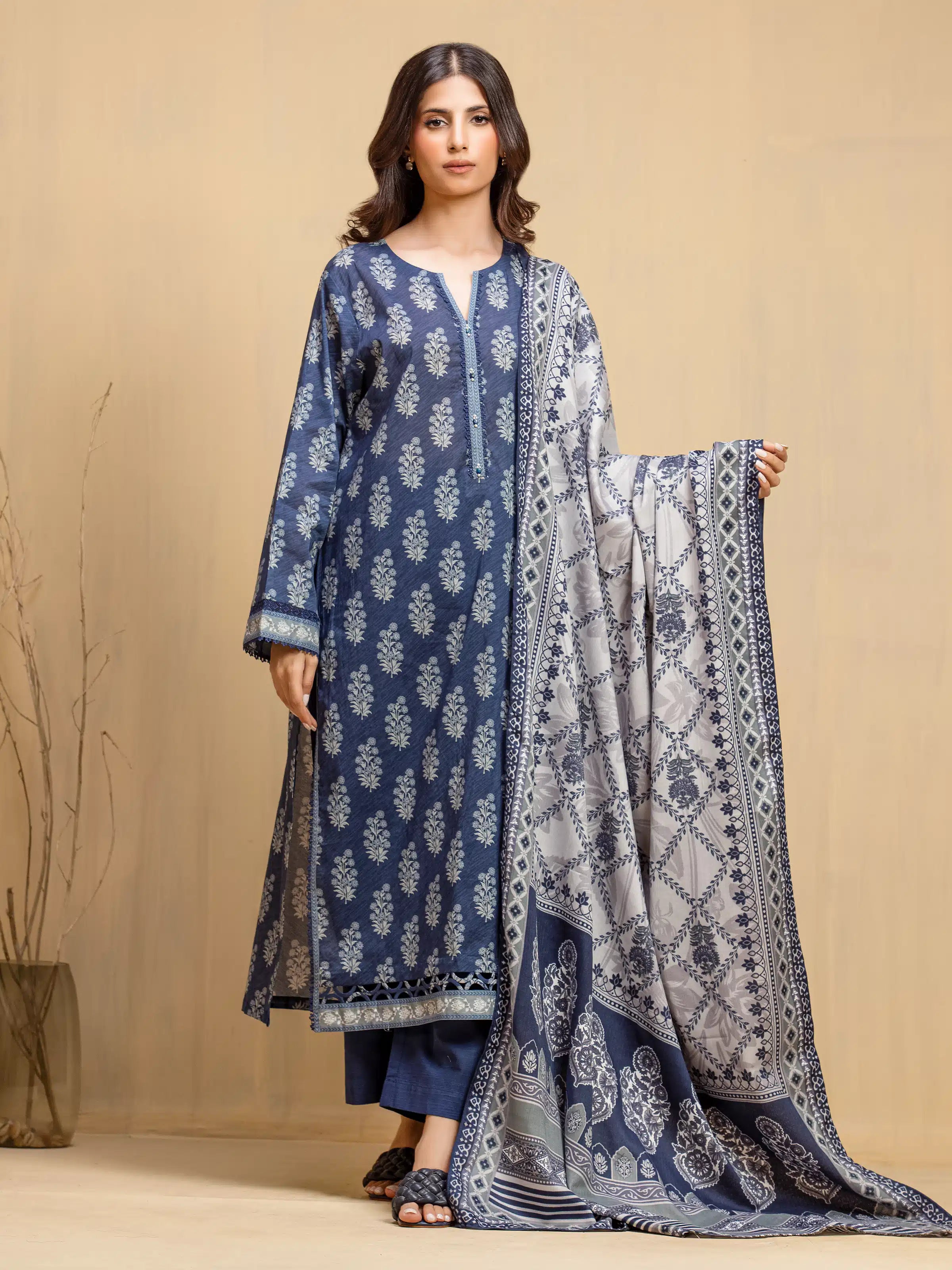 Unstitched Navy Blue Printed Khaddar 3 Piece