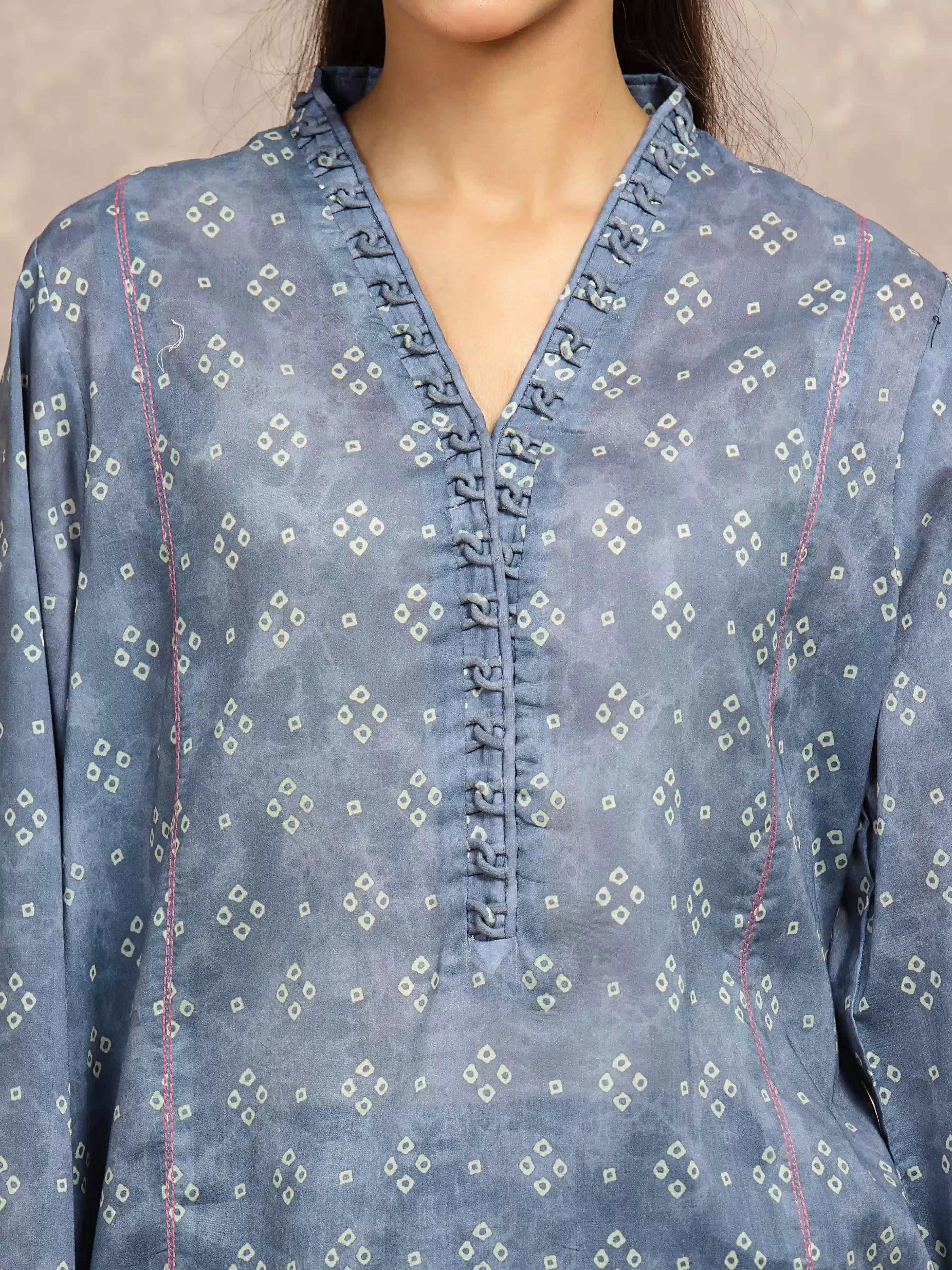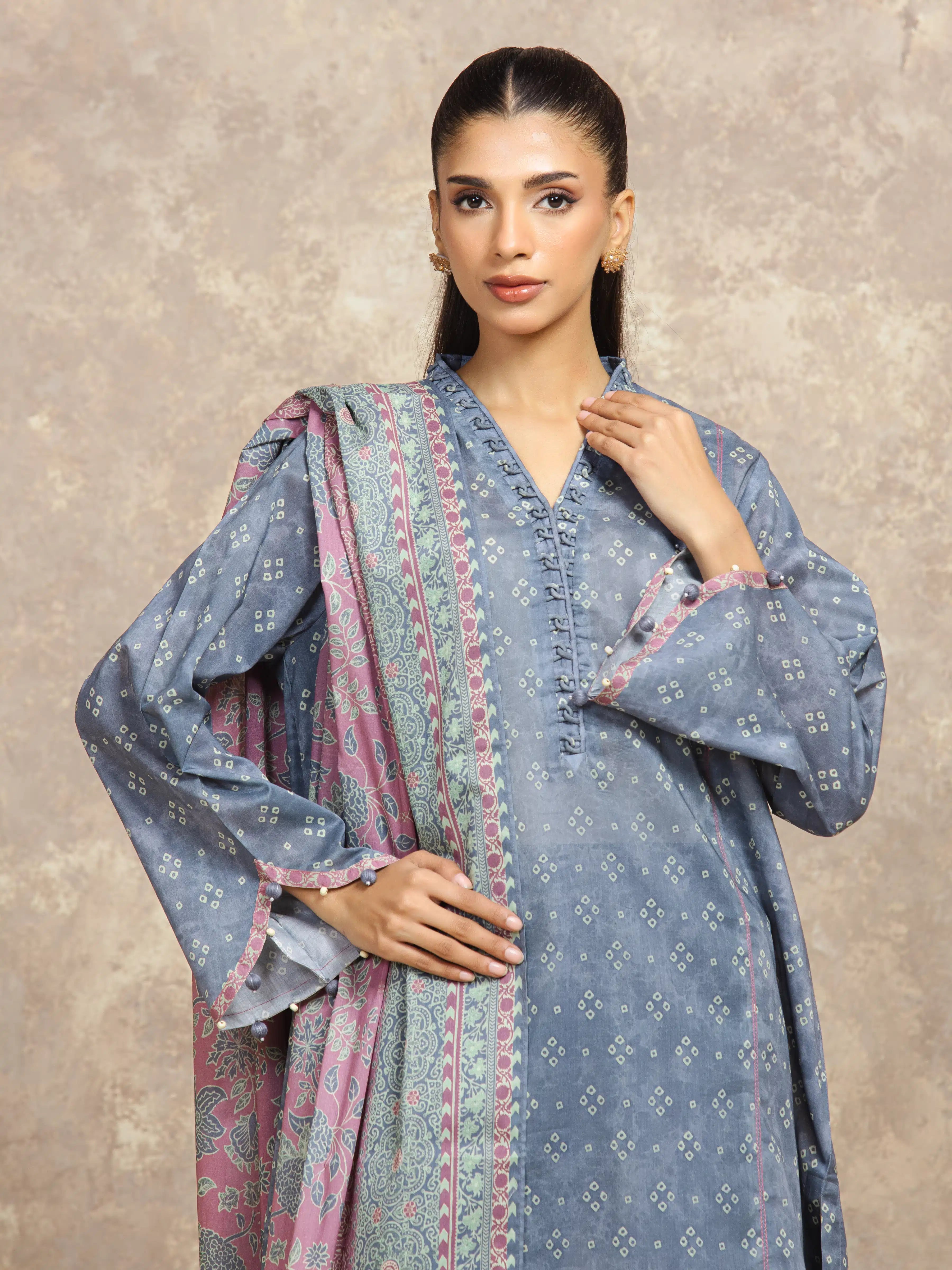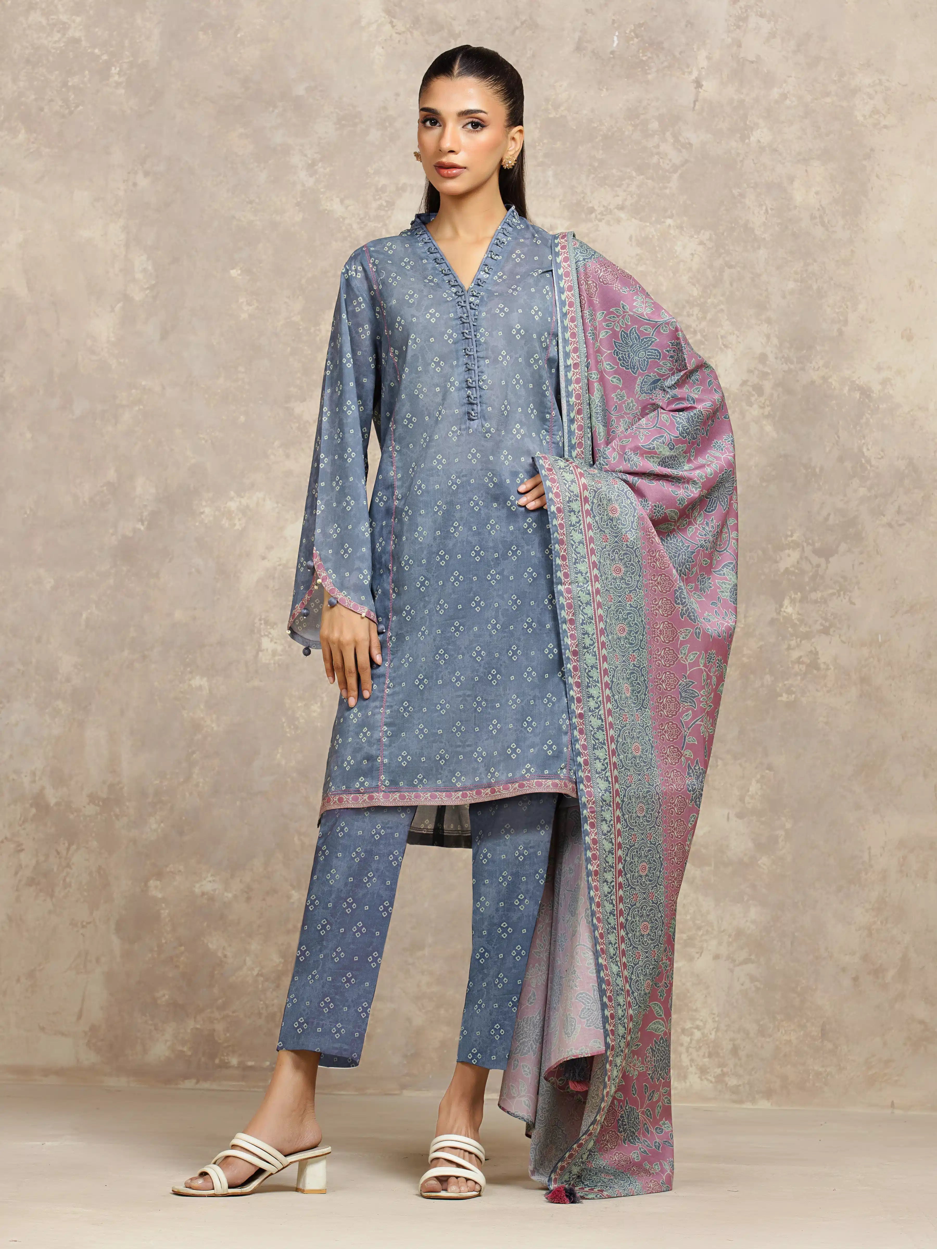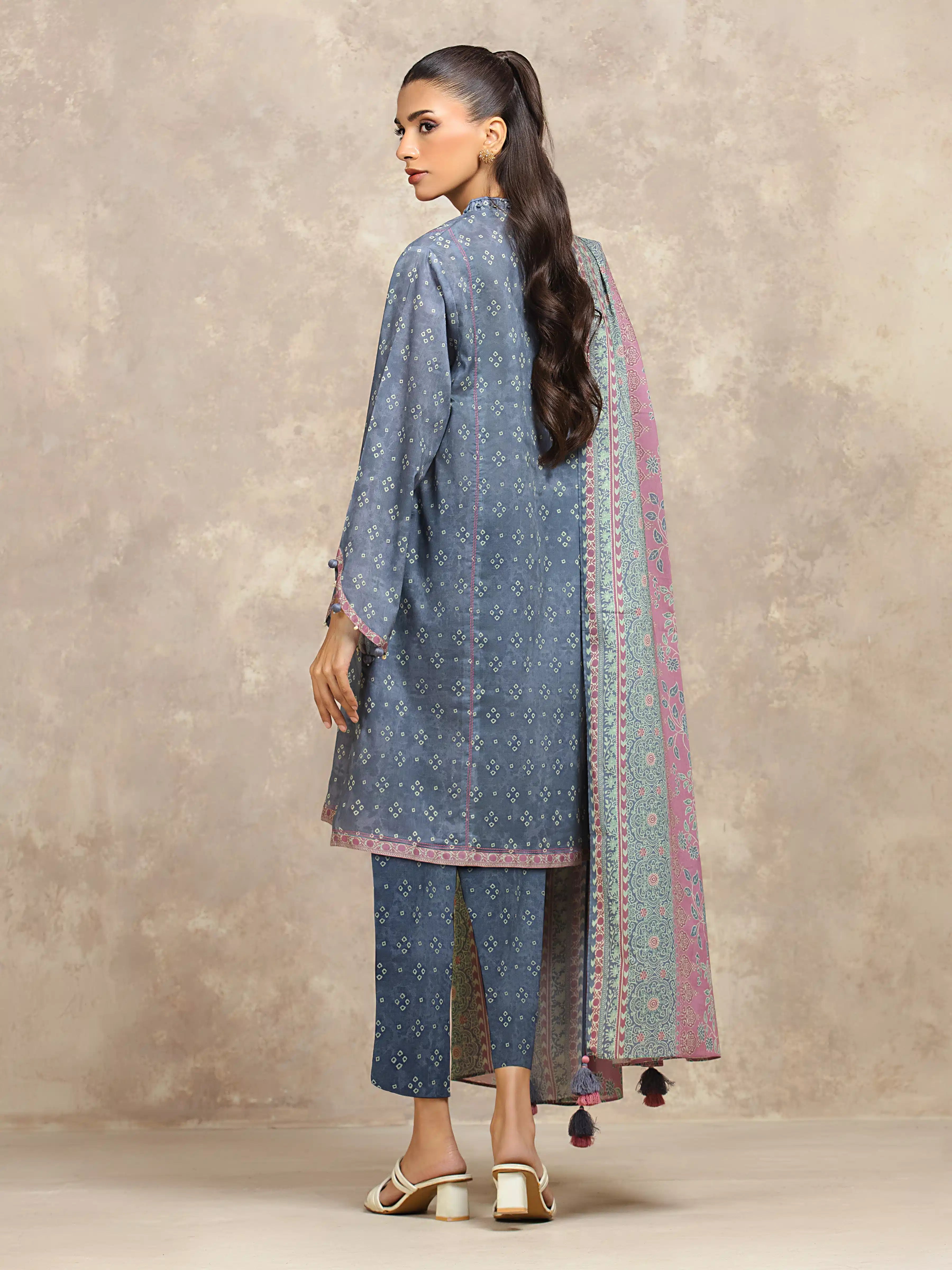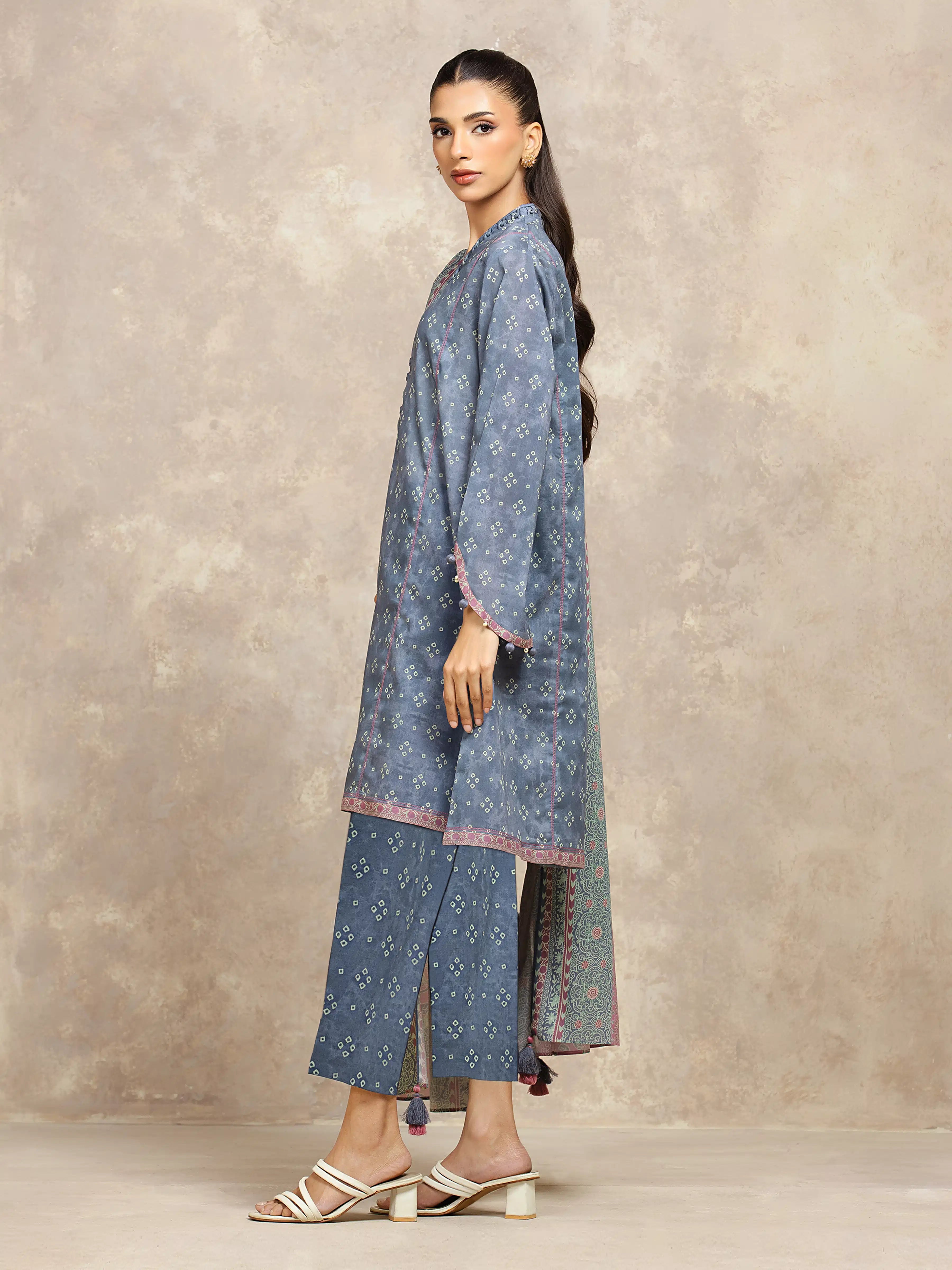 Unstitched Slate Blue Printed Khaddar 3 Piece