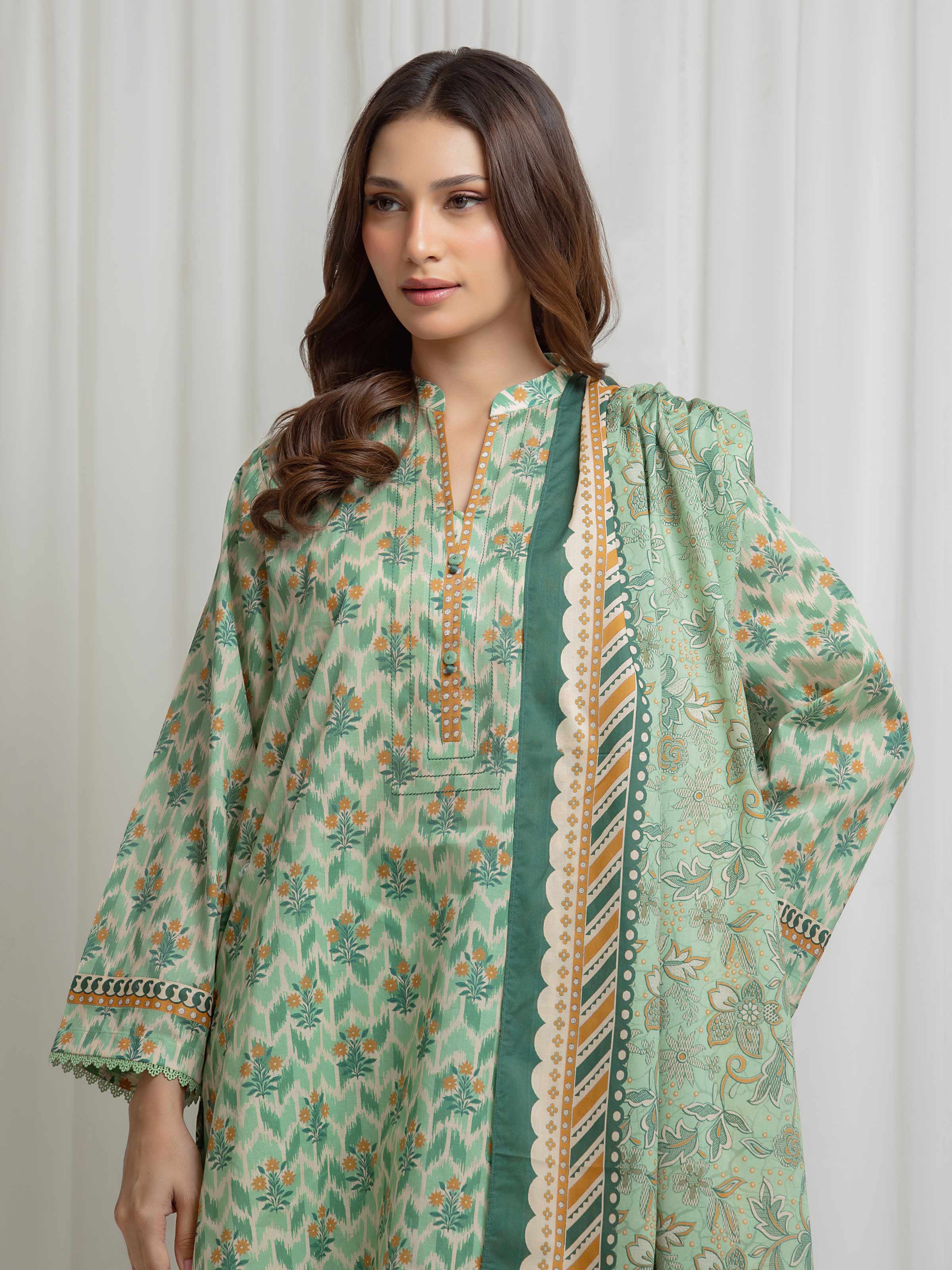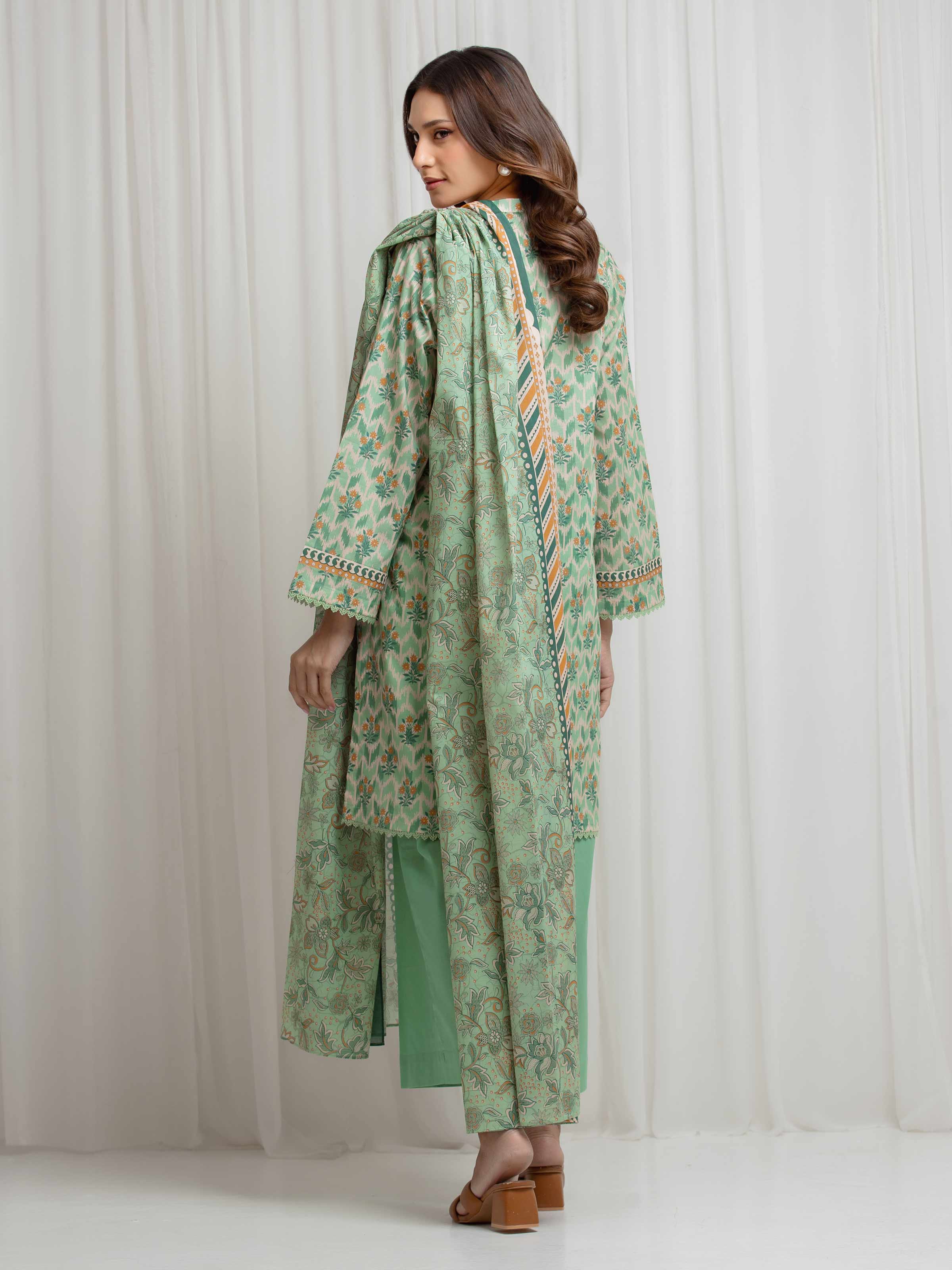 Unstitched Light Green Printed Lawn Suit