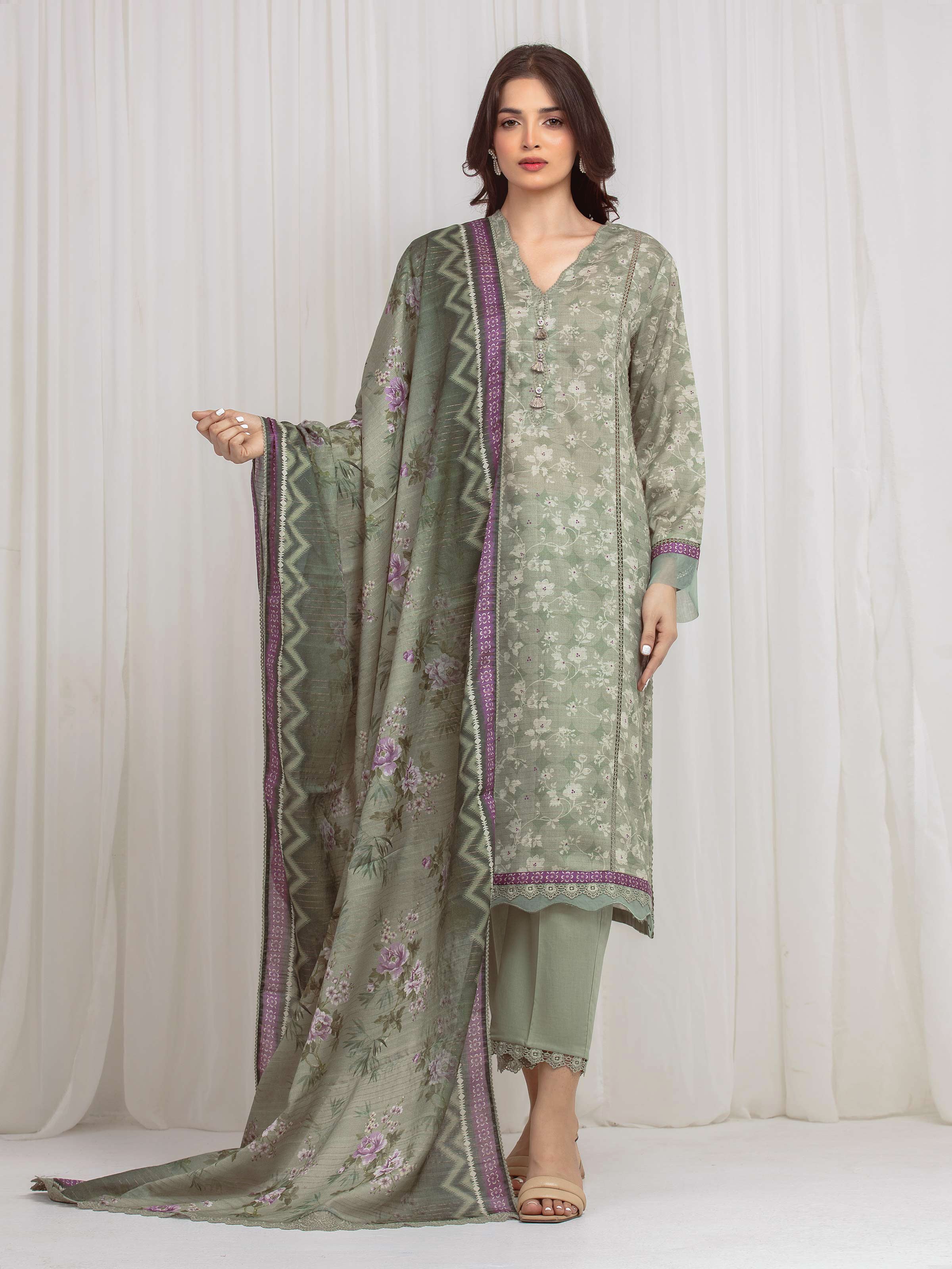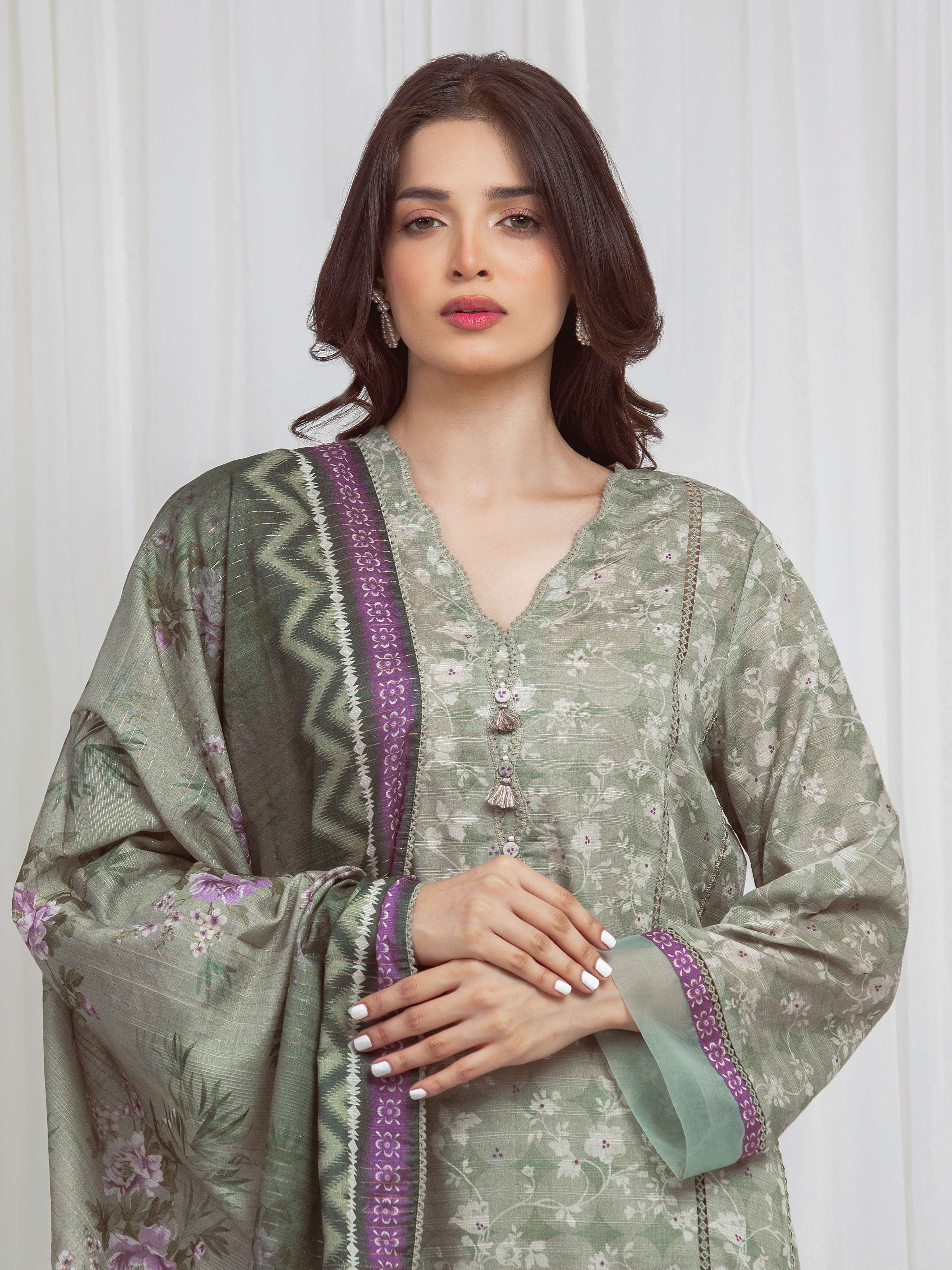 Unstitched Printed Zari Lawn Suit
