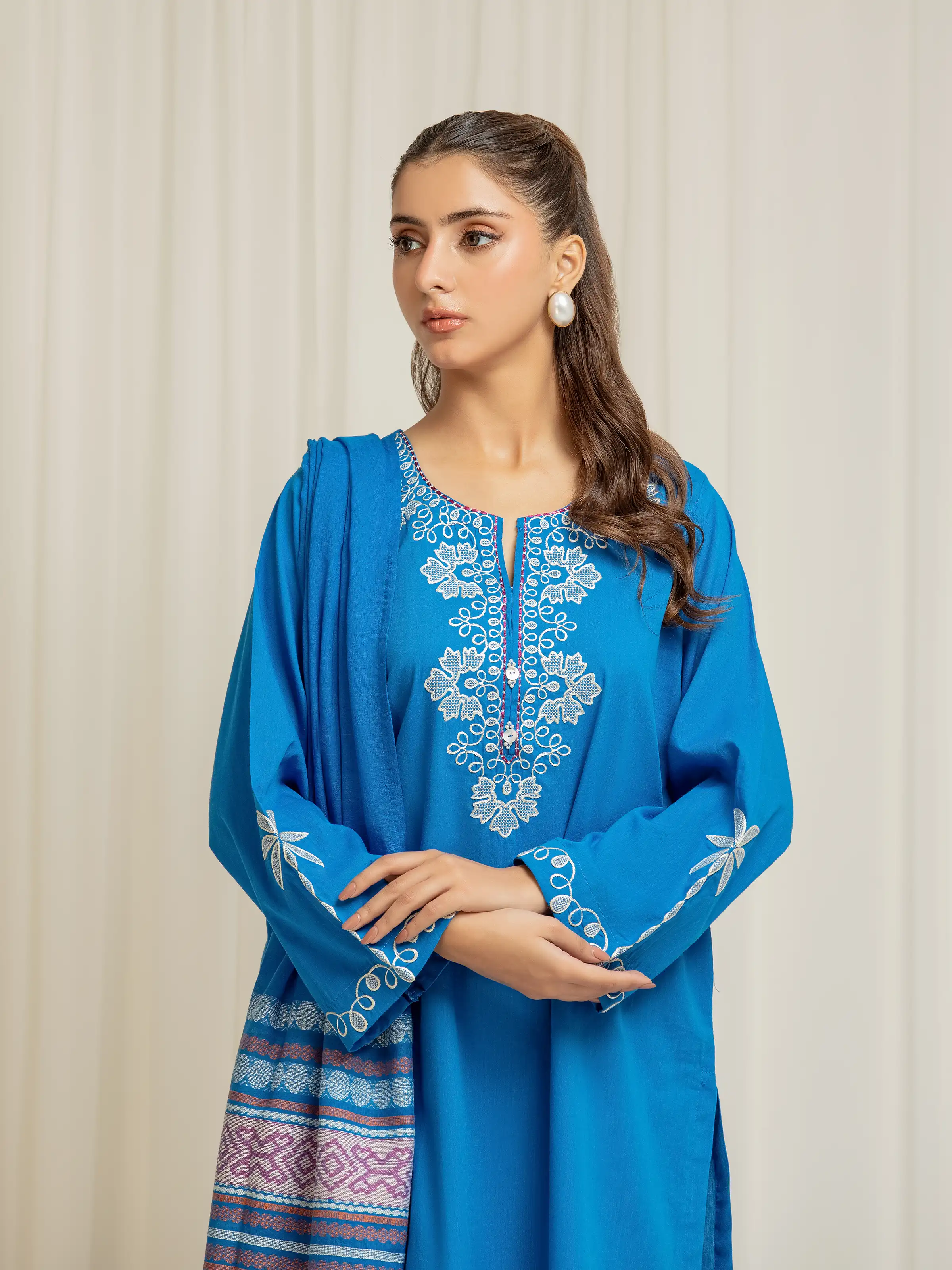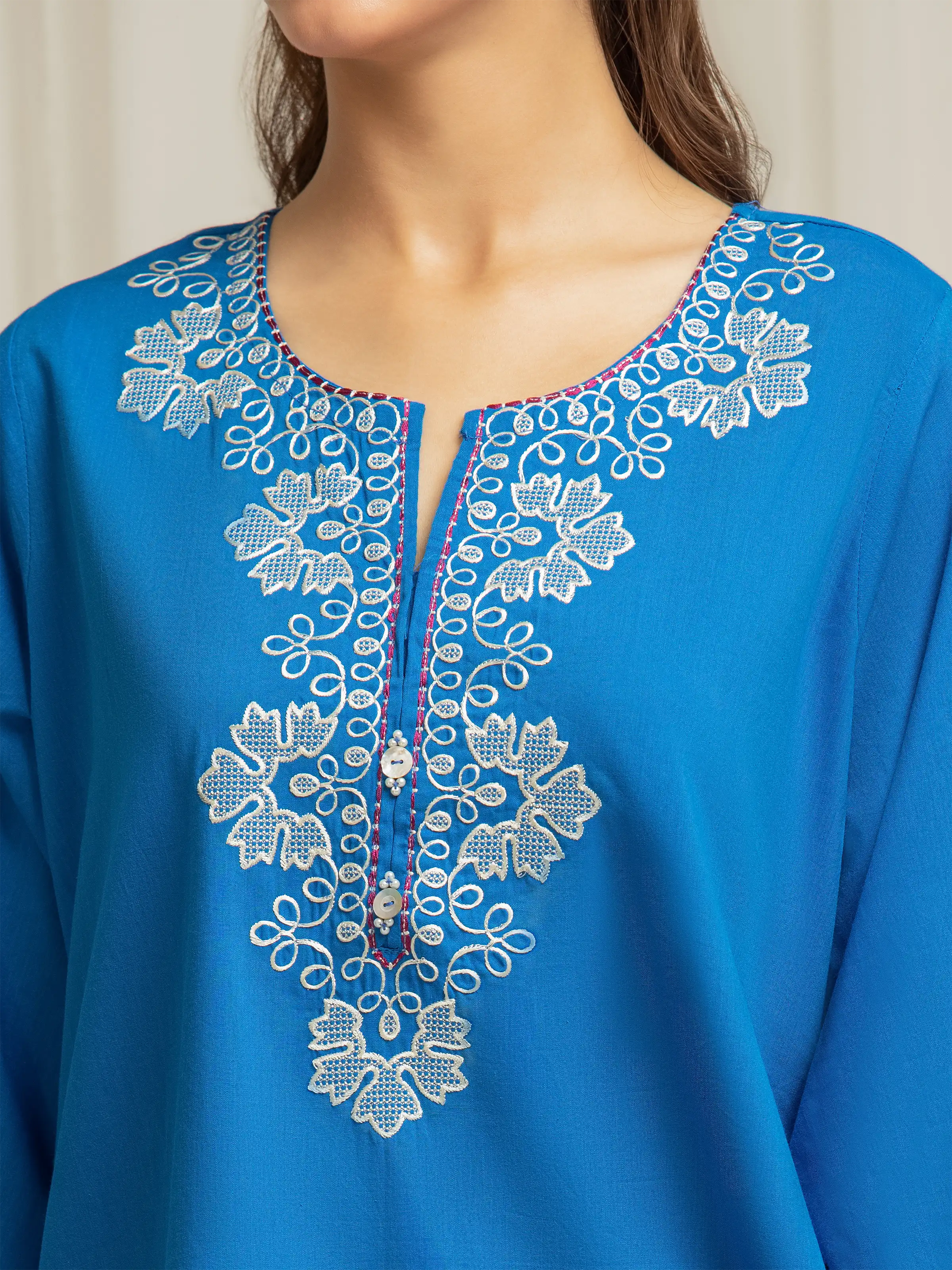Style: Embroidered Short Length Shirt with Embellished Placket