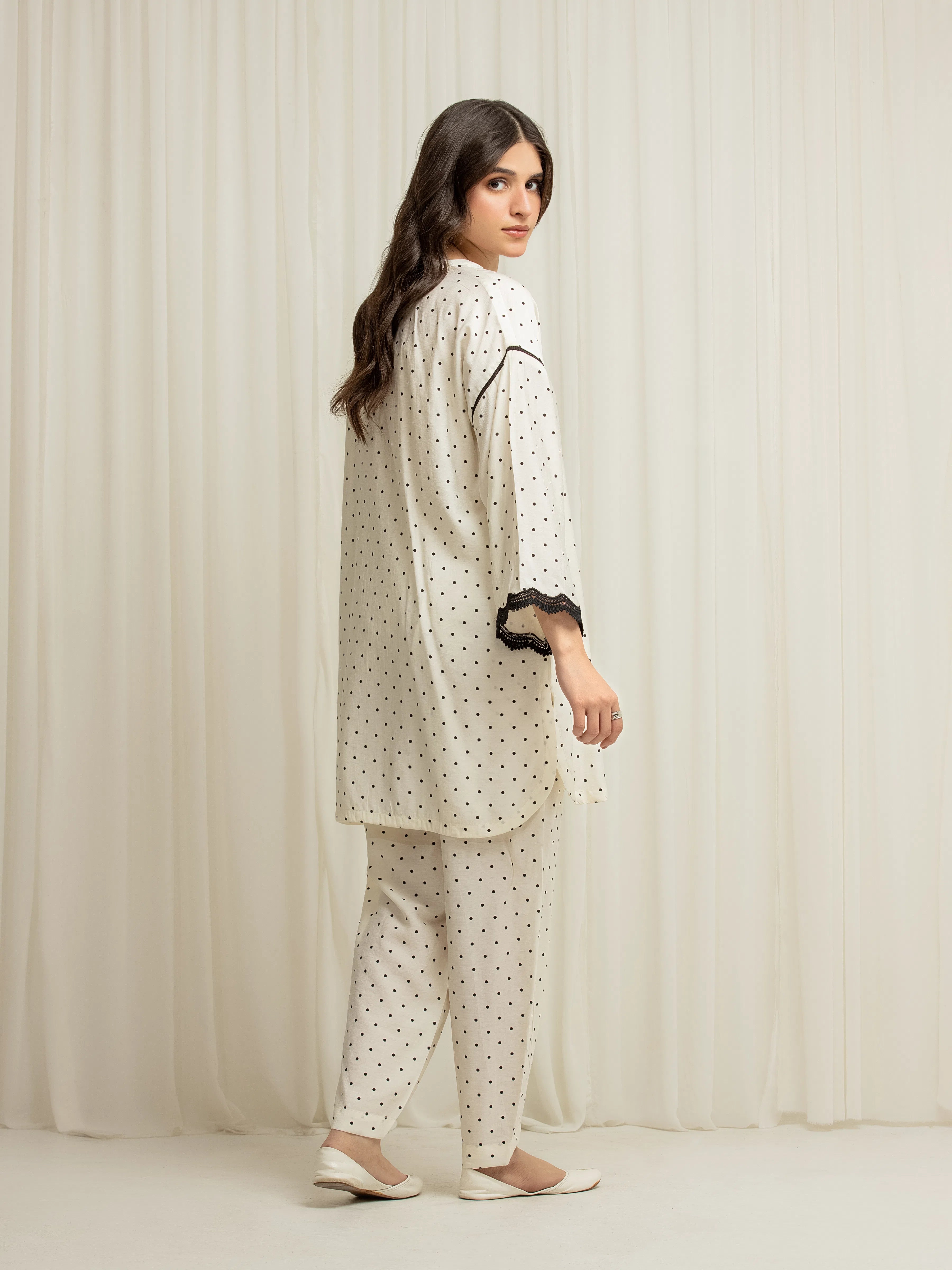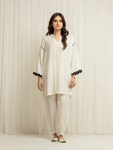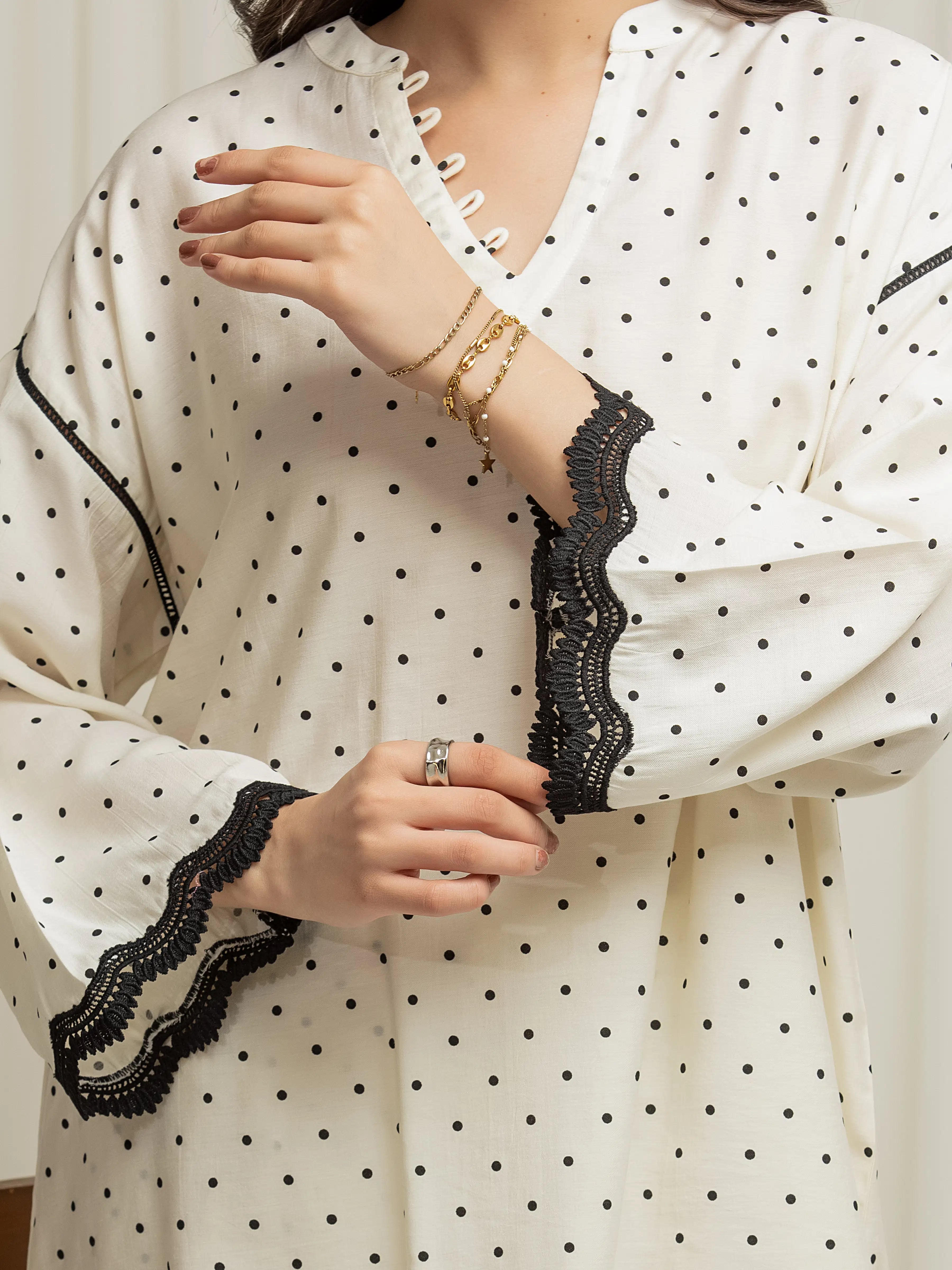 Style: Polka Dot Printed Shirt with Lace Detailing