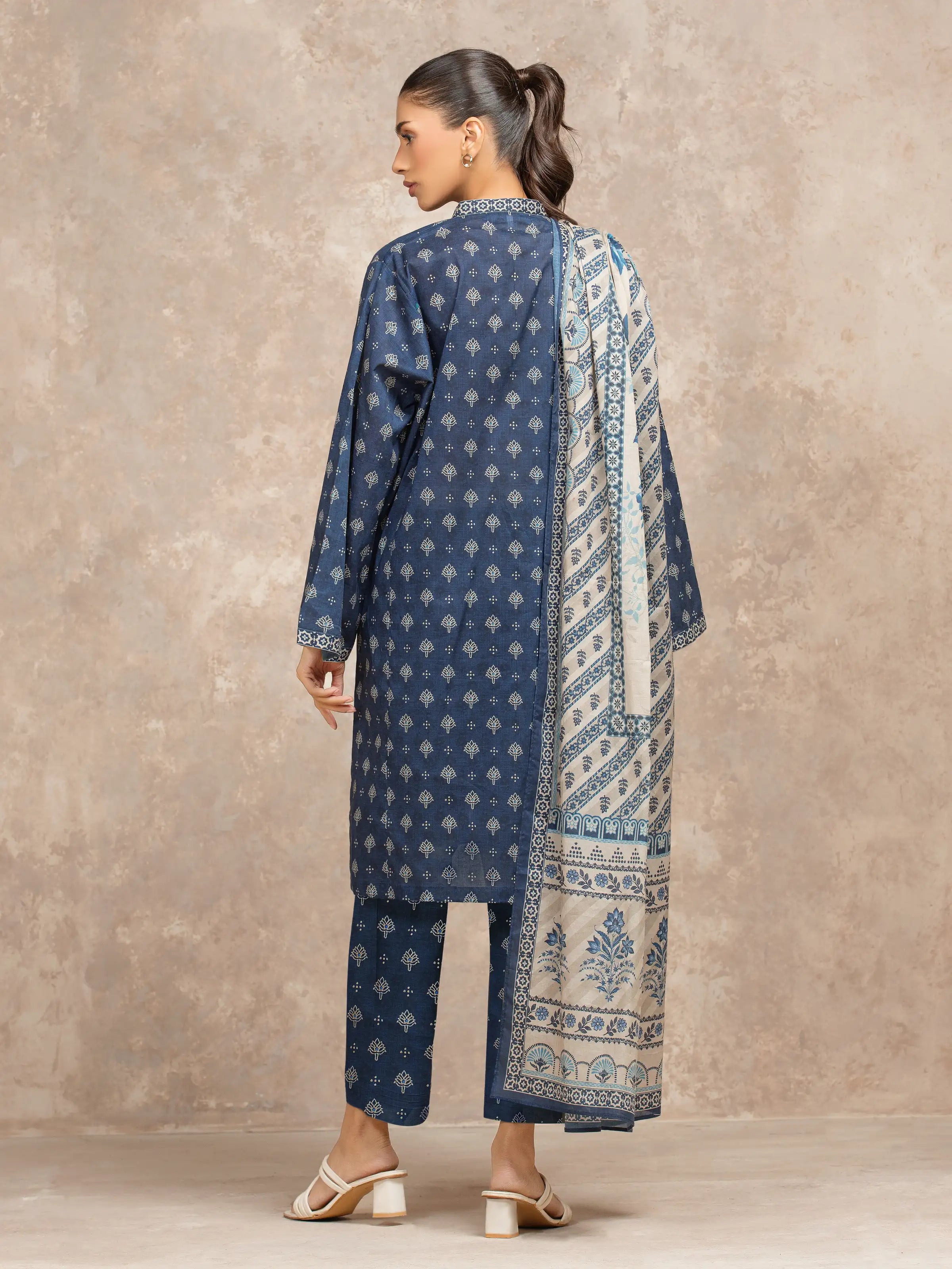 Unstitched Blue Printed Khaddar 3 Piece