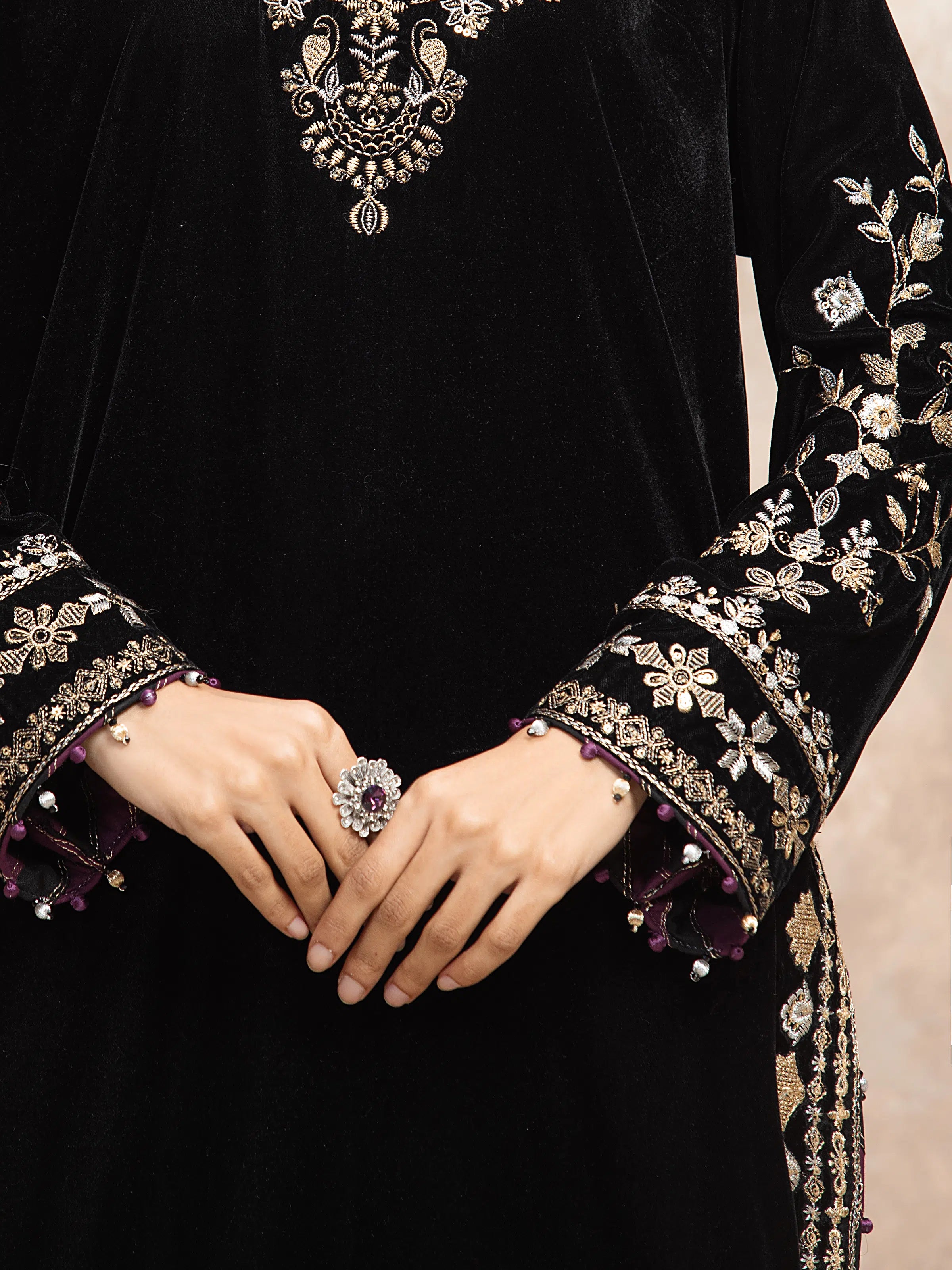 - Embroidered Velvet Sleeves | 0.65 Meter