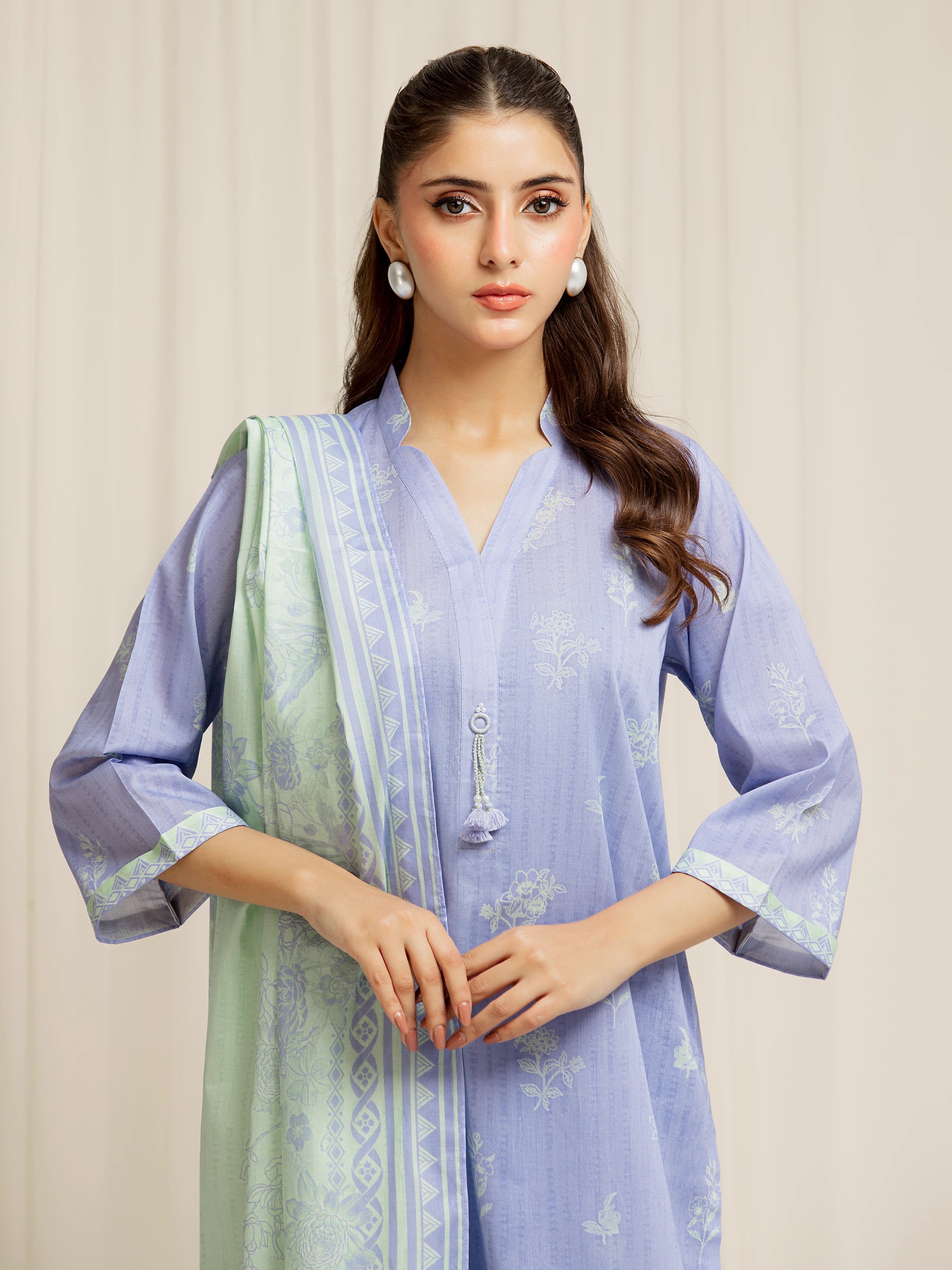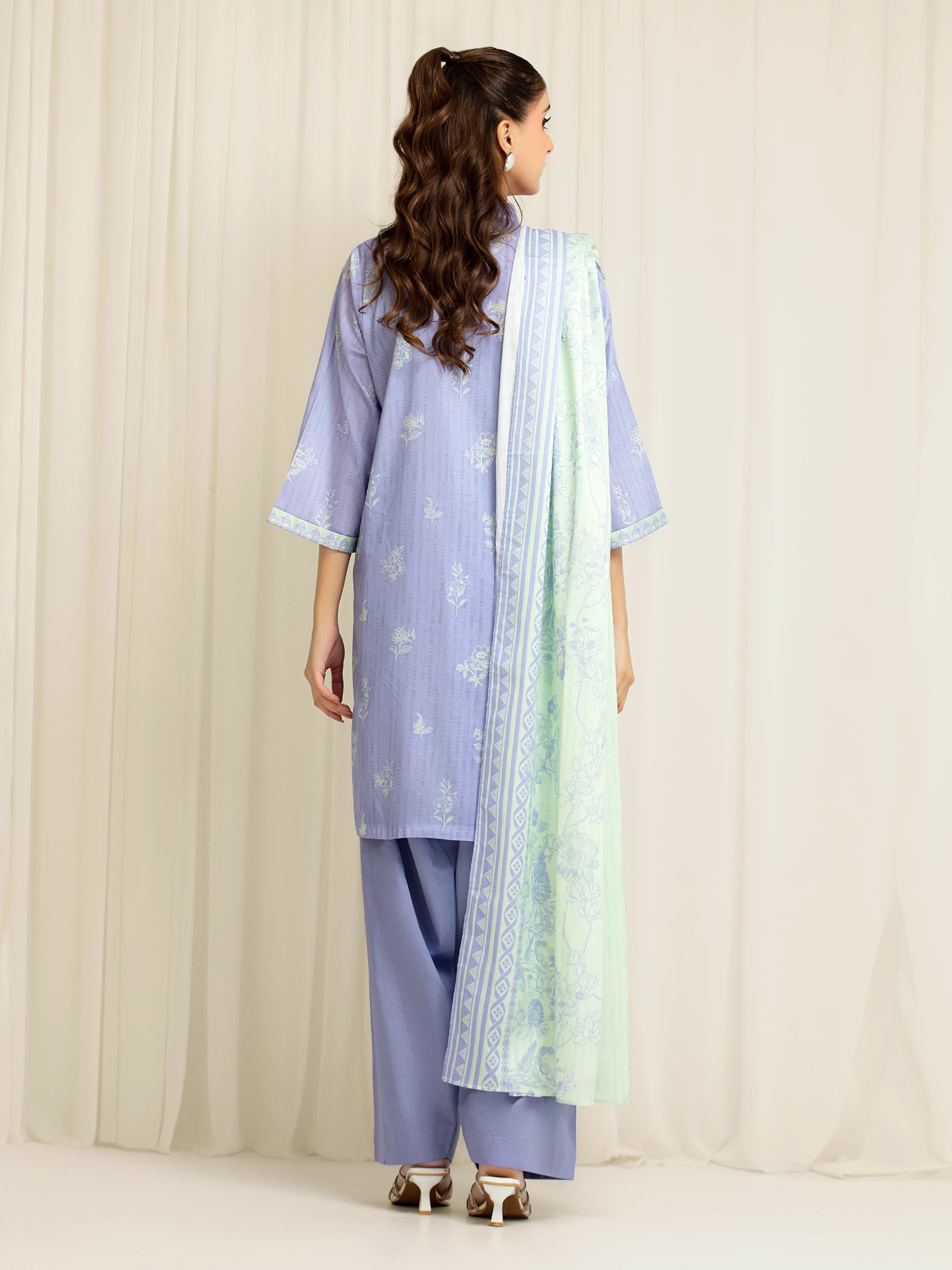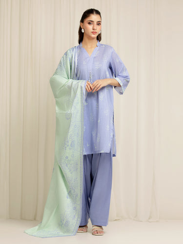Unstitched Lavender Blue Printed Lawn Suit