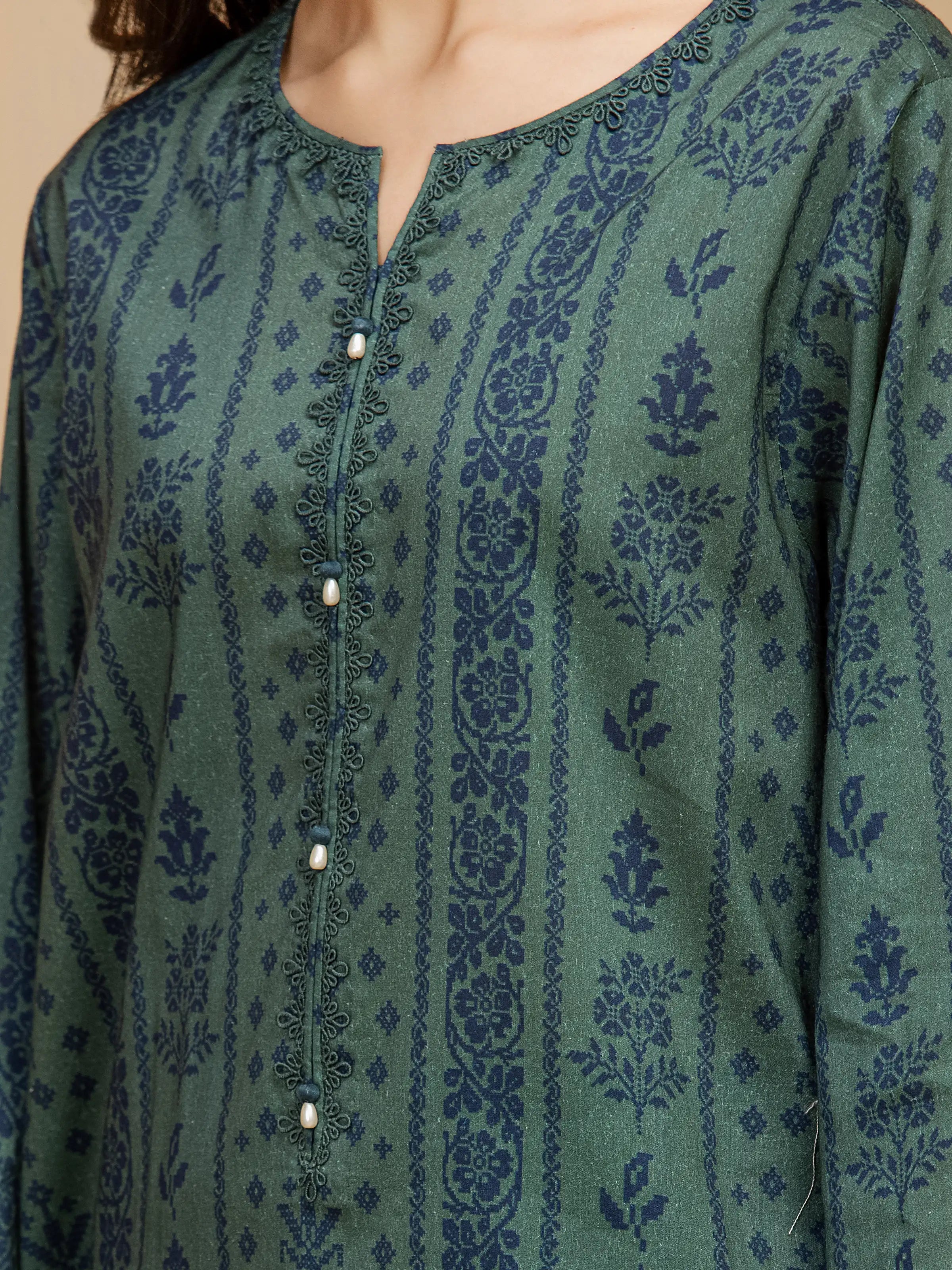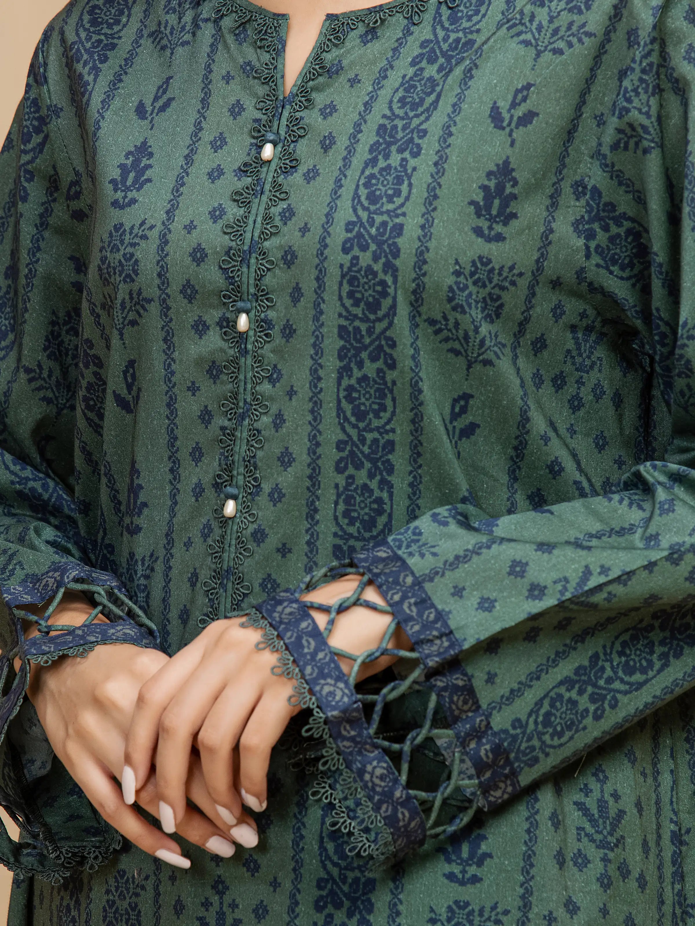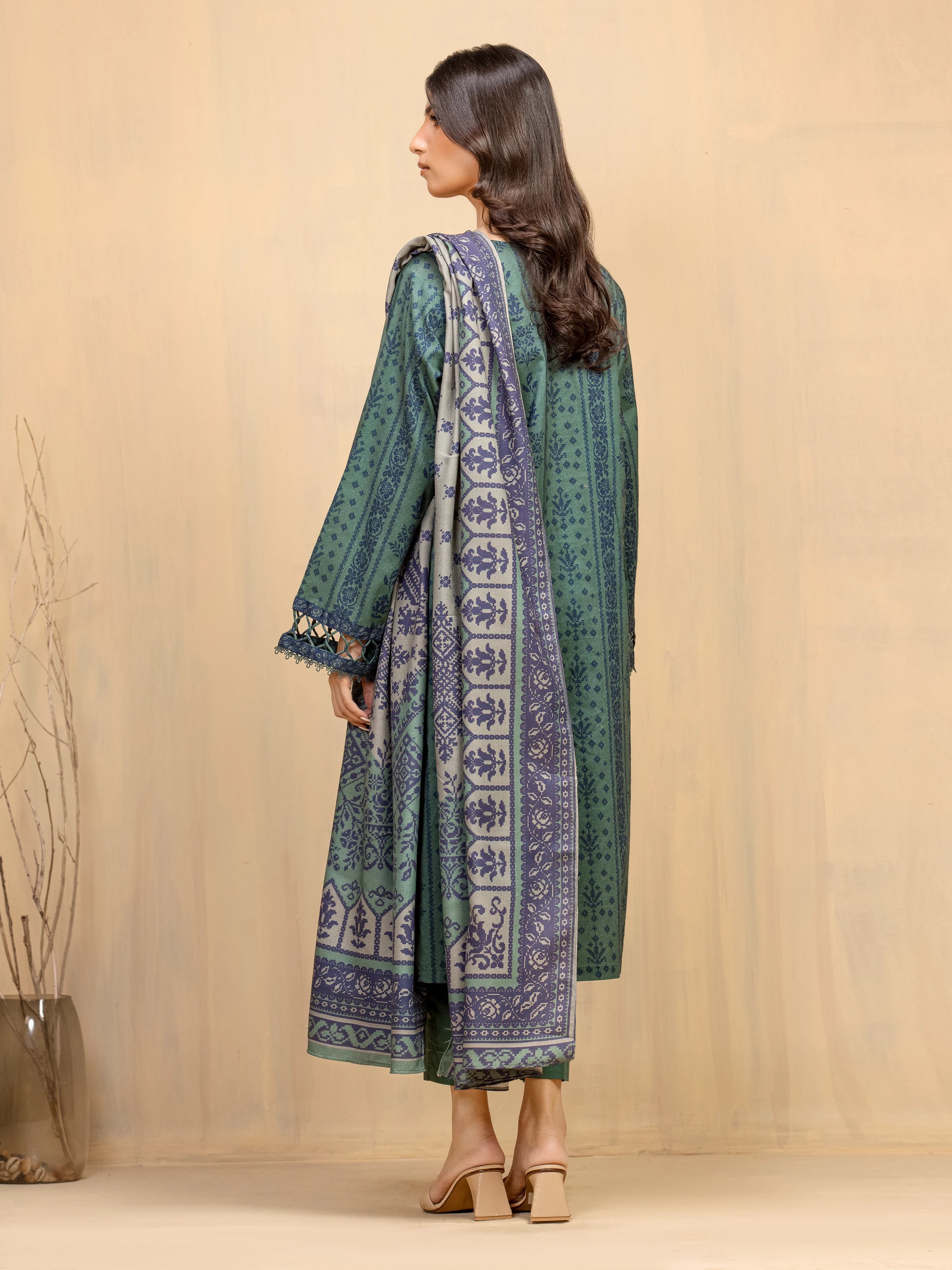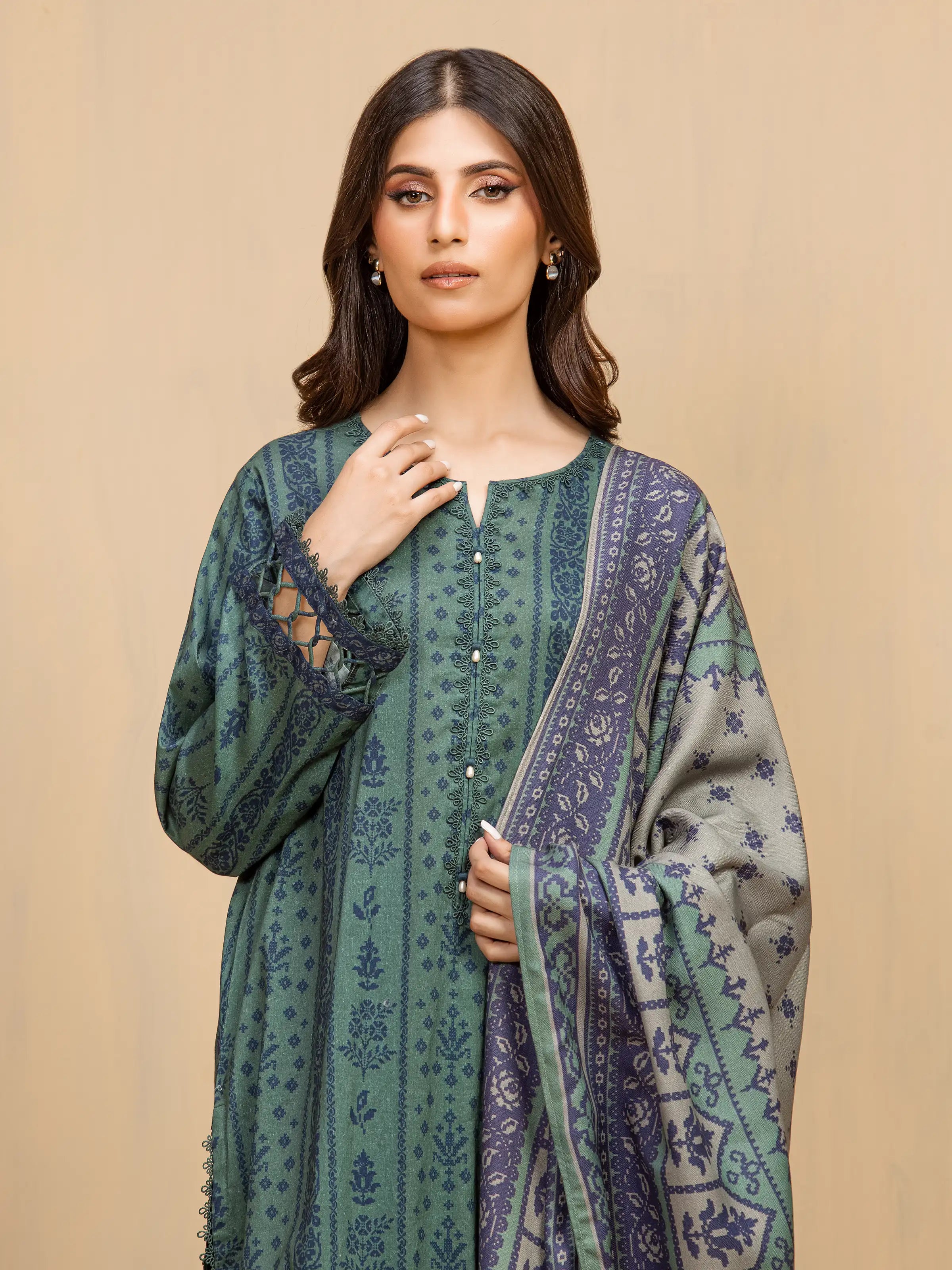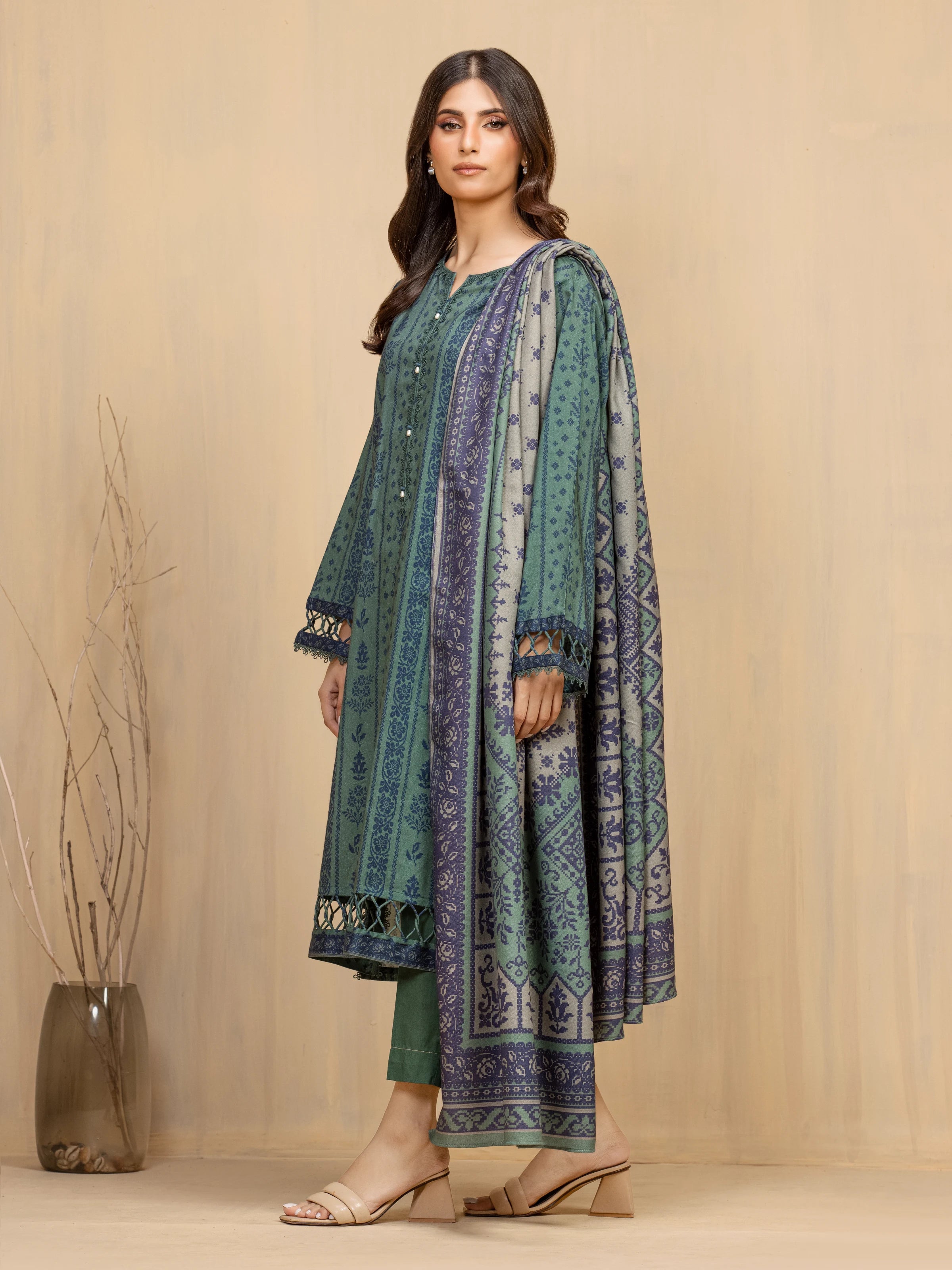 Unstitched Teal Green Printed Khaddar 3 Piece