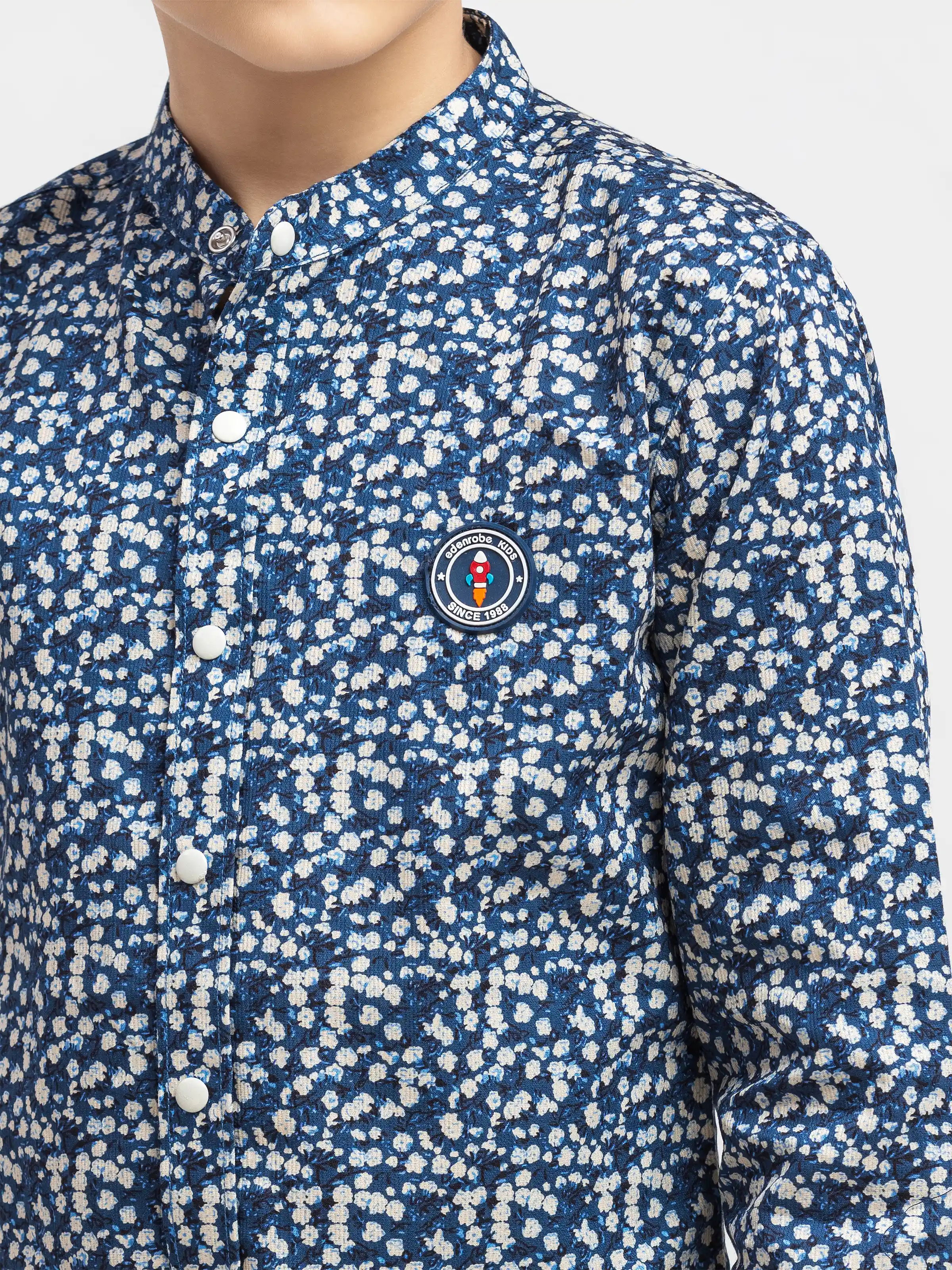 • Style: Floral Printed Shirt with Stitched Rubber Patch on Front