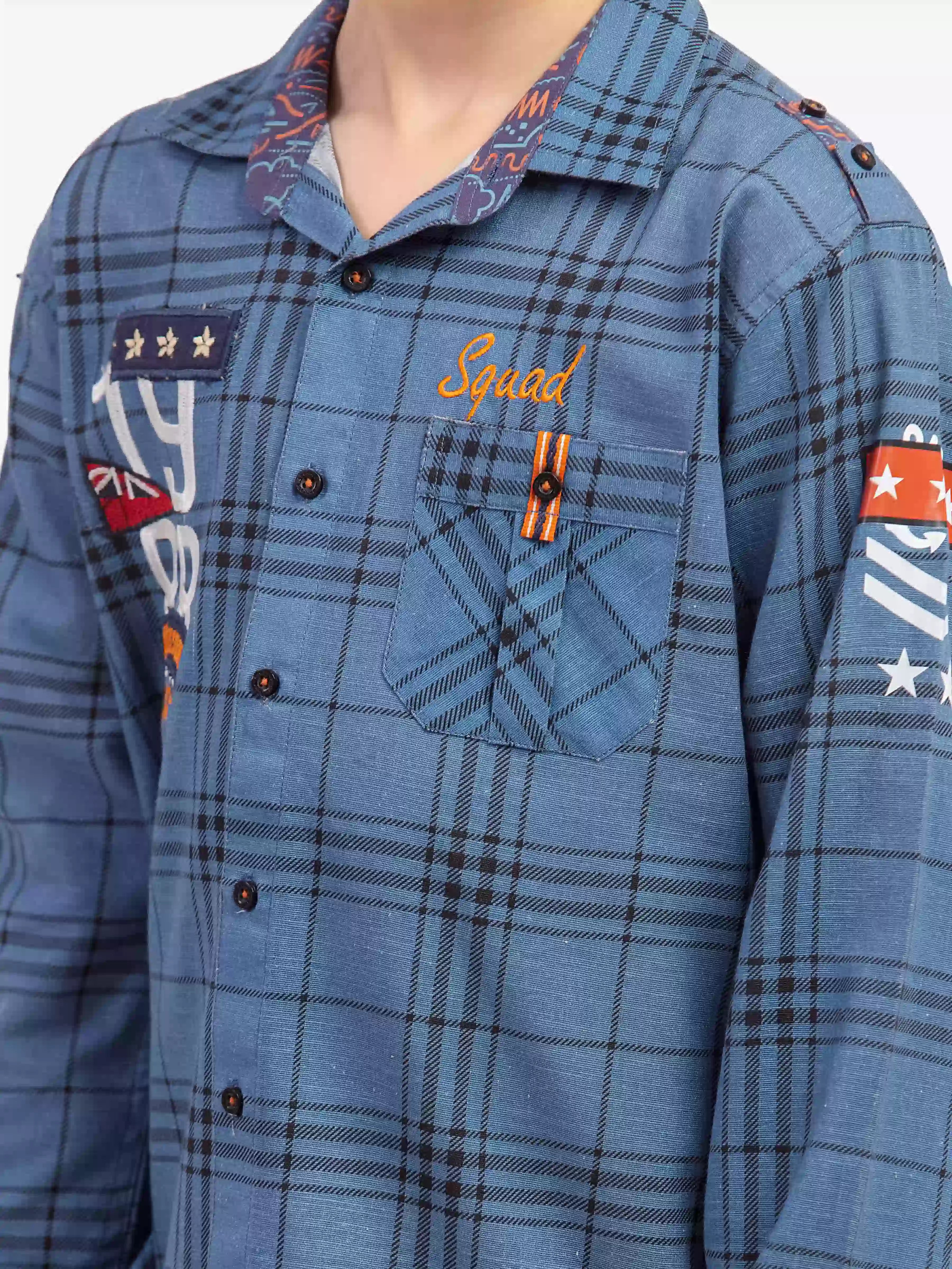 - Style: Check Shirt with Embroidery on Front & Pocket on Chest
