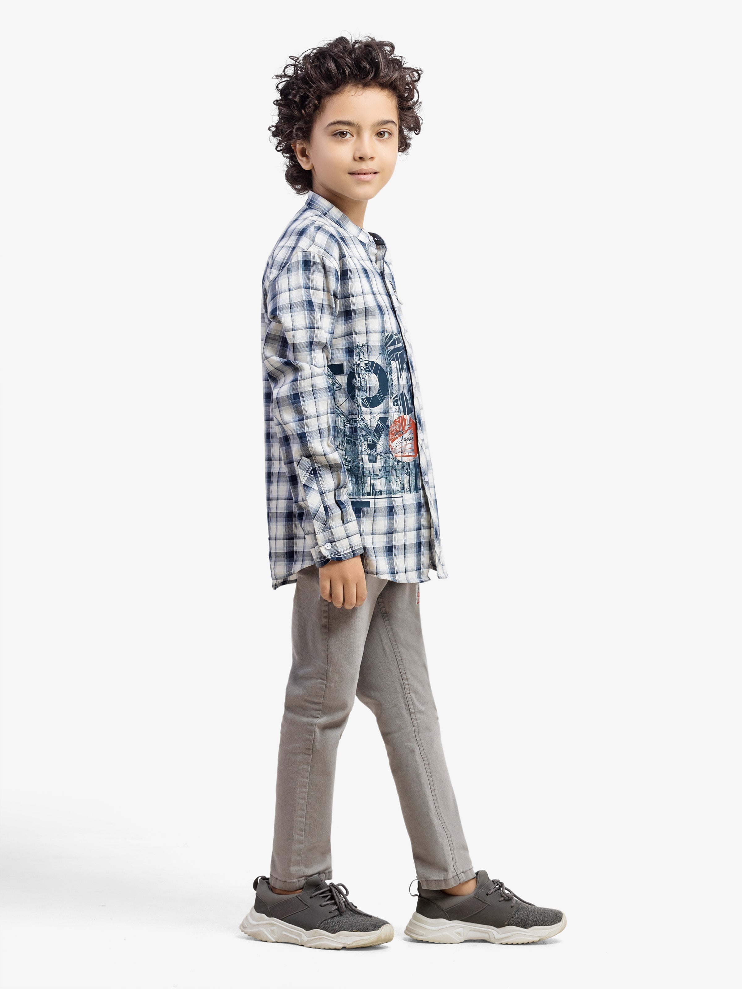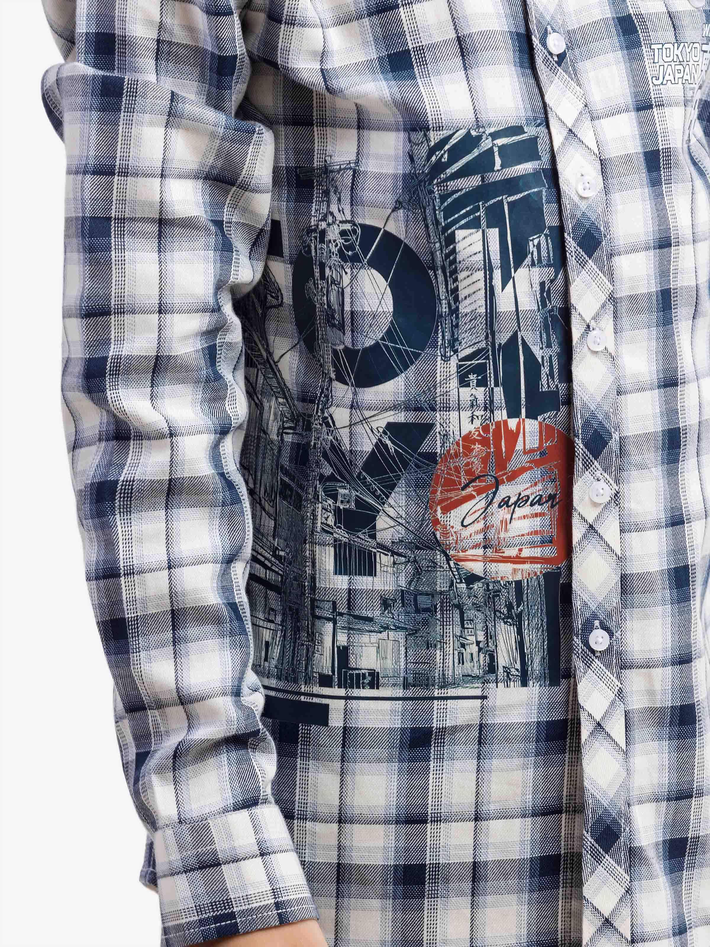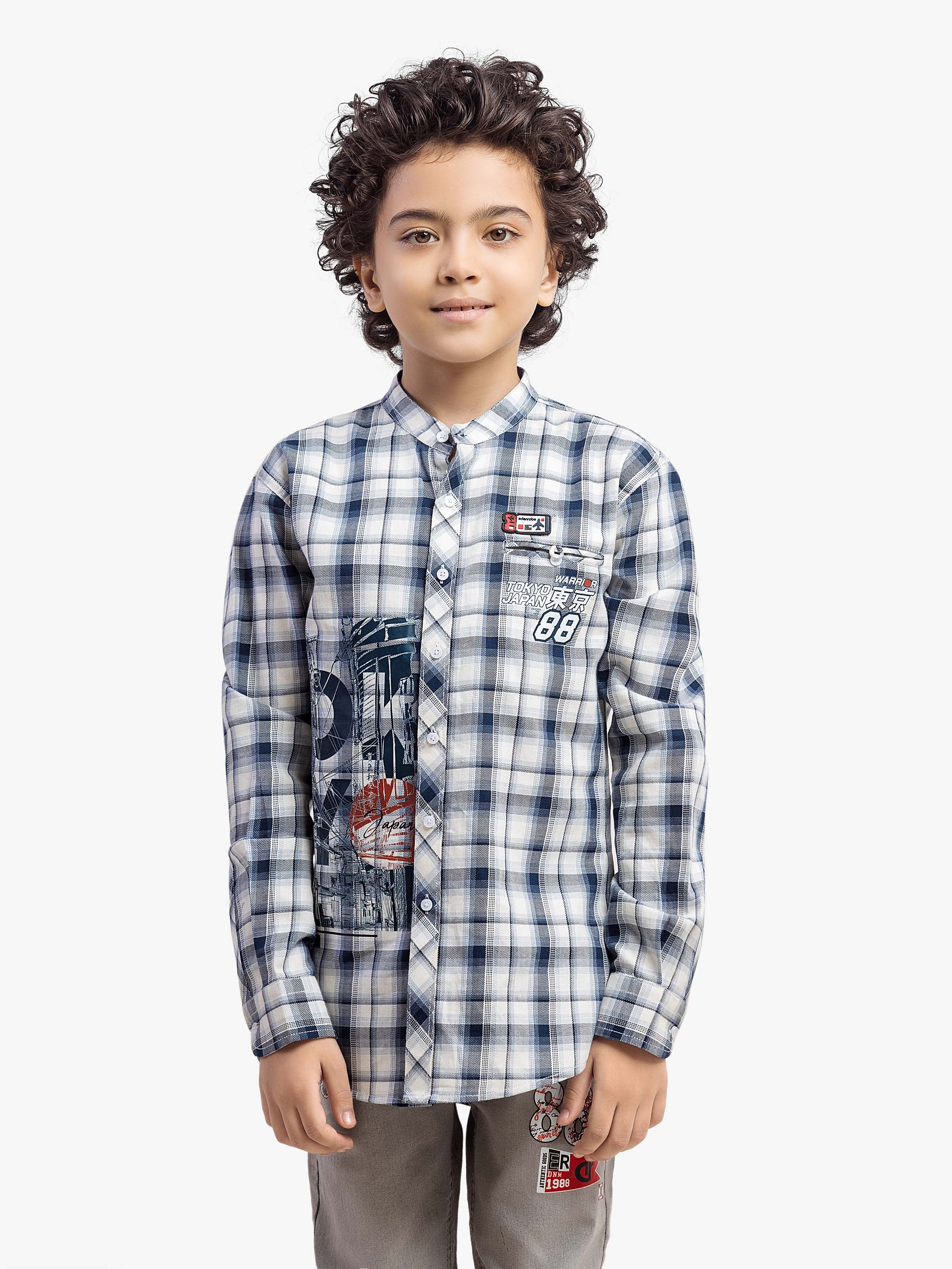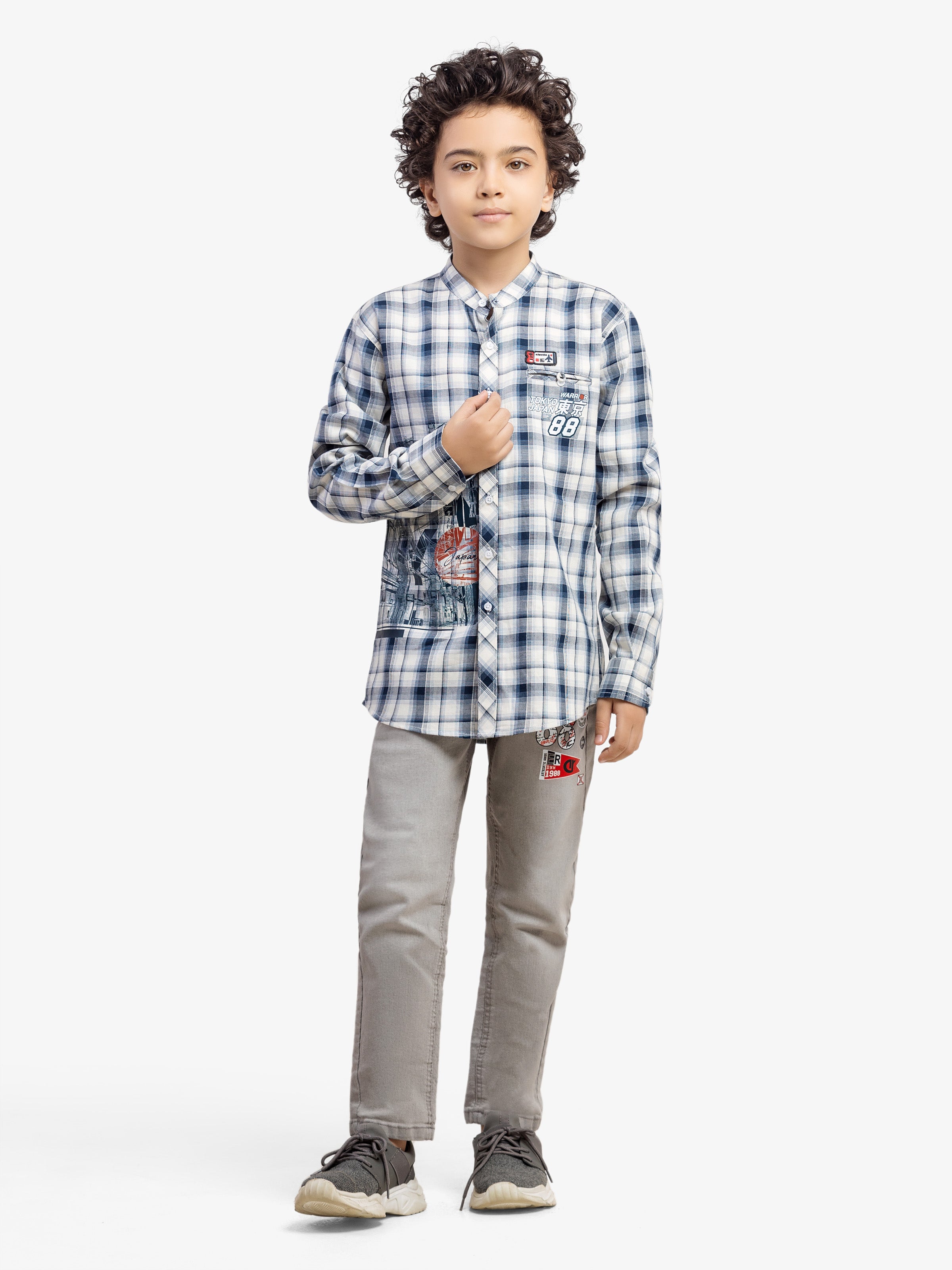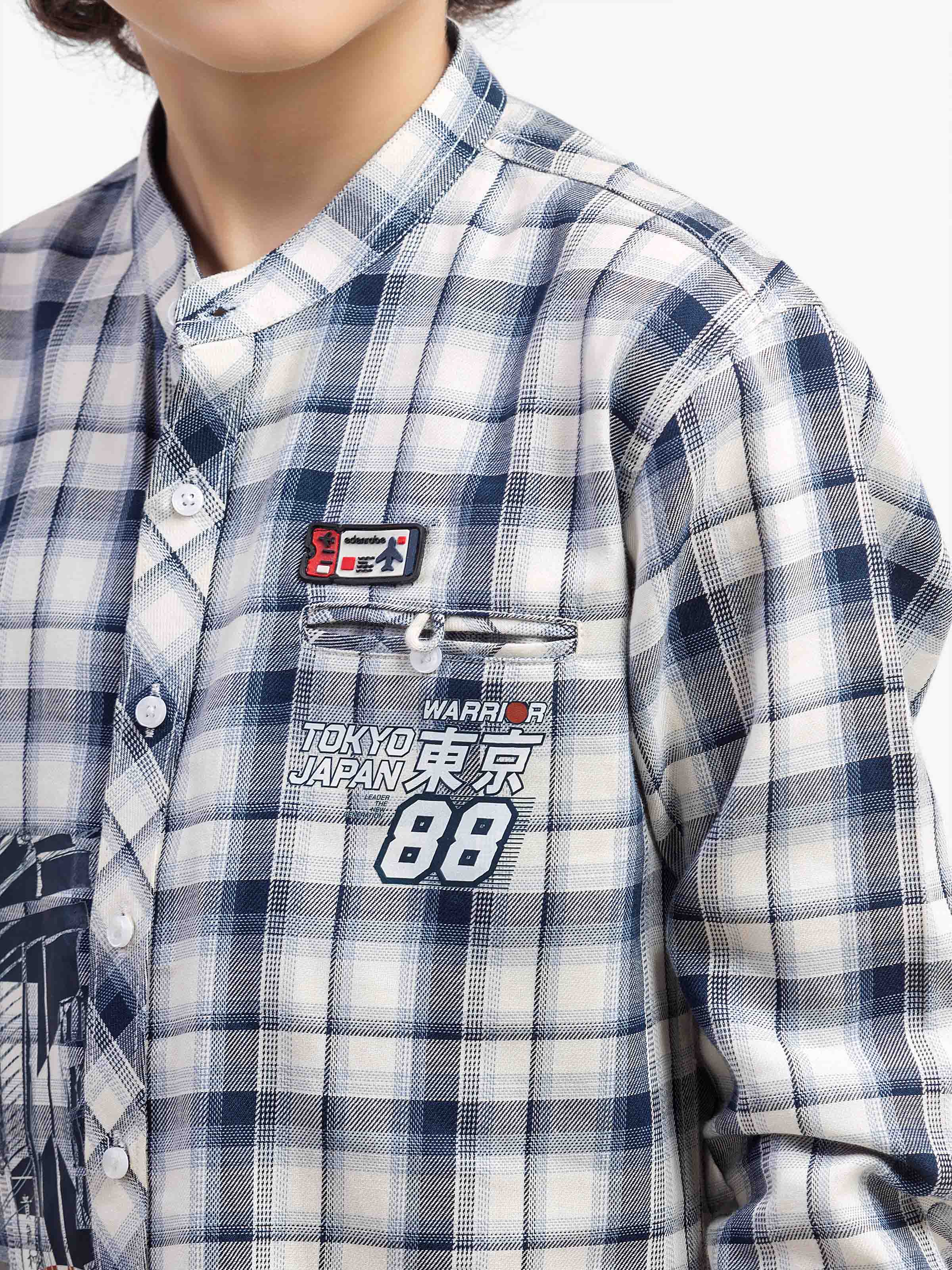 - Style: Check Shirt with Printed Front and Pocket & Patch on Chest