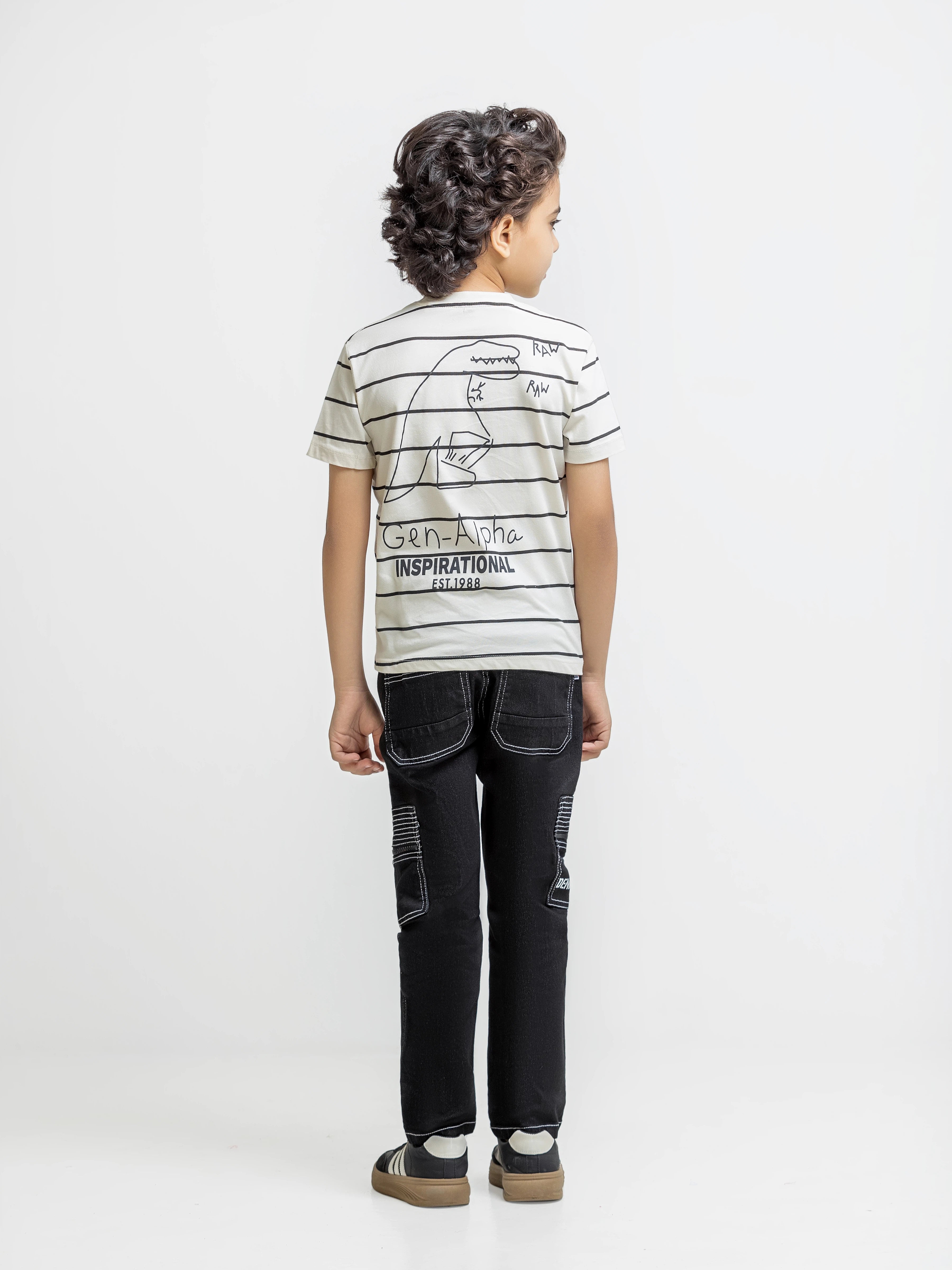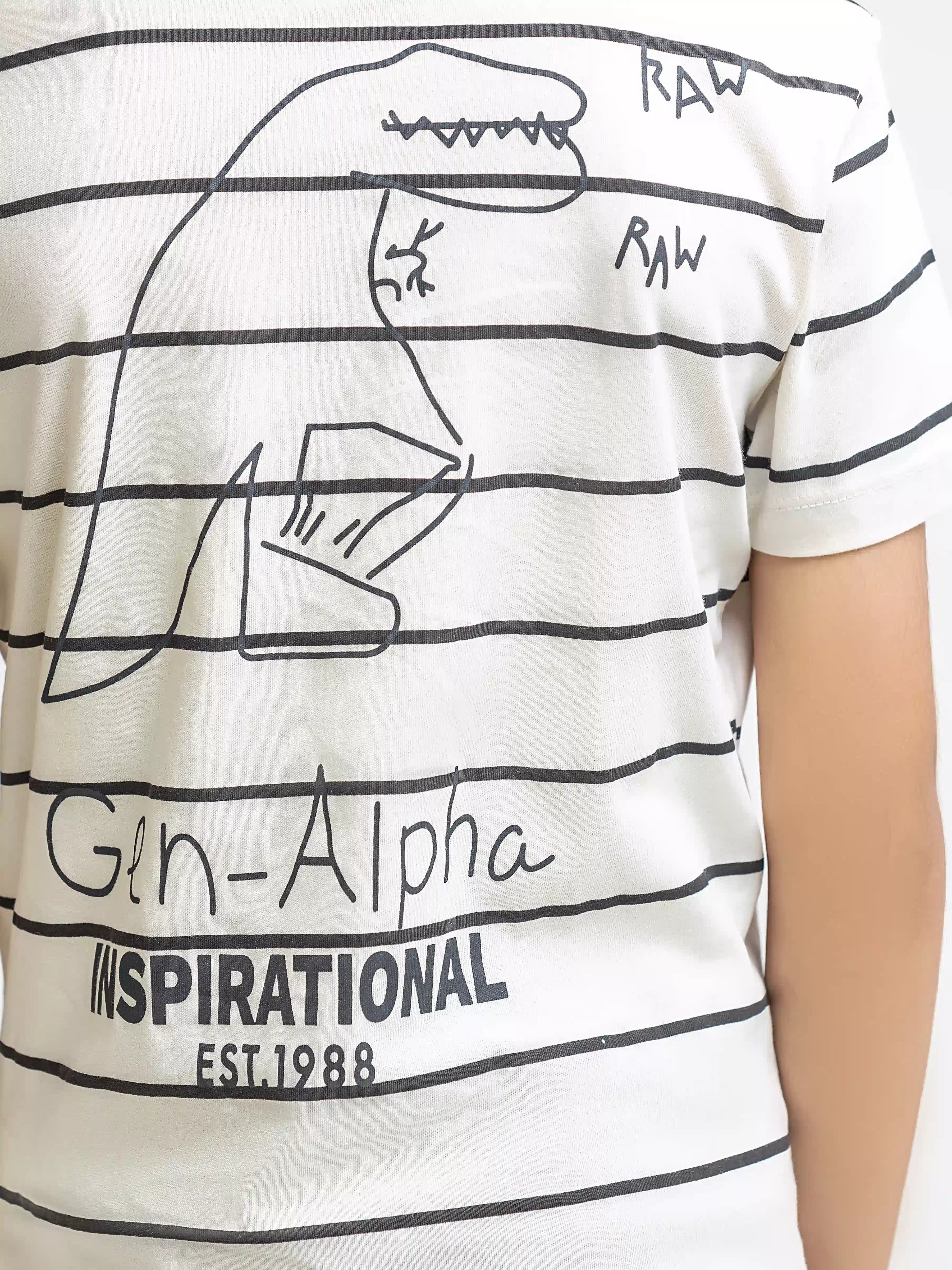 - Style: Stripped T-shirt with Printed Front