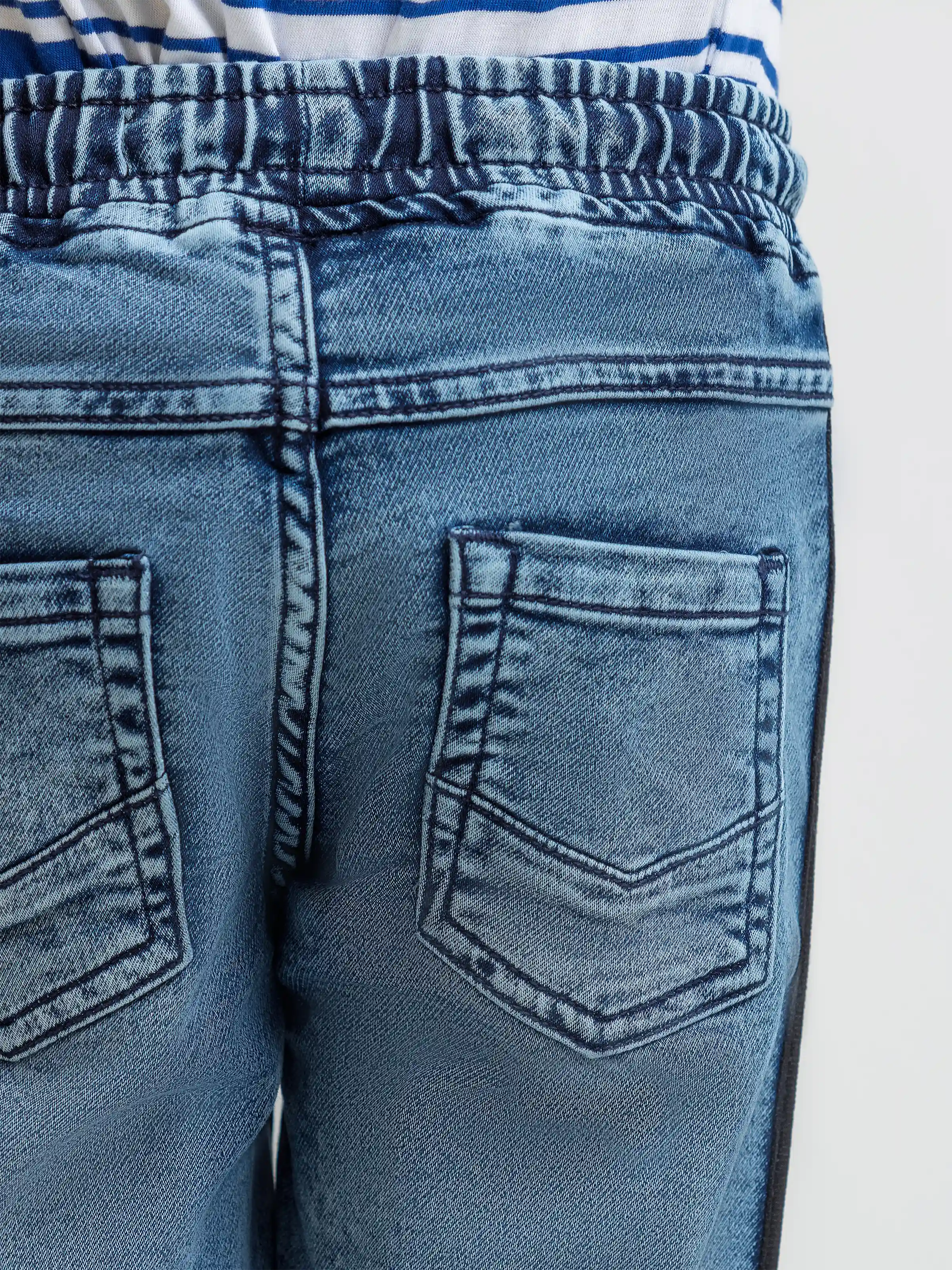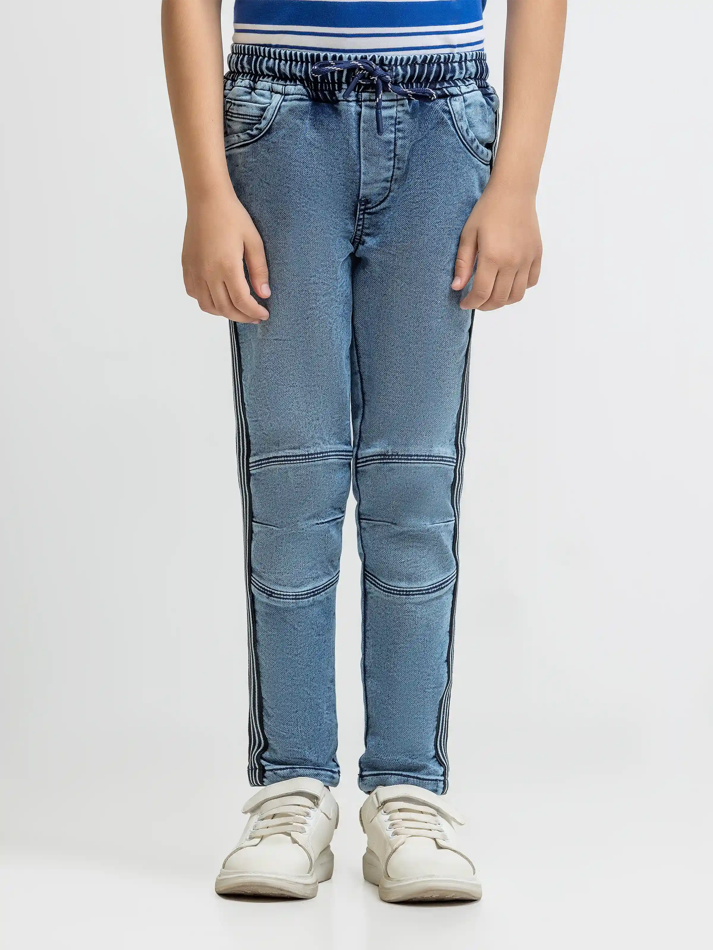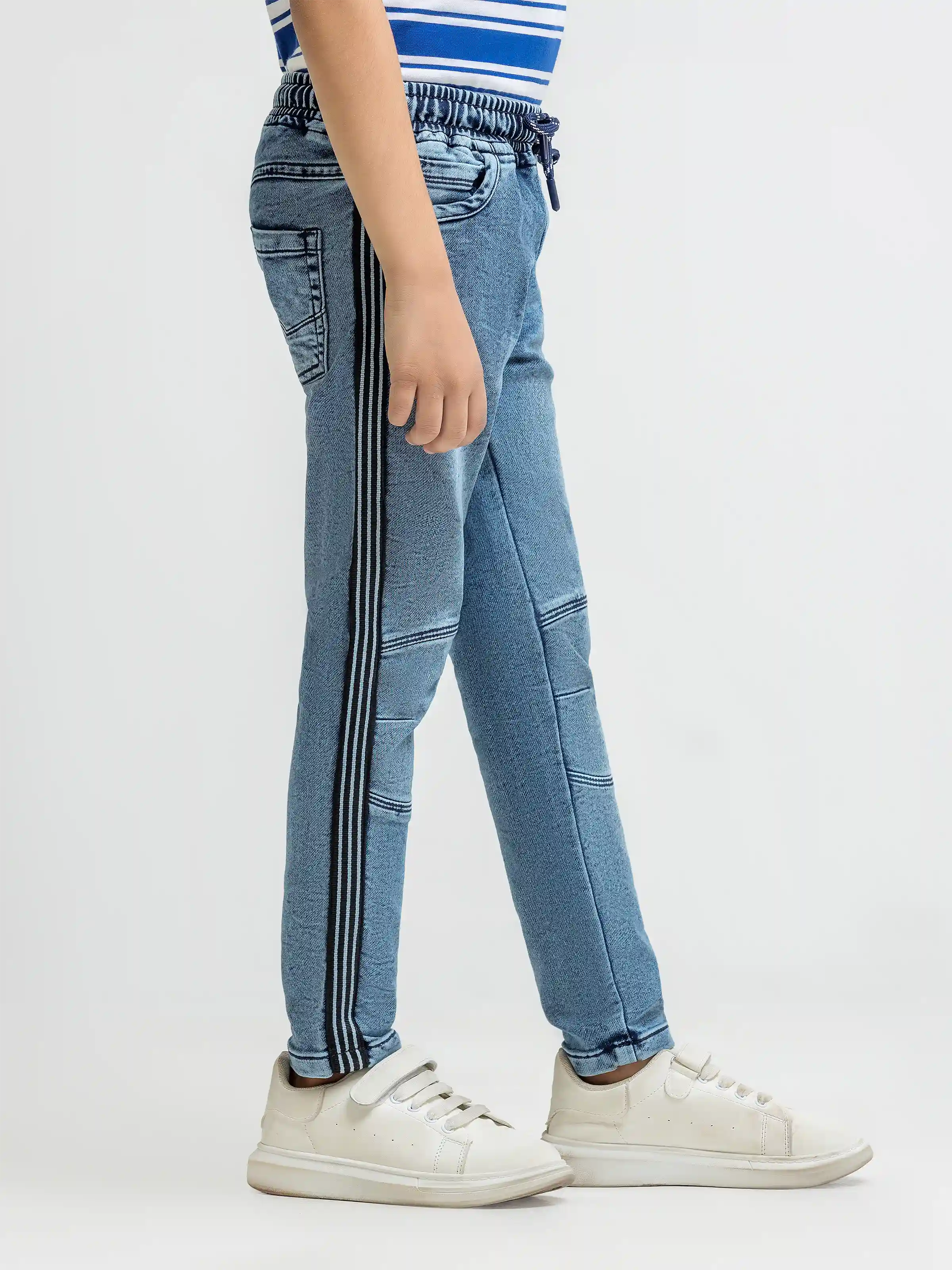 - Style: Plain Jeans Pant with Stitched Stripes on Sides