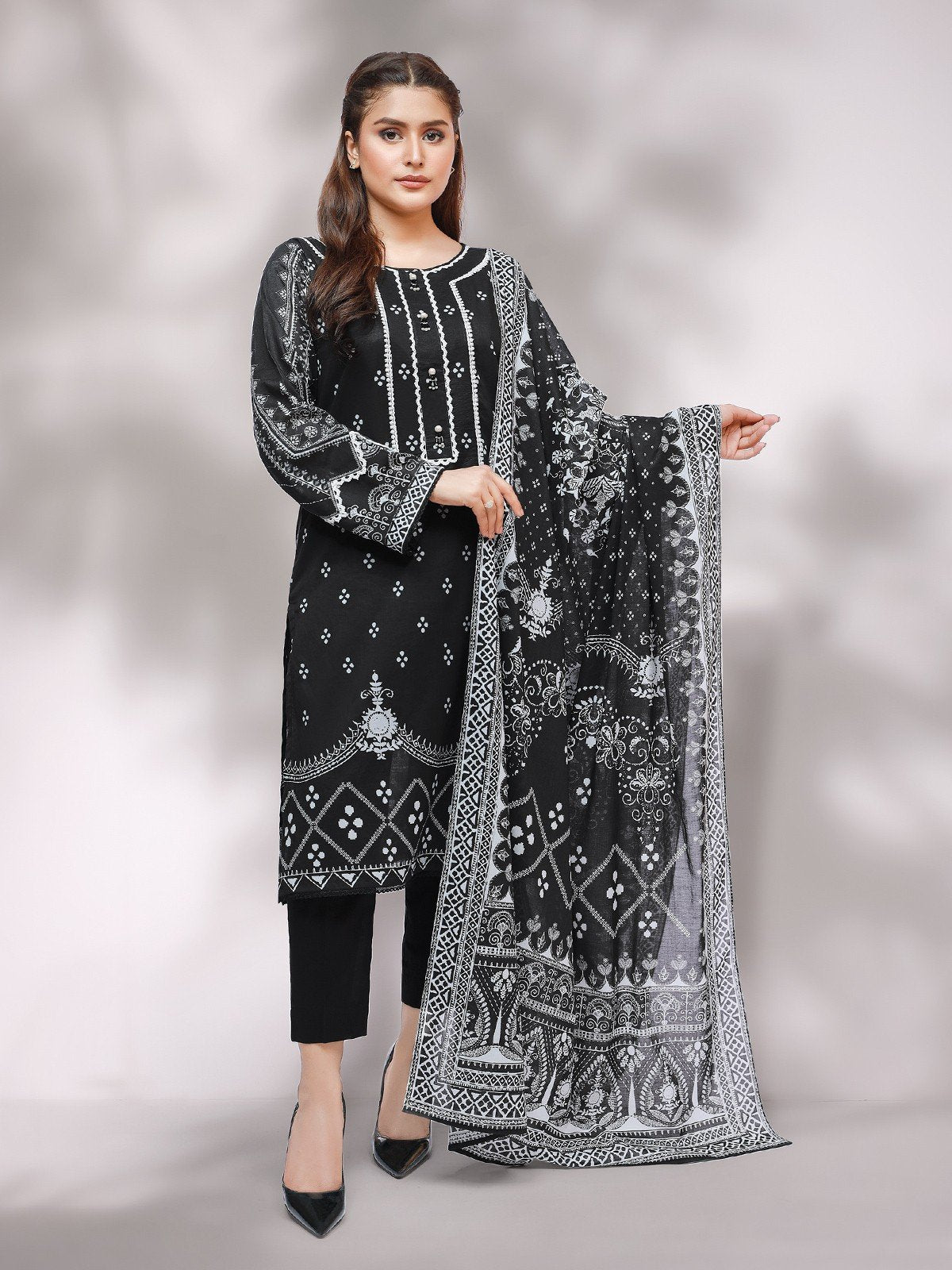 Unstitched Black Printed Lawn 2 Piece