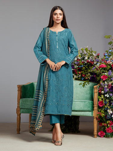 Unstitched Dark Teal Embroidered Dobby 3 Piece