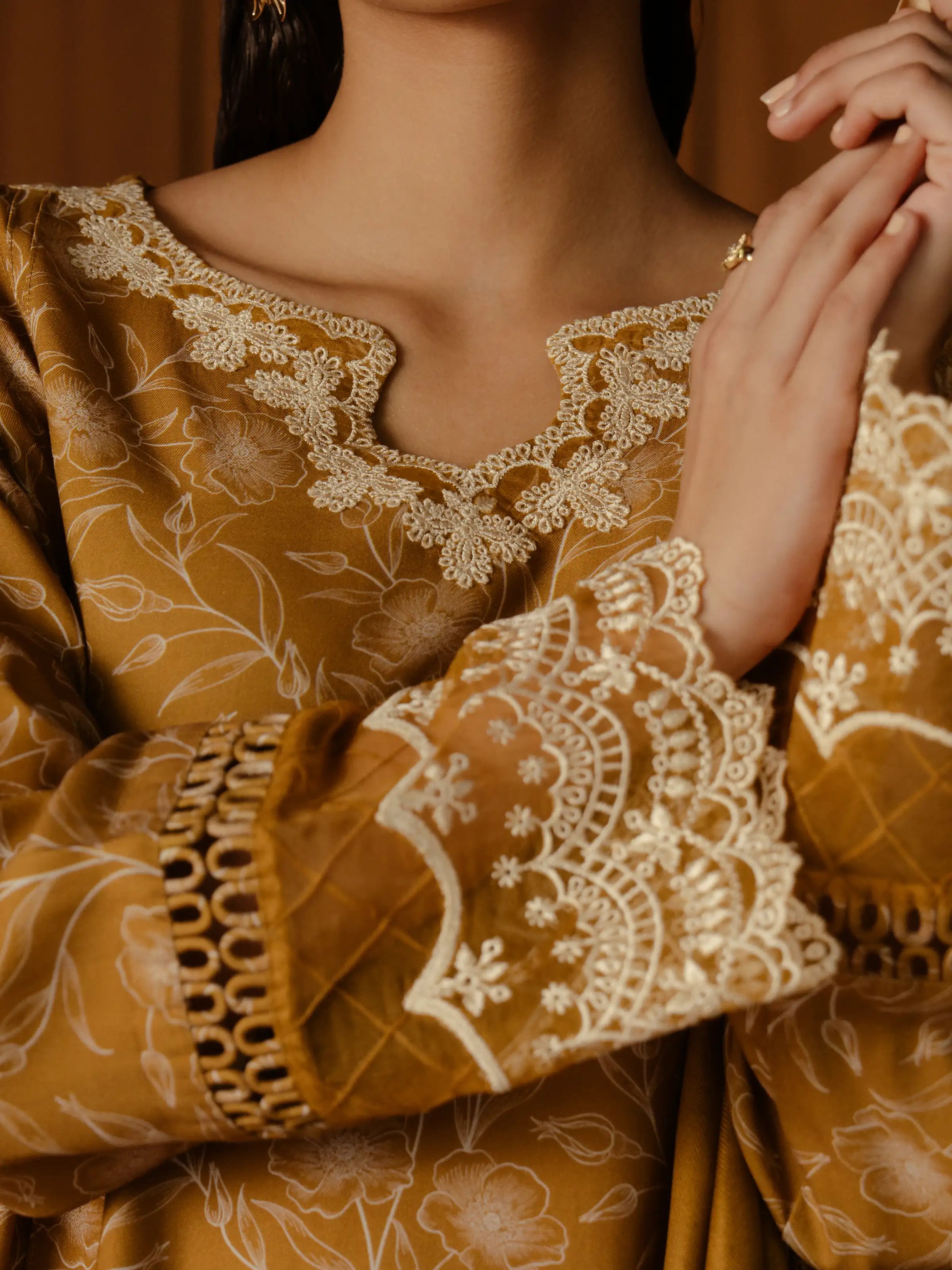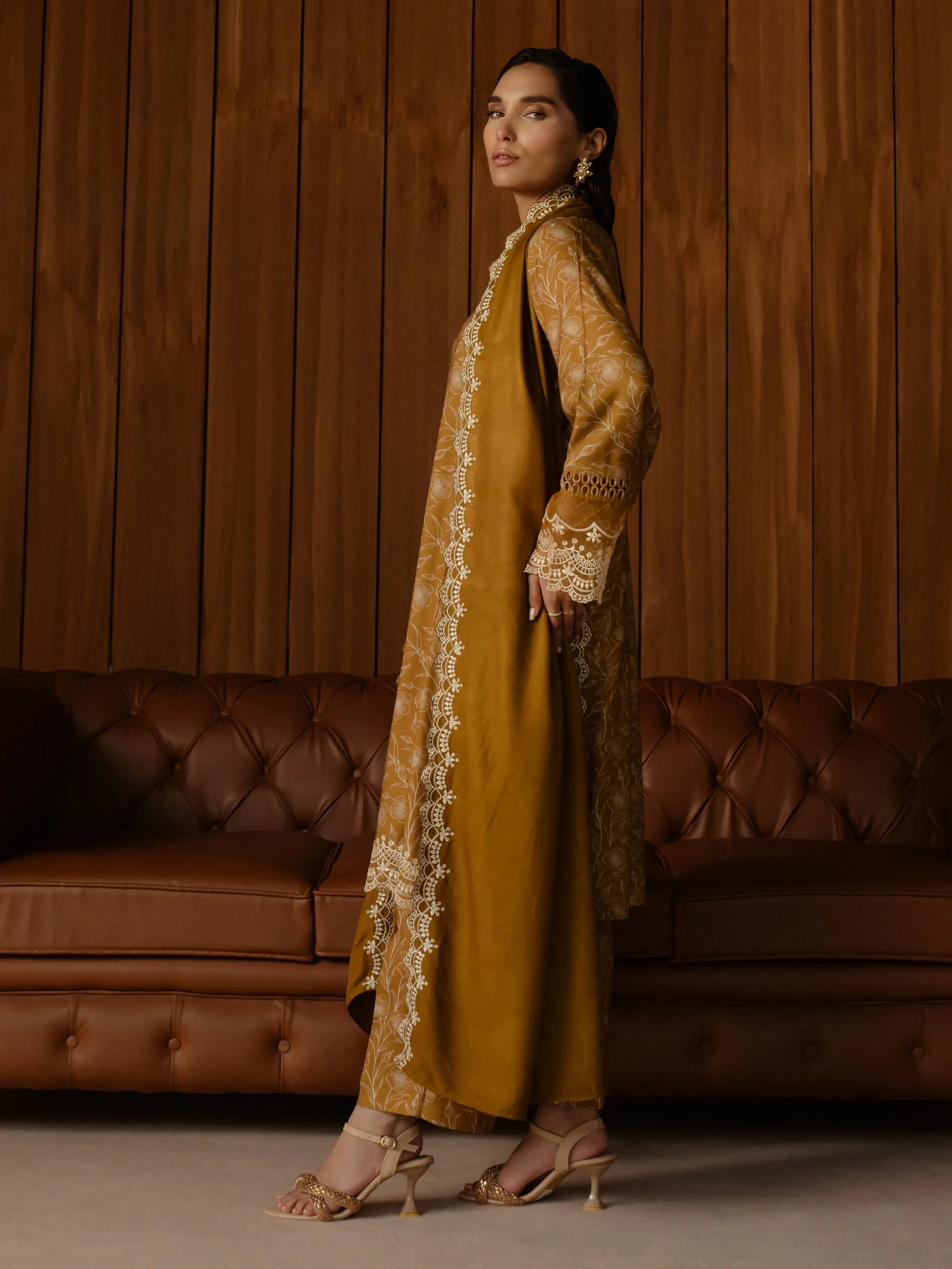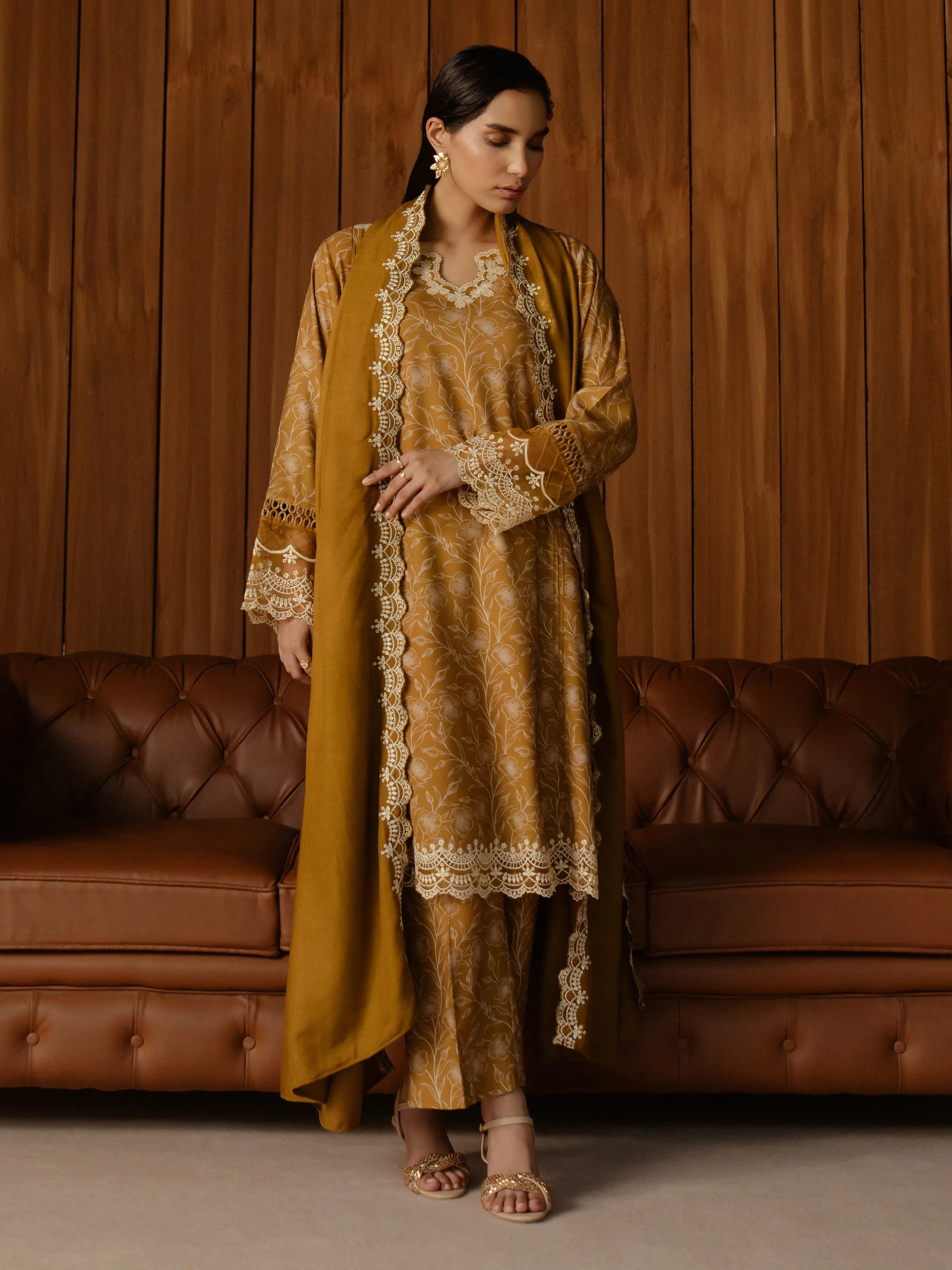 Unstitched Golden Embroidered Marina Twill 2 Piece