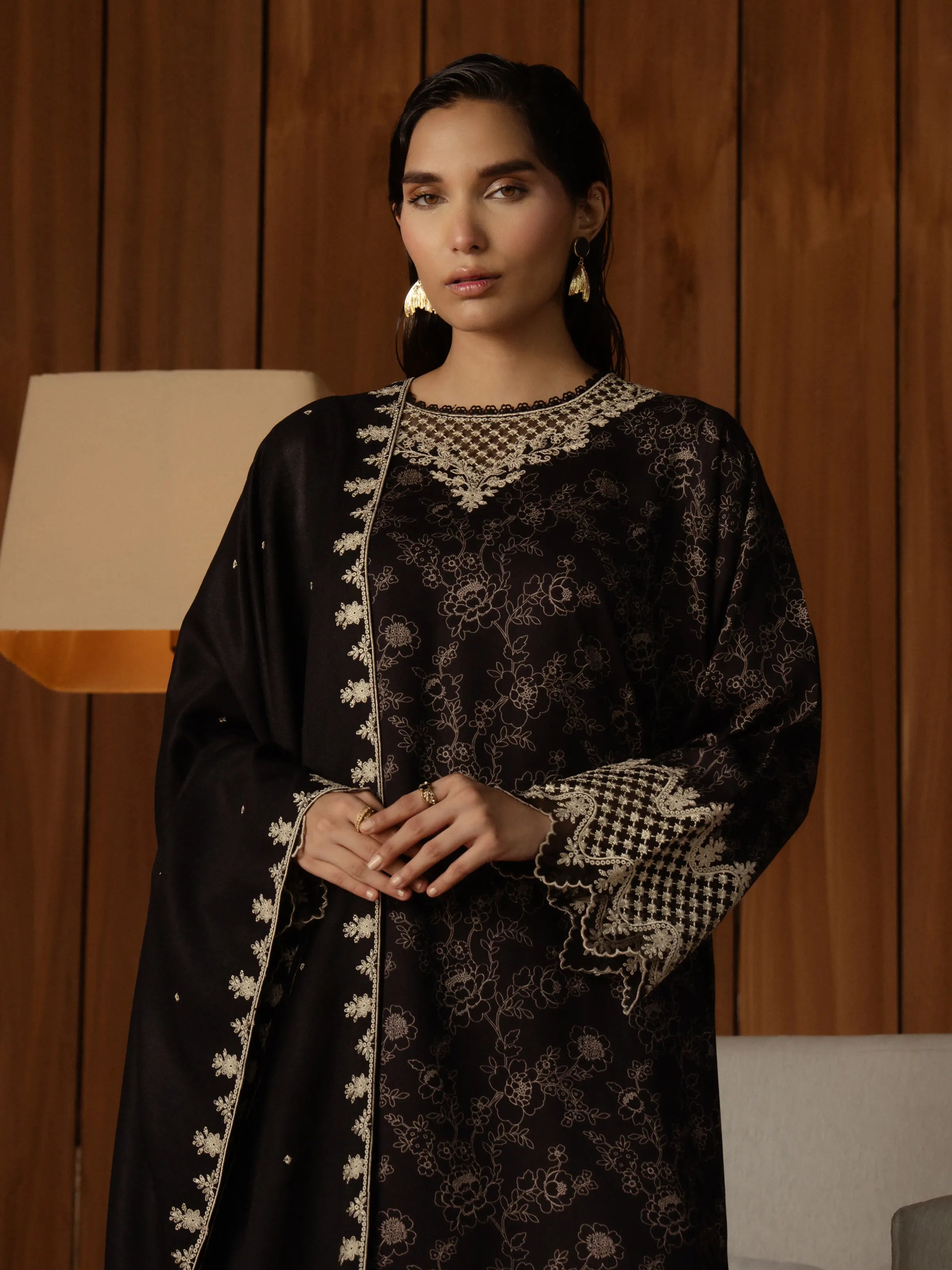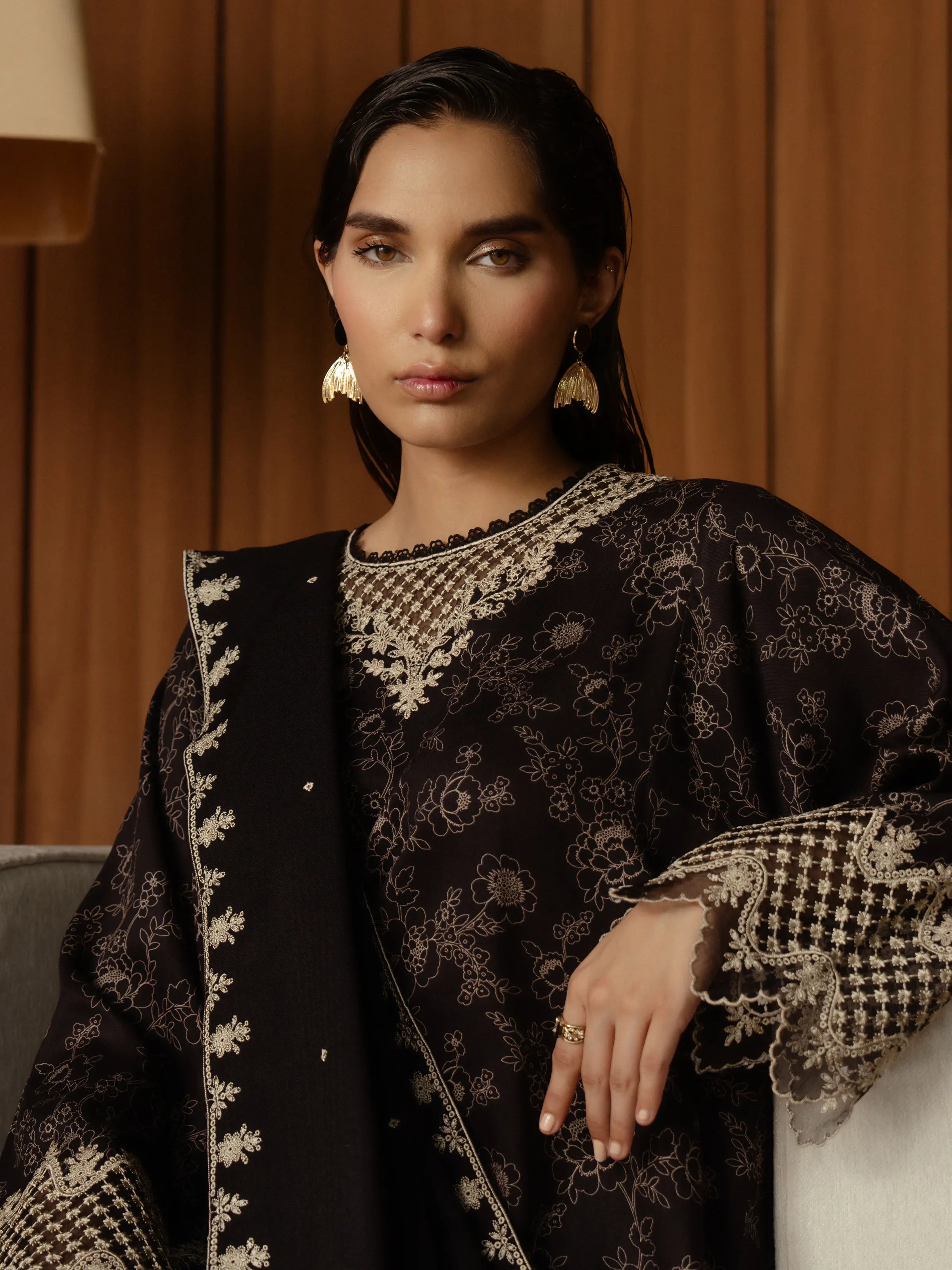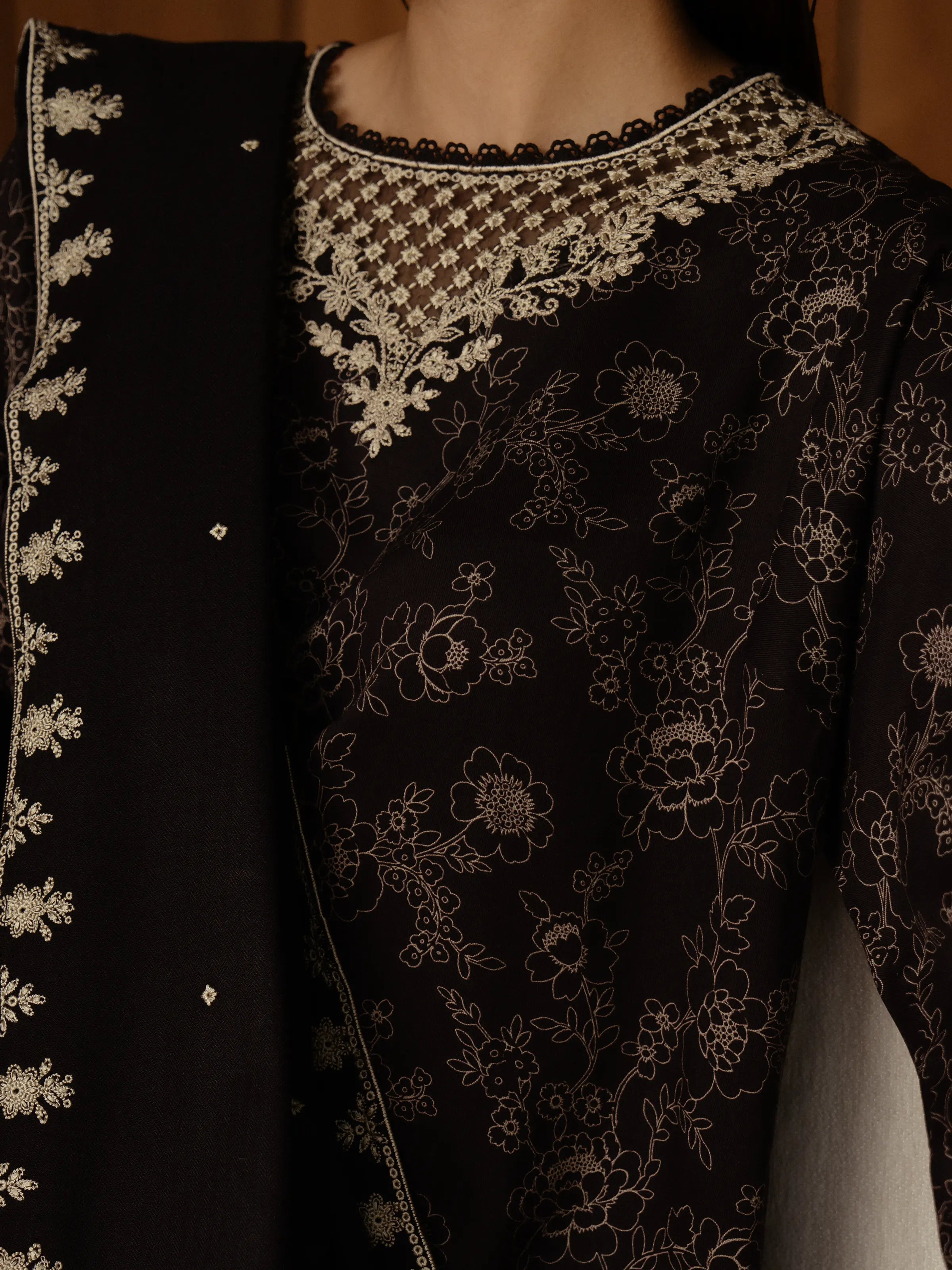 Unstitched Black Embroidered Marina Twill 2 Piece