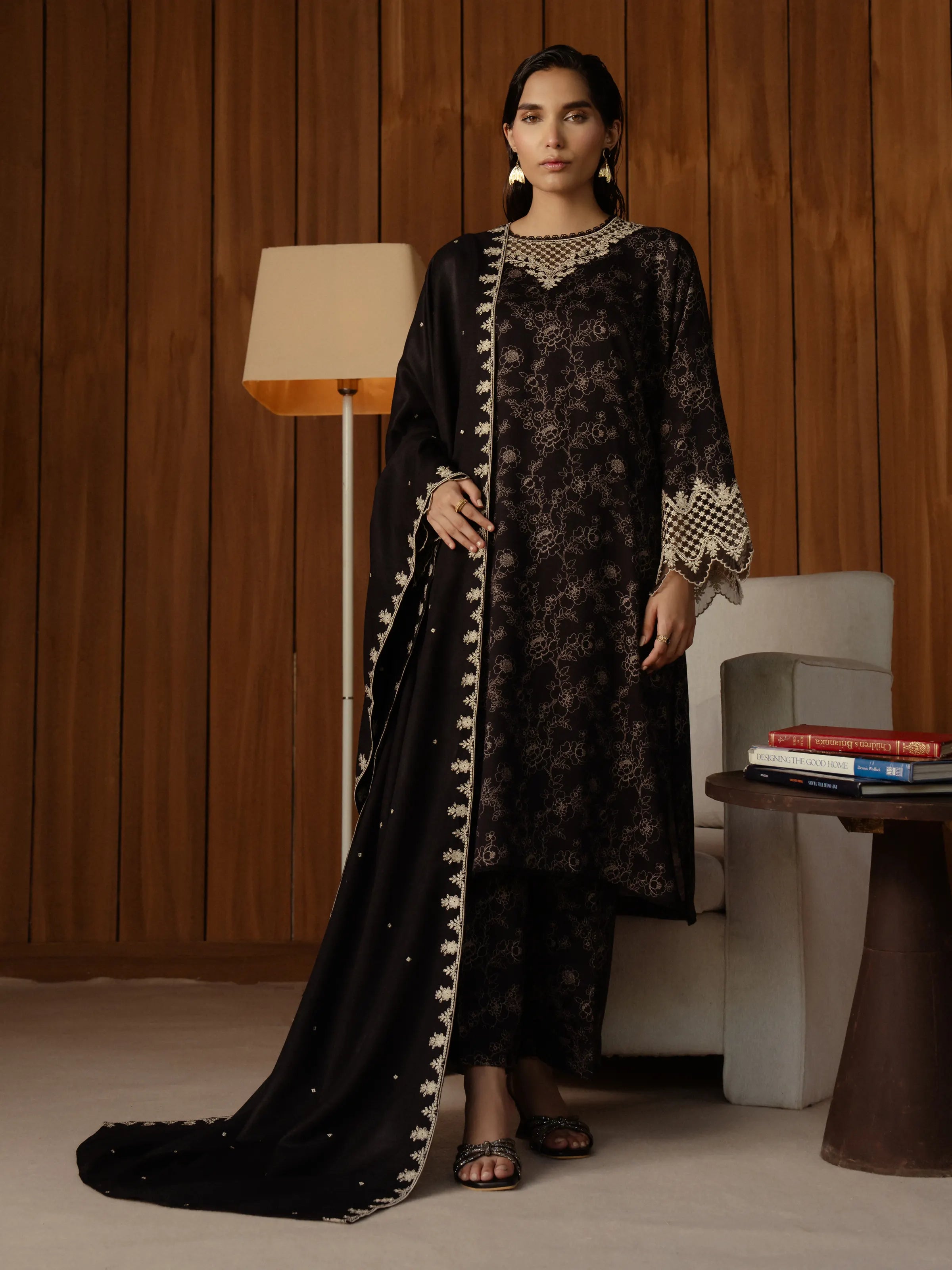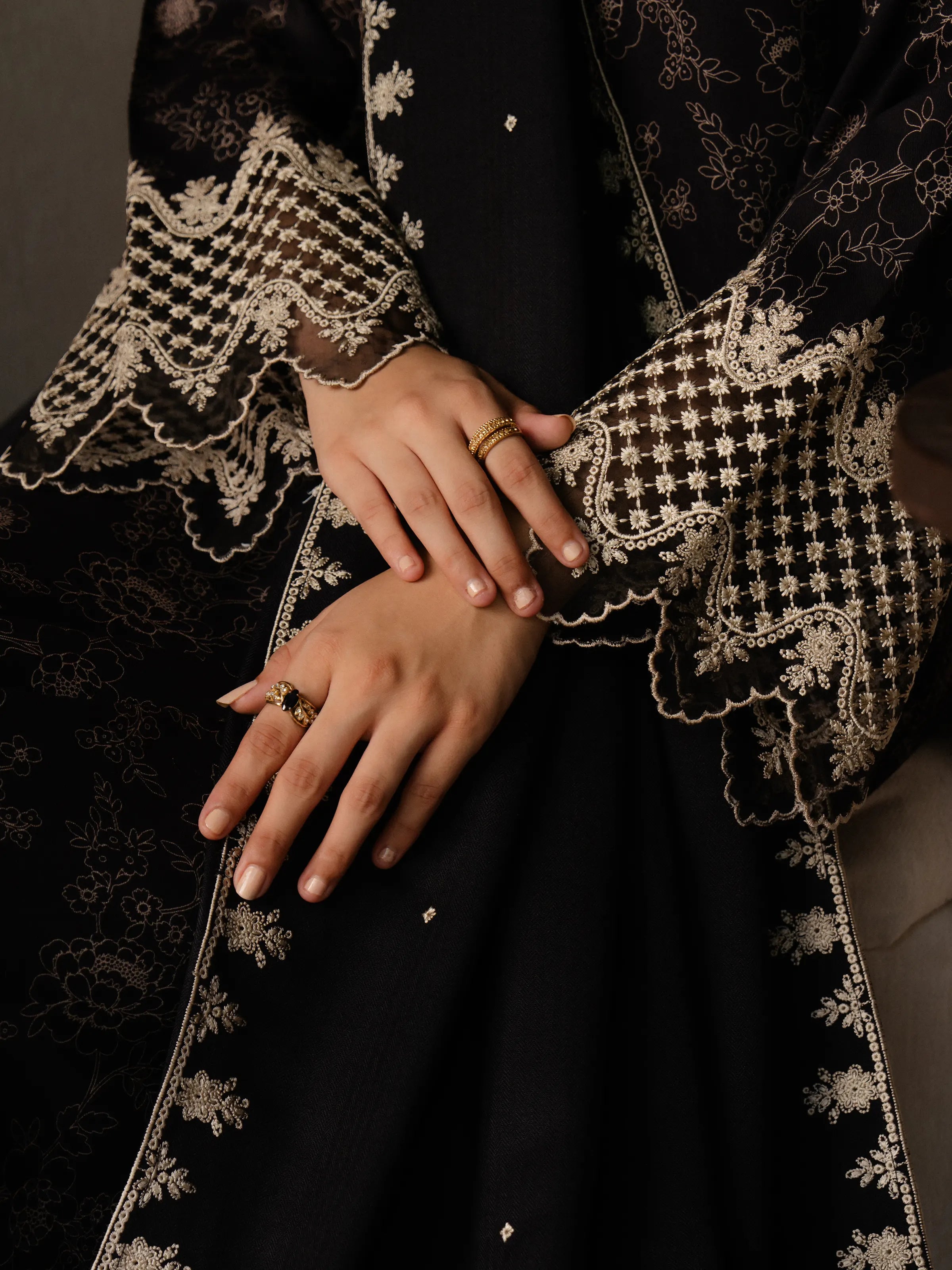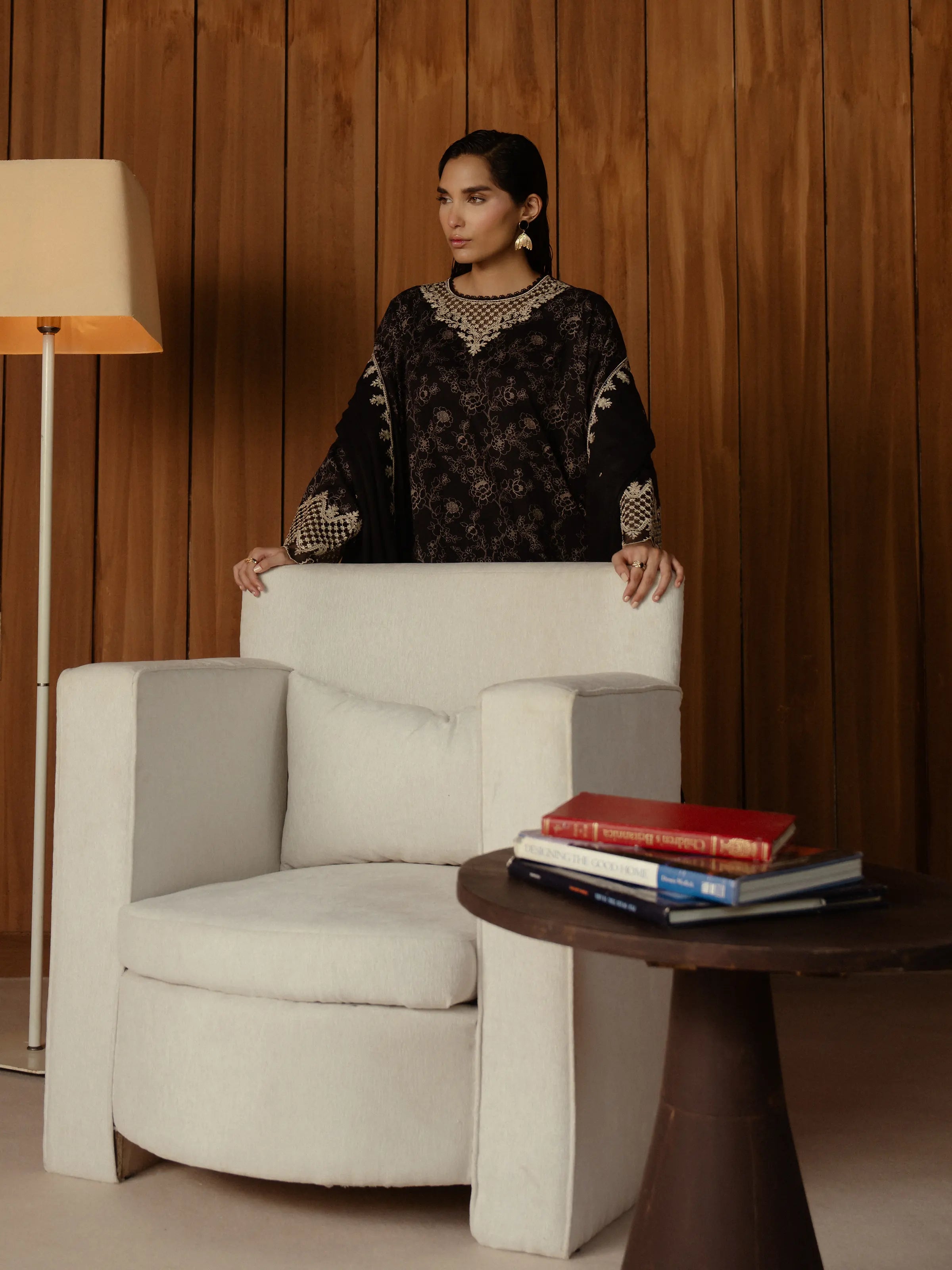 Unstitched Black Embroidered Marina Twill 2 Piece