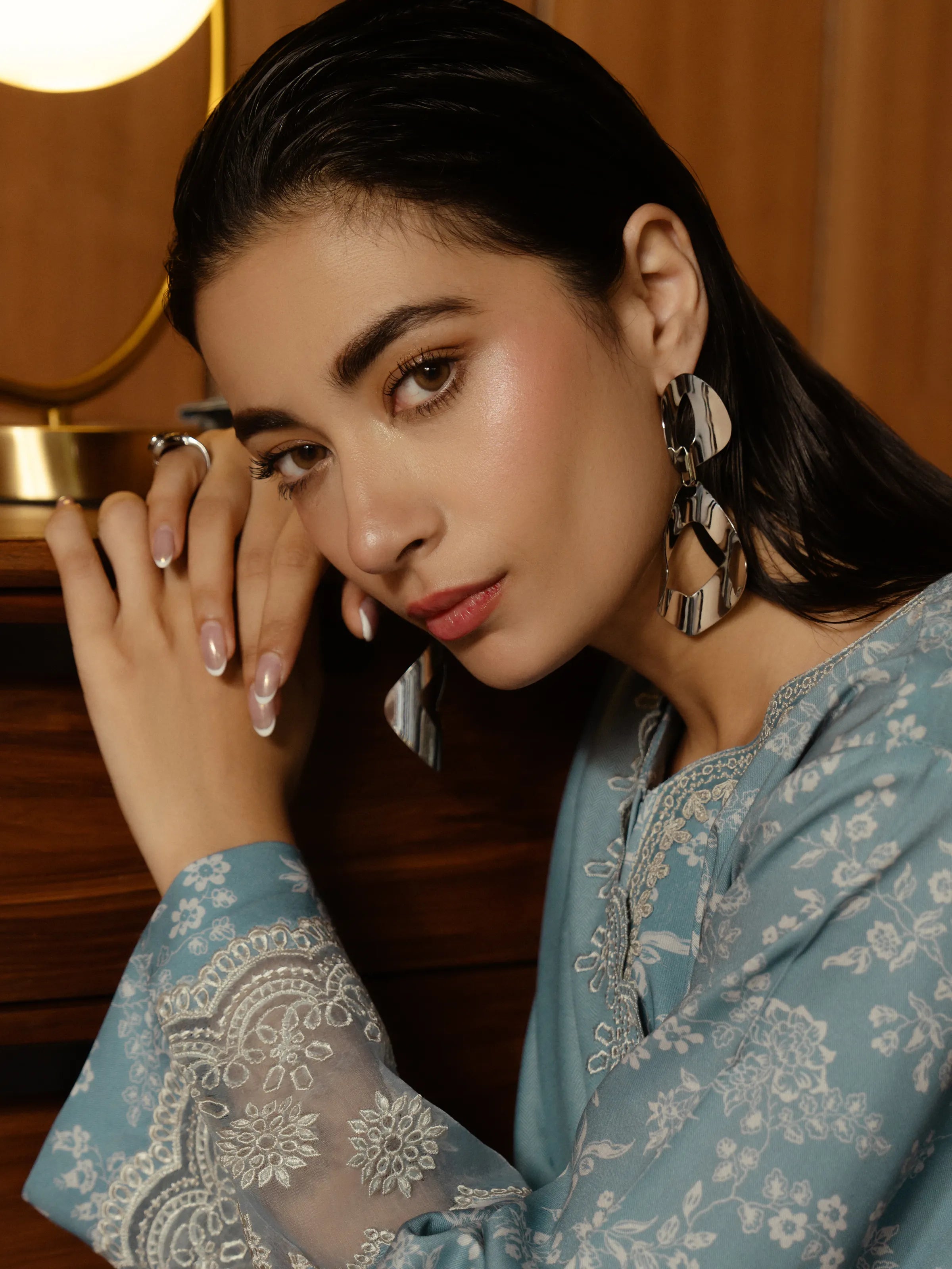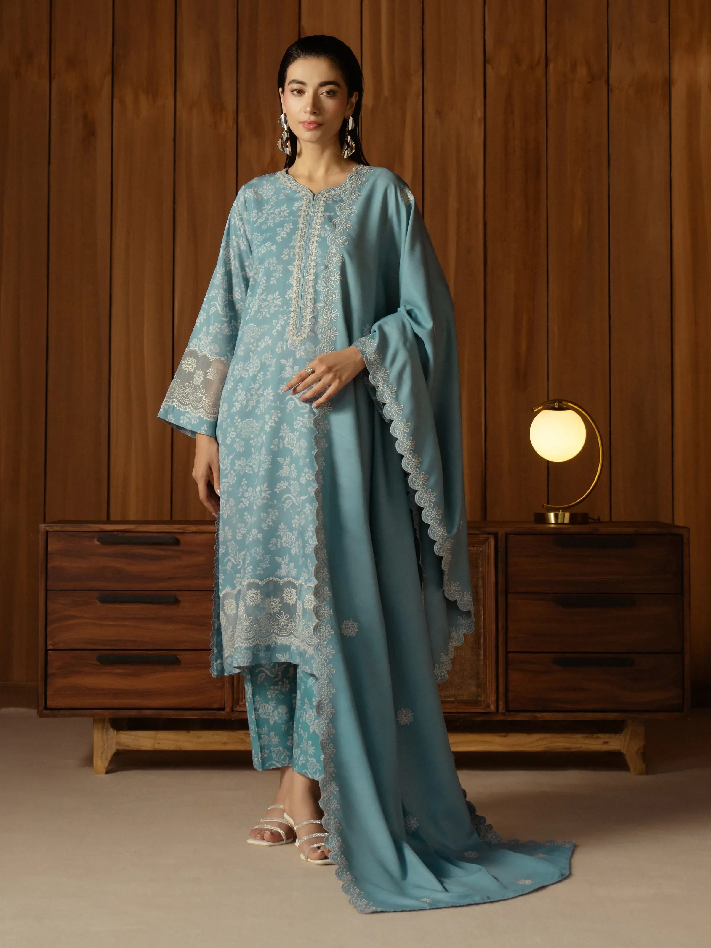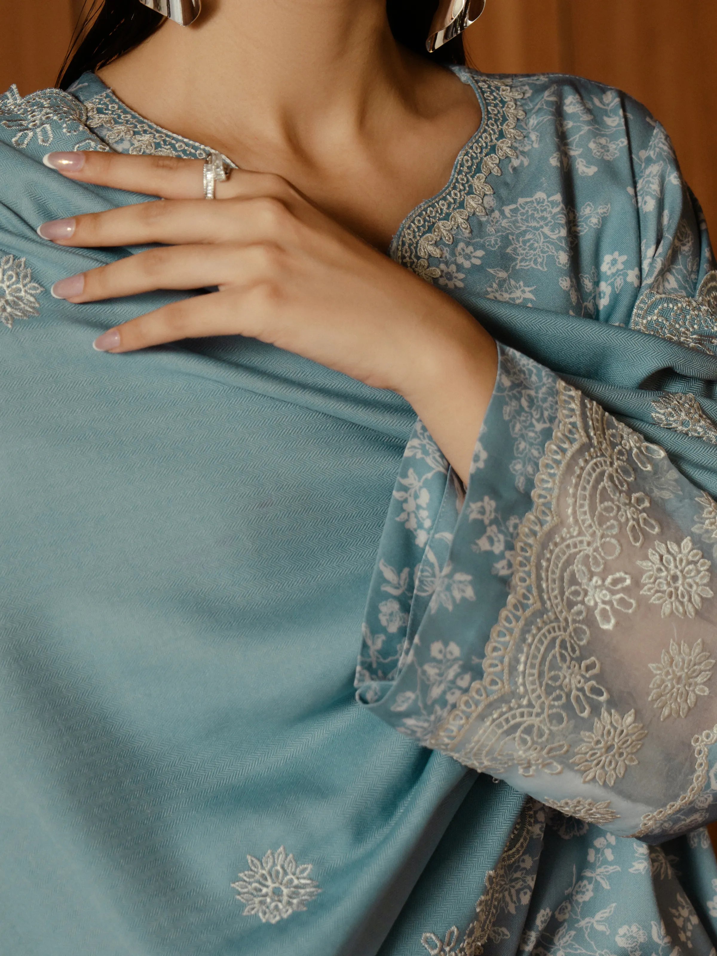 Unstitched Aqua Embroidered Marina Twill 2 Piece