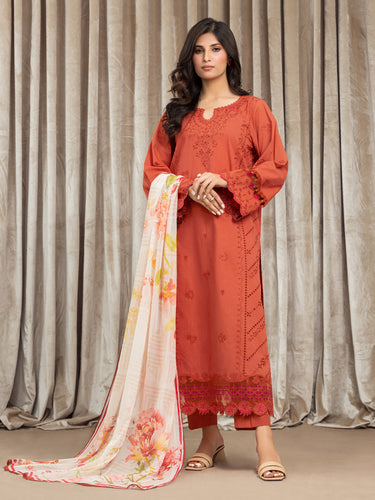Unstitched Rust Embroidered Cambric 3 Piece