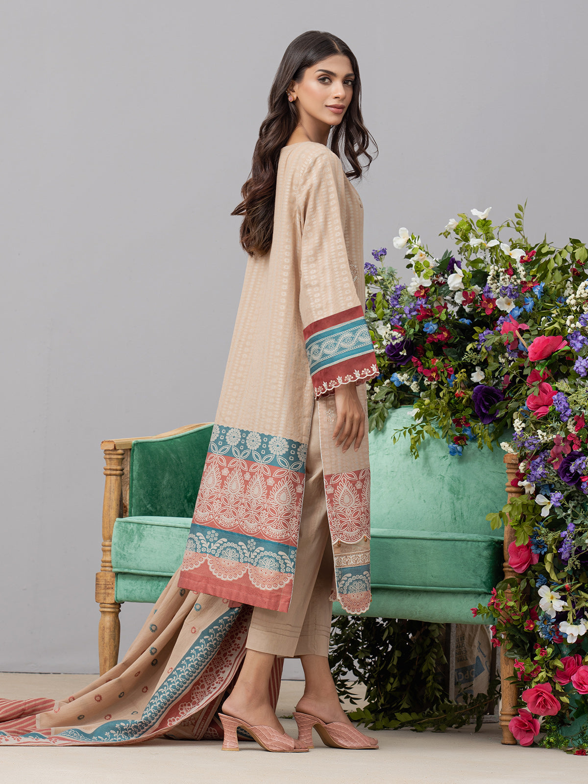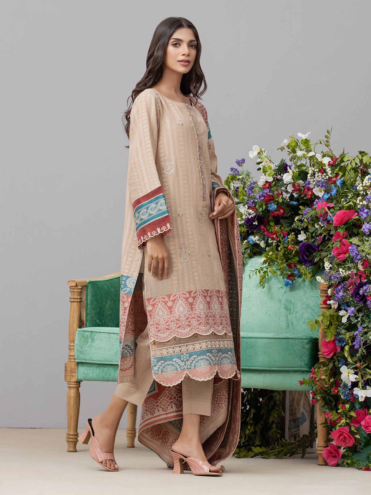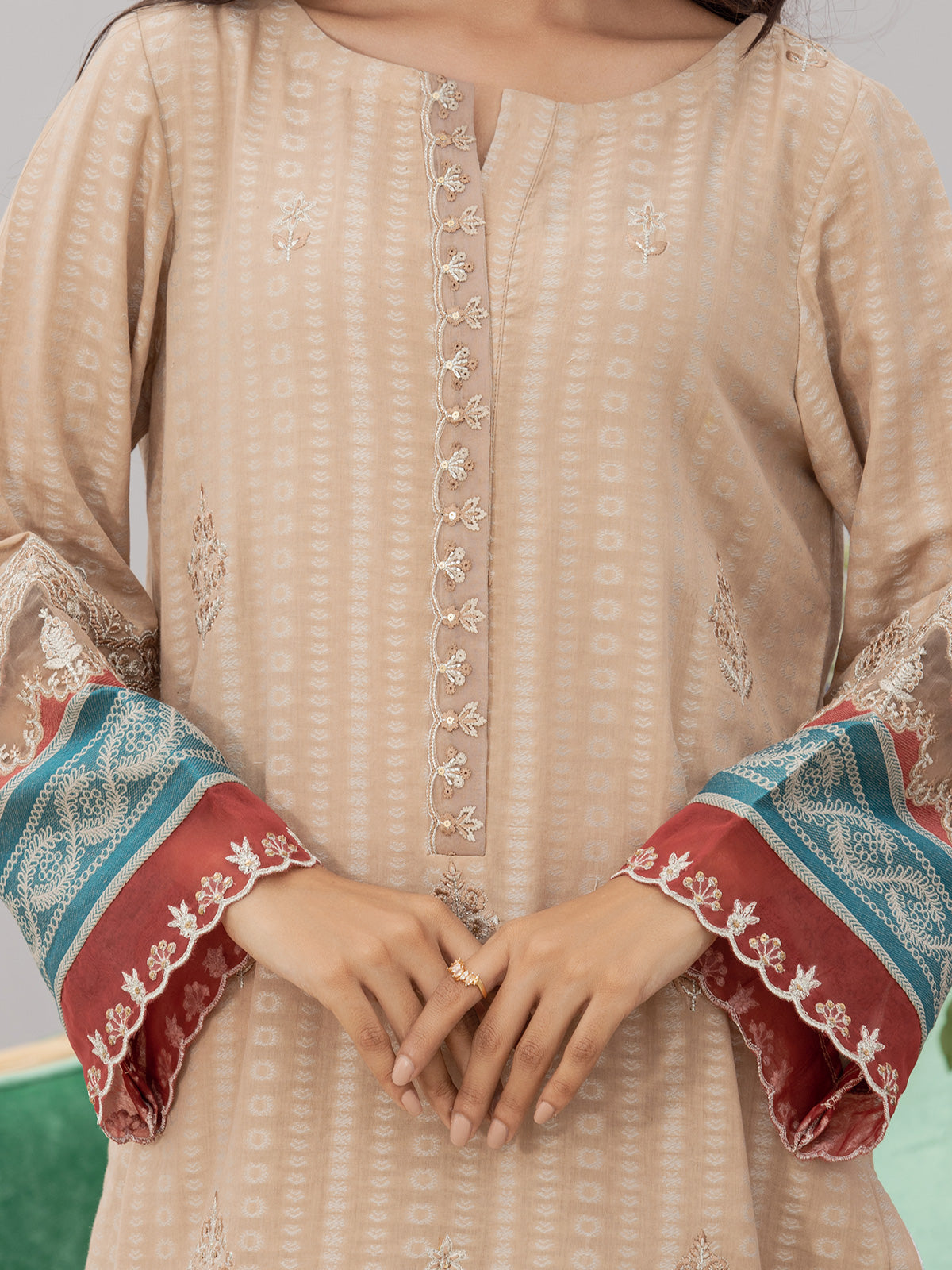 Unstitched Dark Beige Embroidered Jacquard 2 Piece